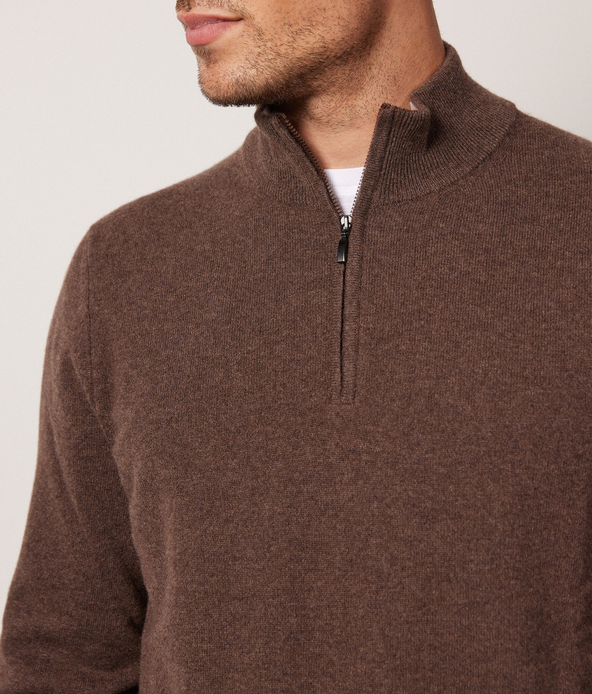 Capo immancabile del guardaroba maschile, la maglia in cashmere ultrasoft con collo alto e mezza zip arricchisce gli outfit con un tocco d'eleganza casual. La vestibilità offre volumi regolari sia sul busto che sulle spalle.