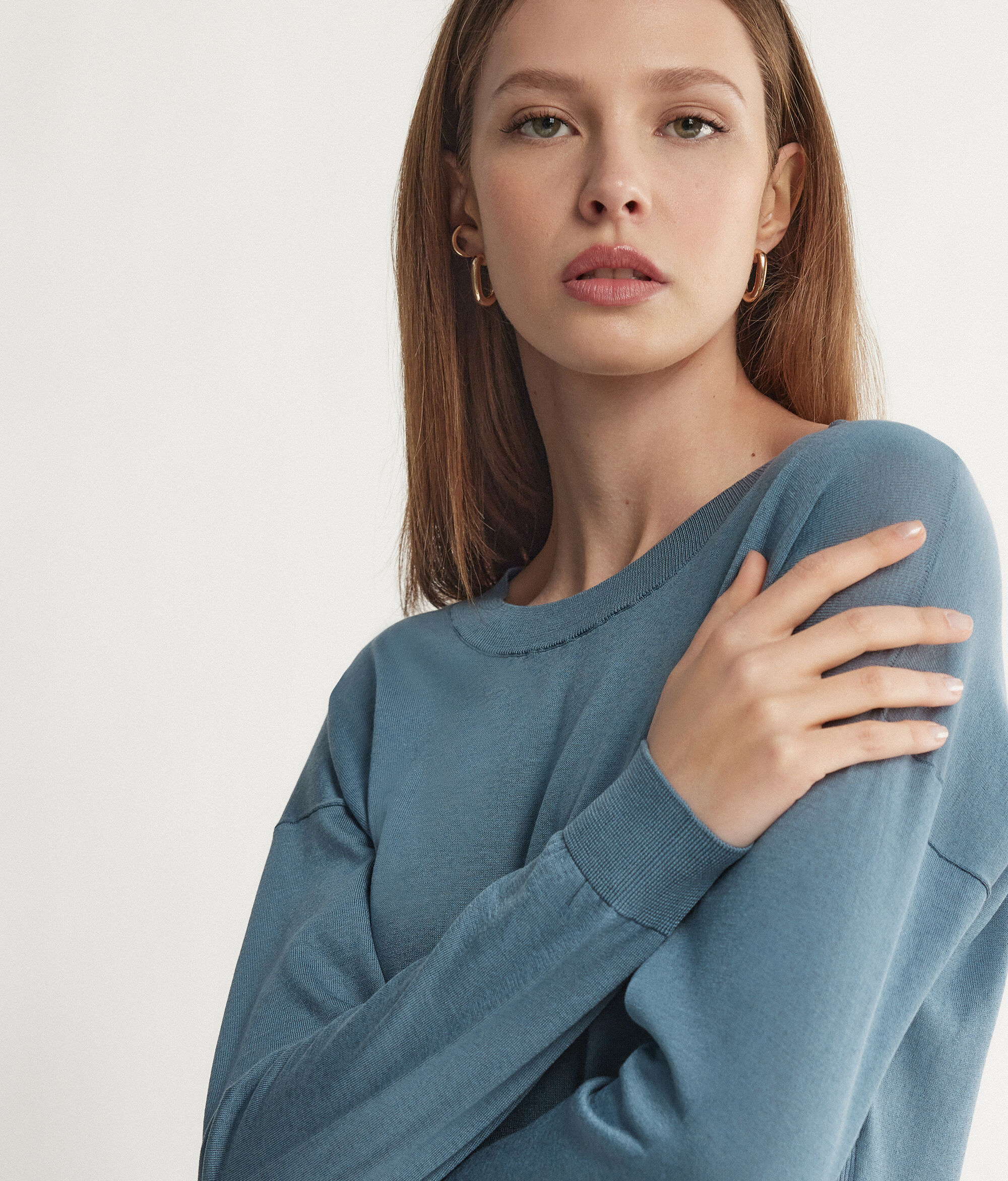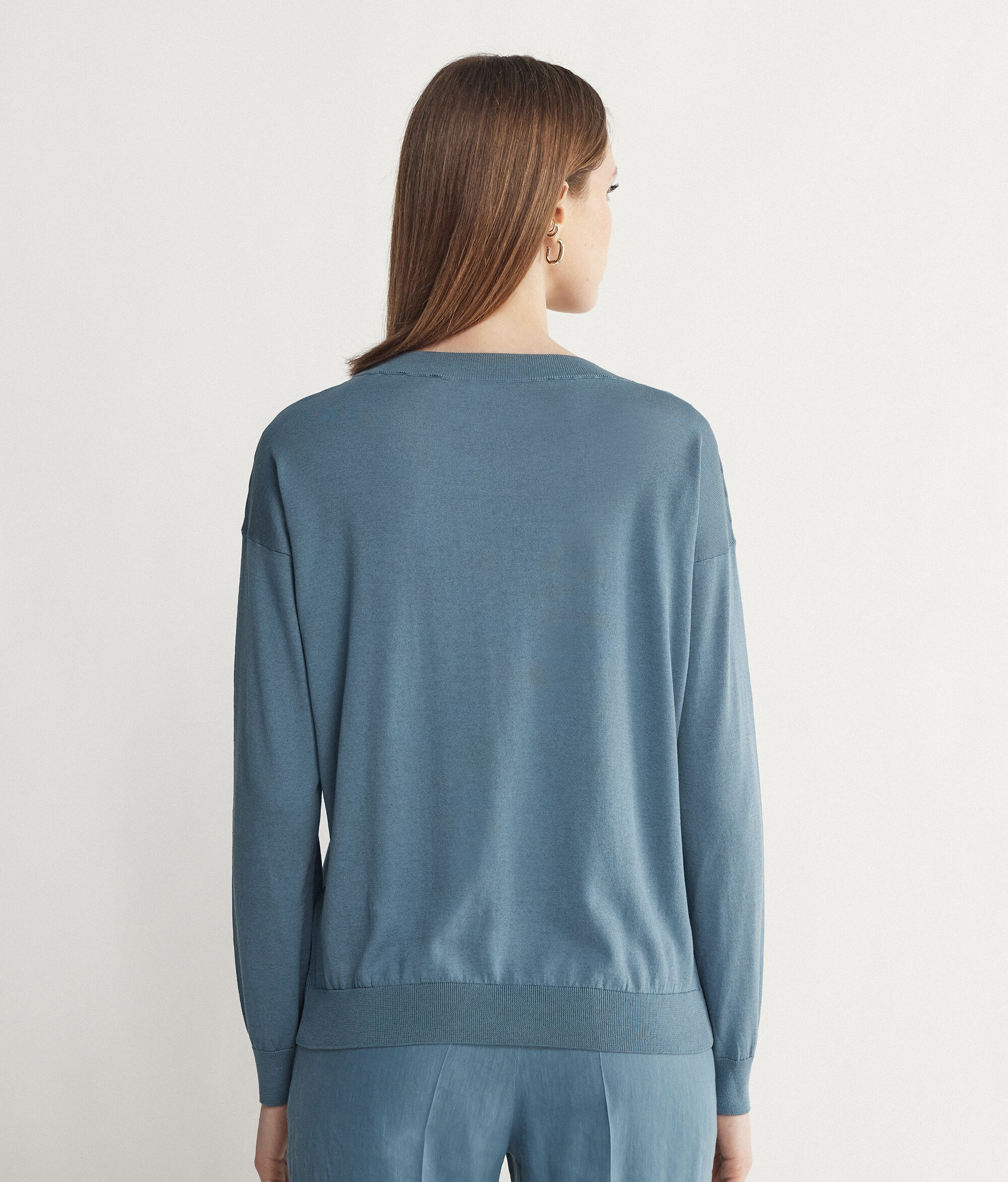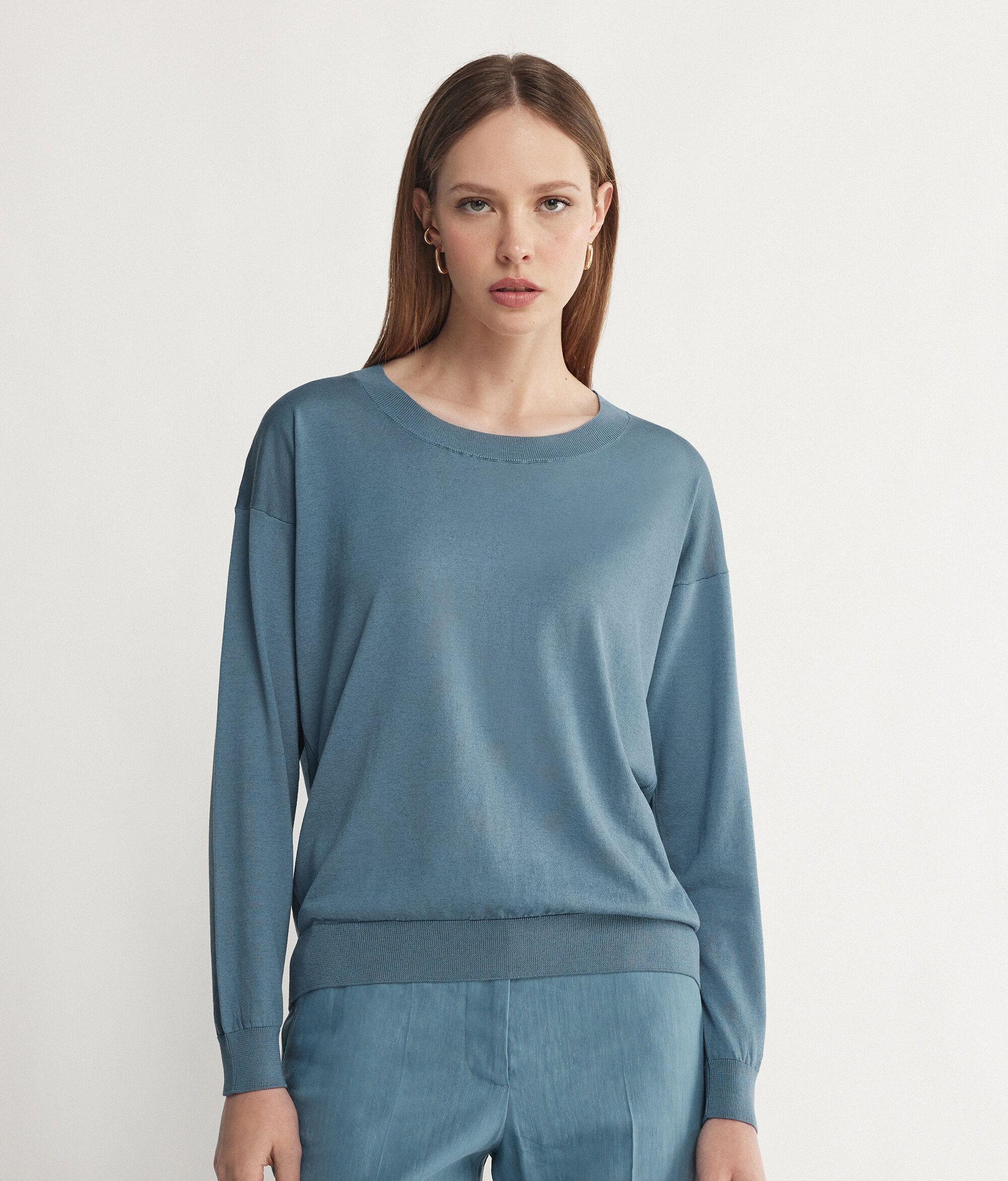 Il pregio della seta e del cotone impreziosisce le forme morbide di questa maglia con ampio girocollo e conferiscono alla texture una mano fluida e piacevole all'indosso. La versatilità d'uso la rende capo unico ed indispensabile perfetto su qualsiasi abbinamento.