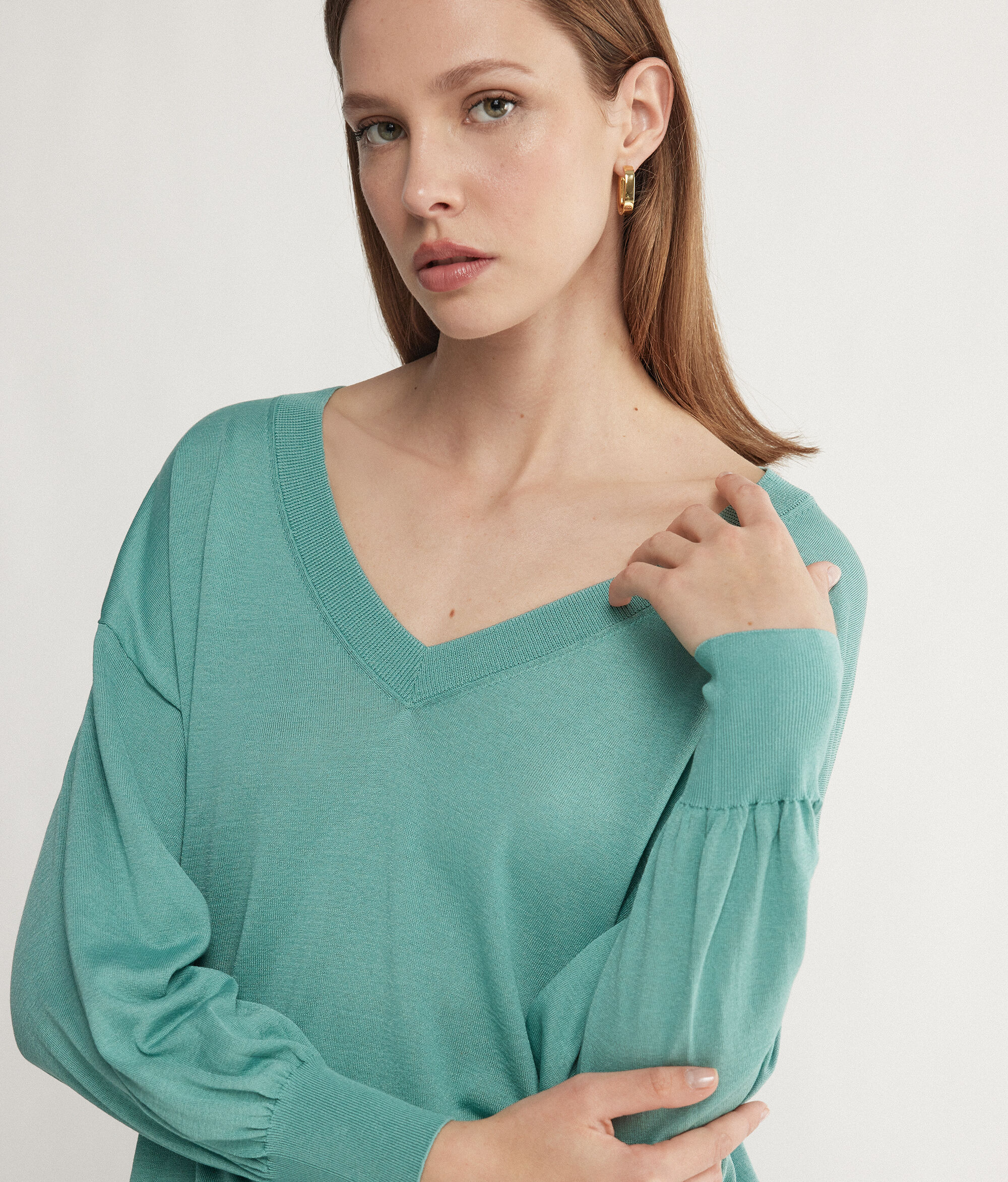 Maglia Scollo a V in Seta e Cotone a Palloncino