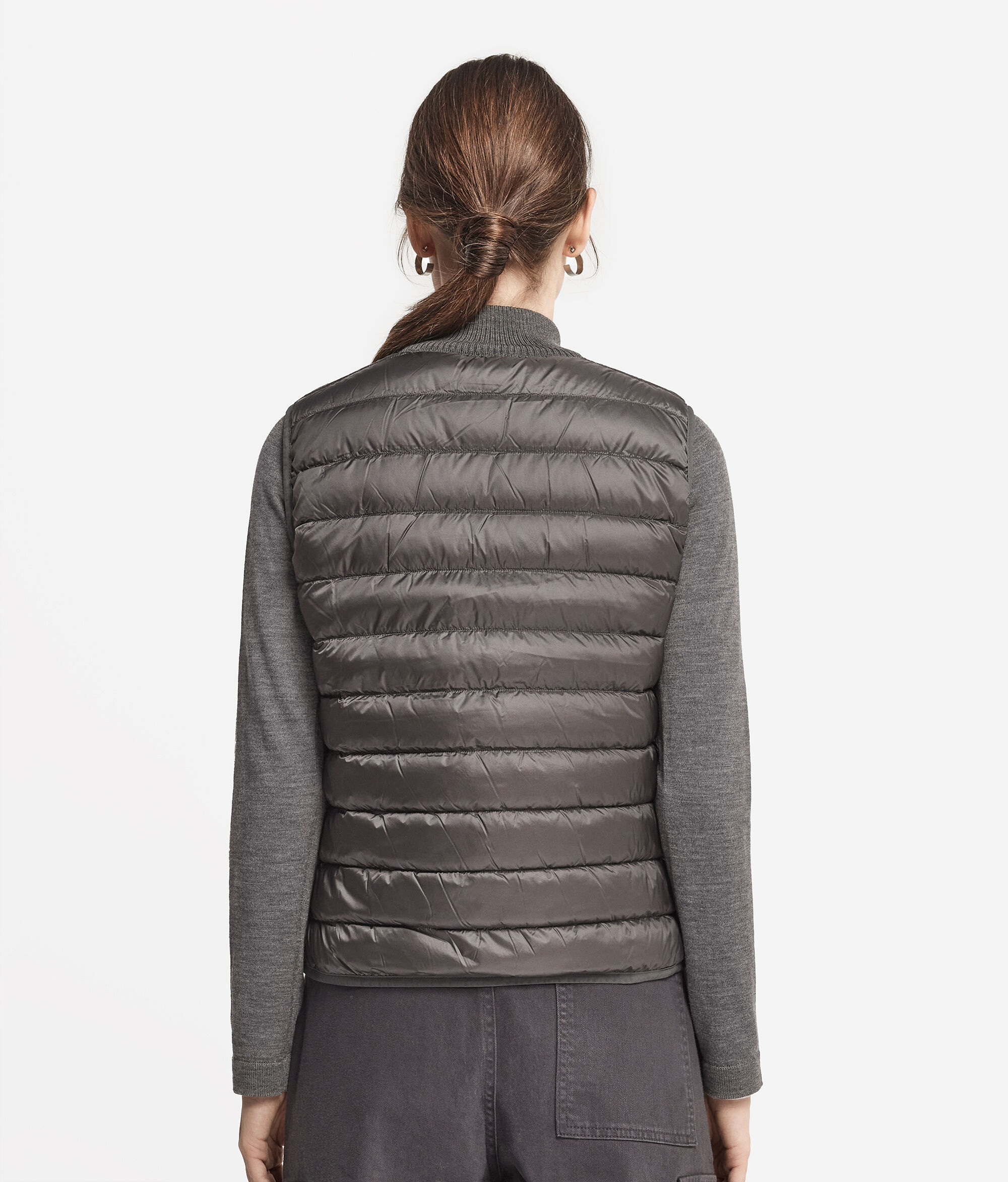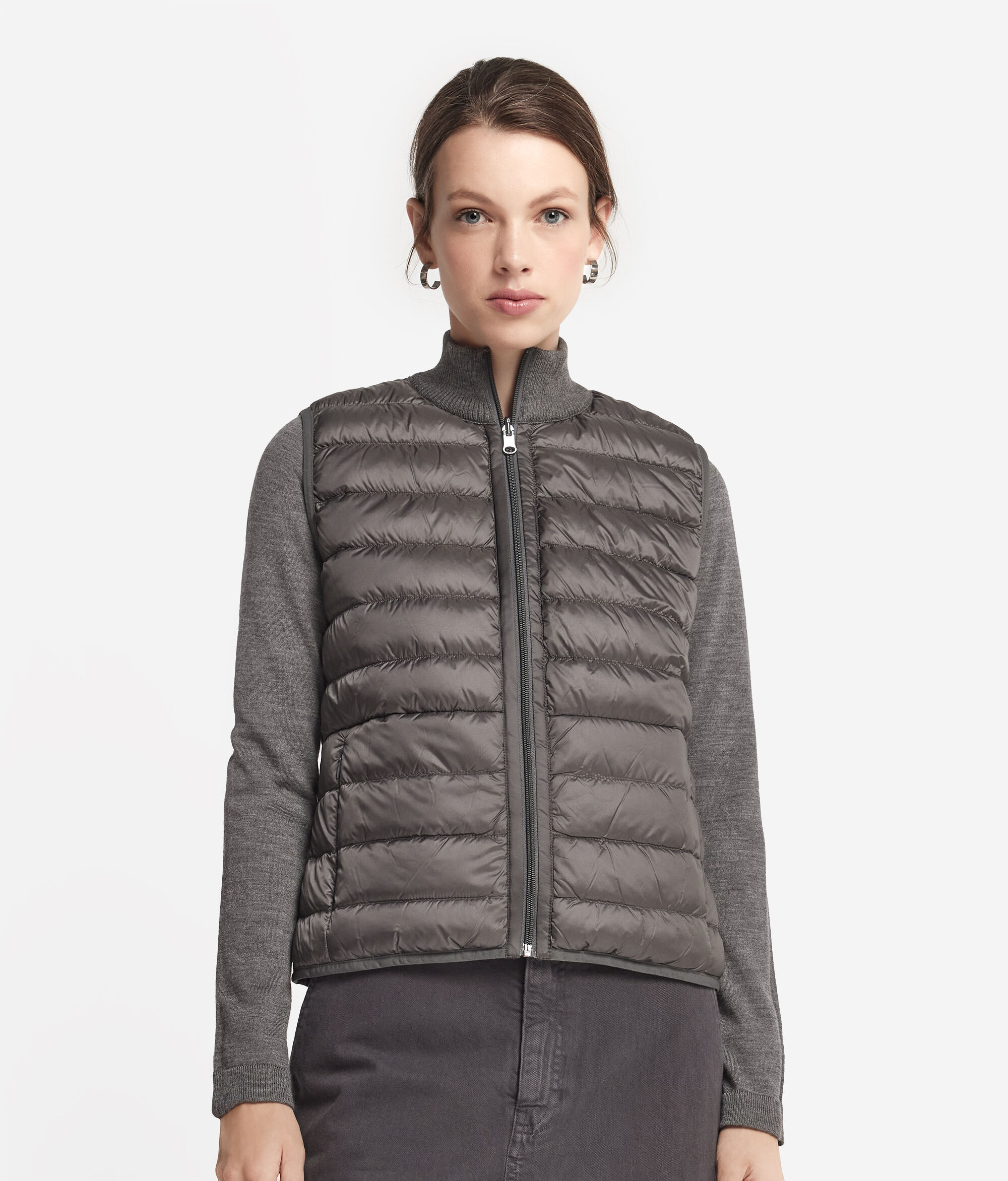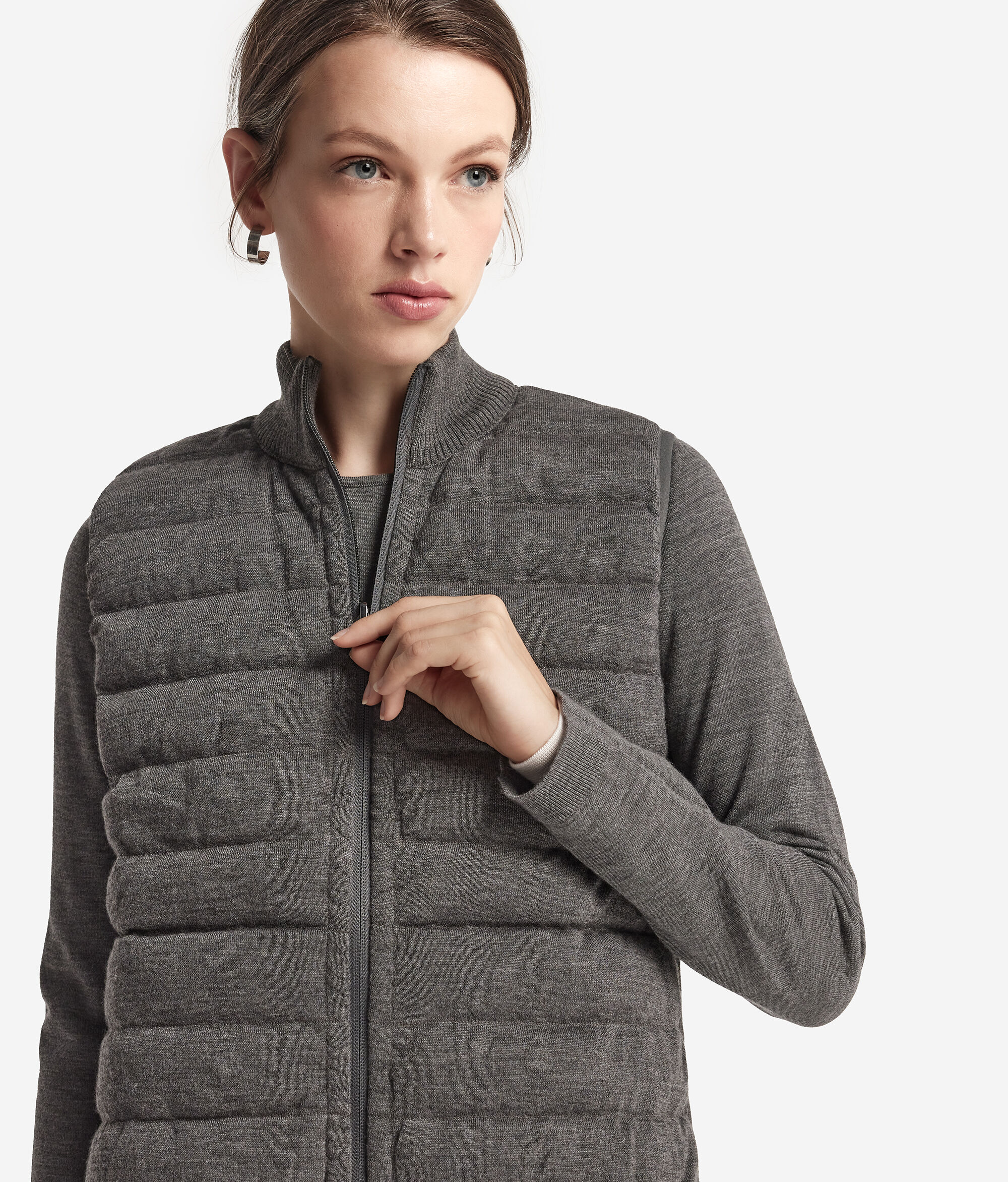 Falconeri propone una nuova versione del versatile e unico piumino senza maniche donna. L’aggiunta del pregiato cashmere ultrafine arricchisce lo stile sportivo di questo capo per un connubio perfetto tra funzionalità ed eleganza. Grazie alla sua caratteristica double-face, potrai sempre scegliere che stile indossare. Ideale per la stagione di passaggio, aggiungerà un tocco di classe a tutti i tuoi outfit!