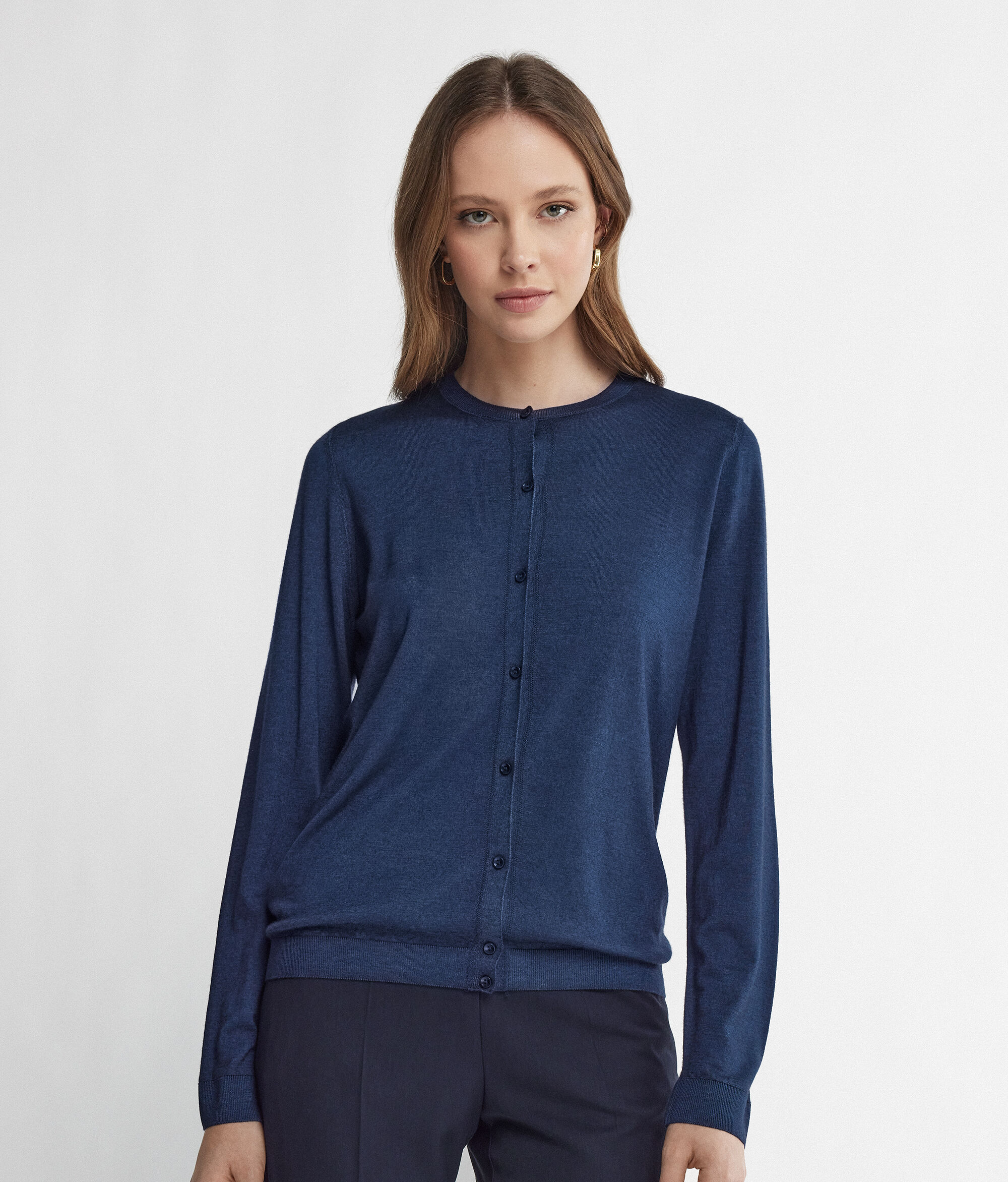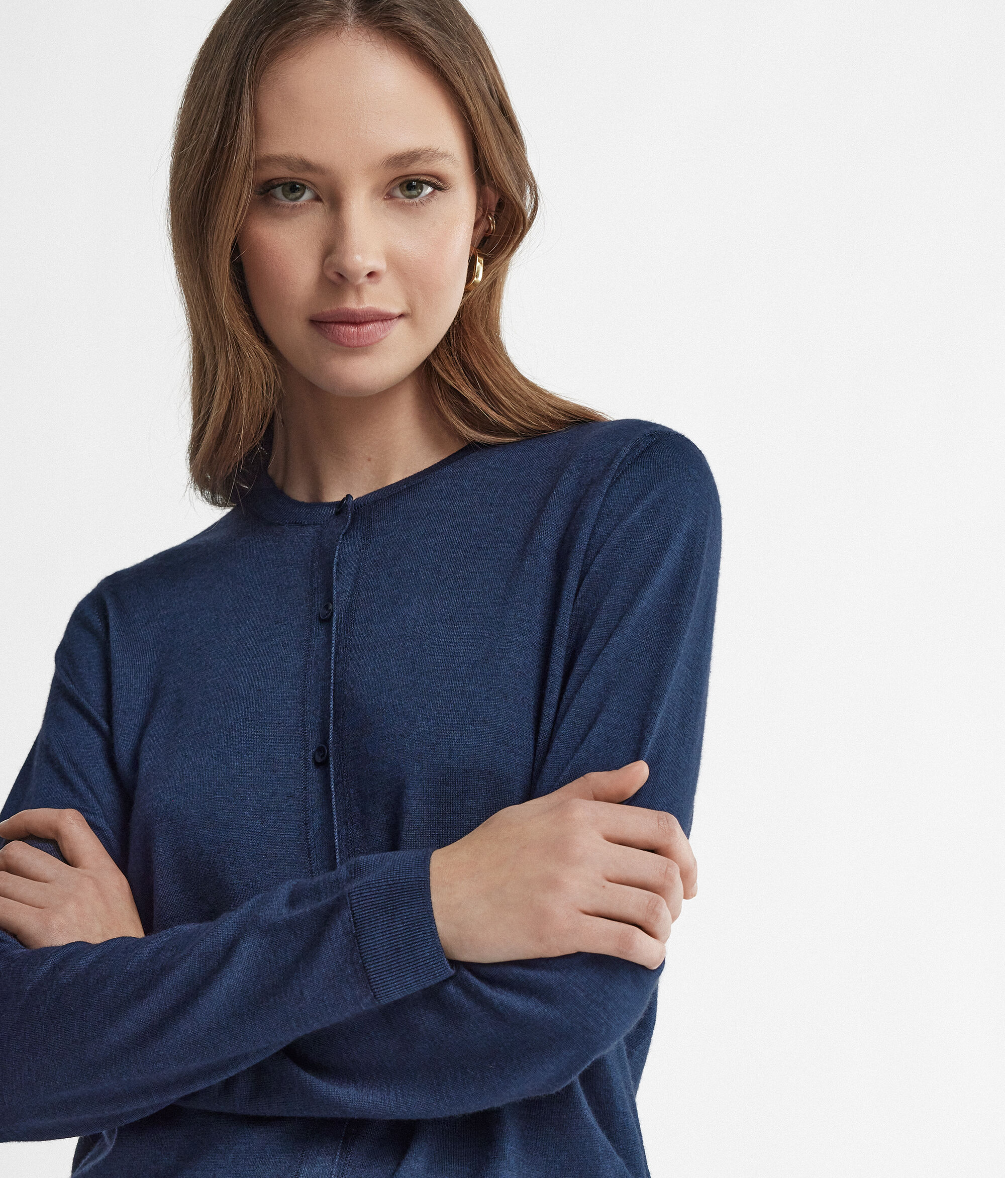 Una raffinata combinazione di classico e contemporaneo percorre lo stile di tutta la collezione Falconeri, l'amore per i materiali pregiati e la cura dei dettagli si esprimono nella scelta di filati iconici come il puro cashmere Ultrafine e nell'equilibrio di forme e volumi. Questo golfino girocollo con bottoni rappresenta un capo chiave nel guardaroba di ogni donna.