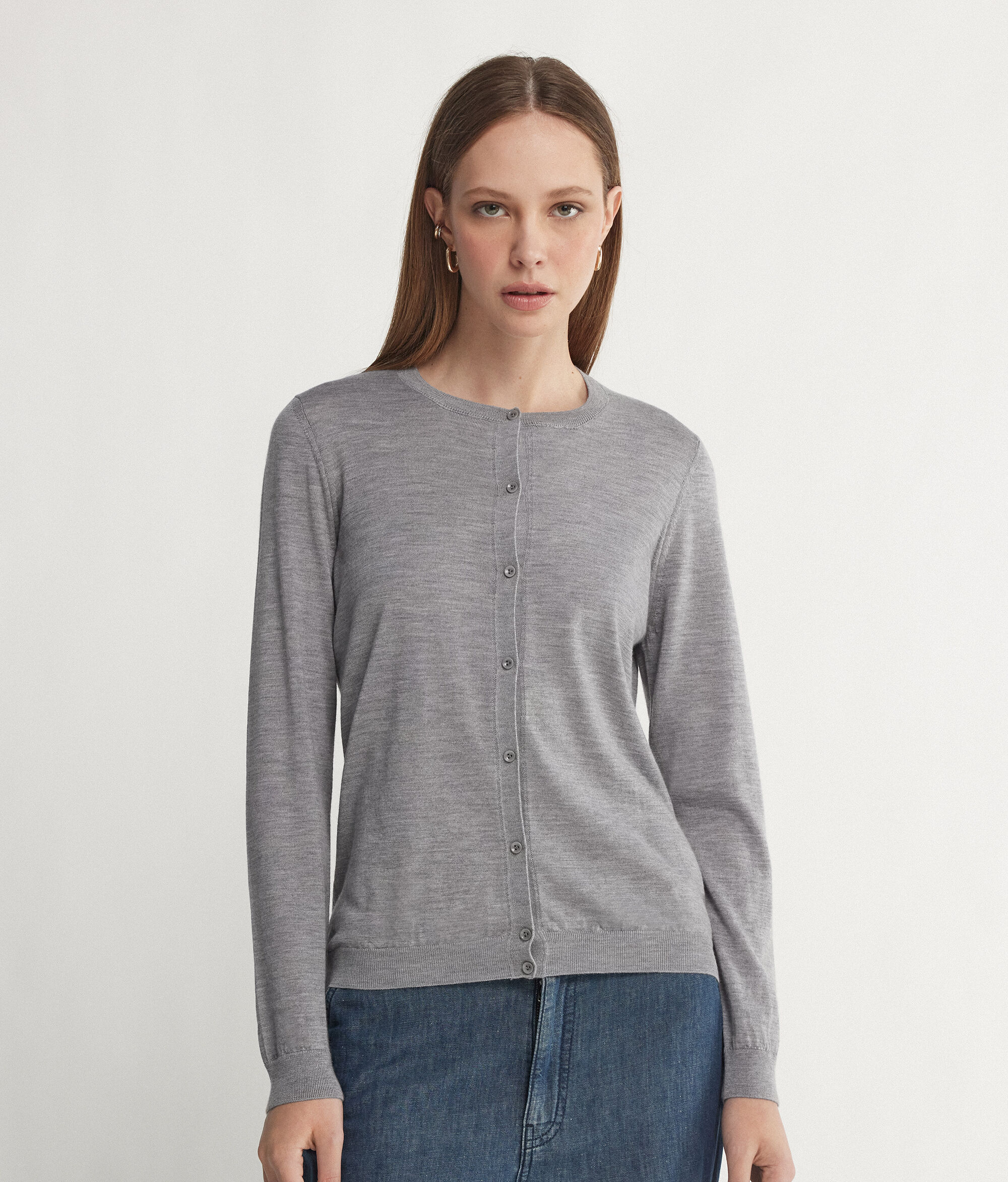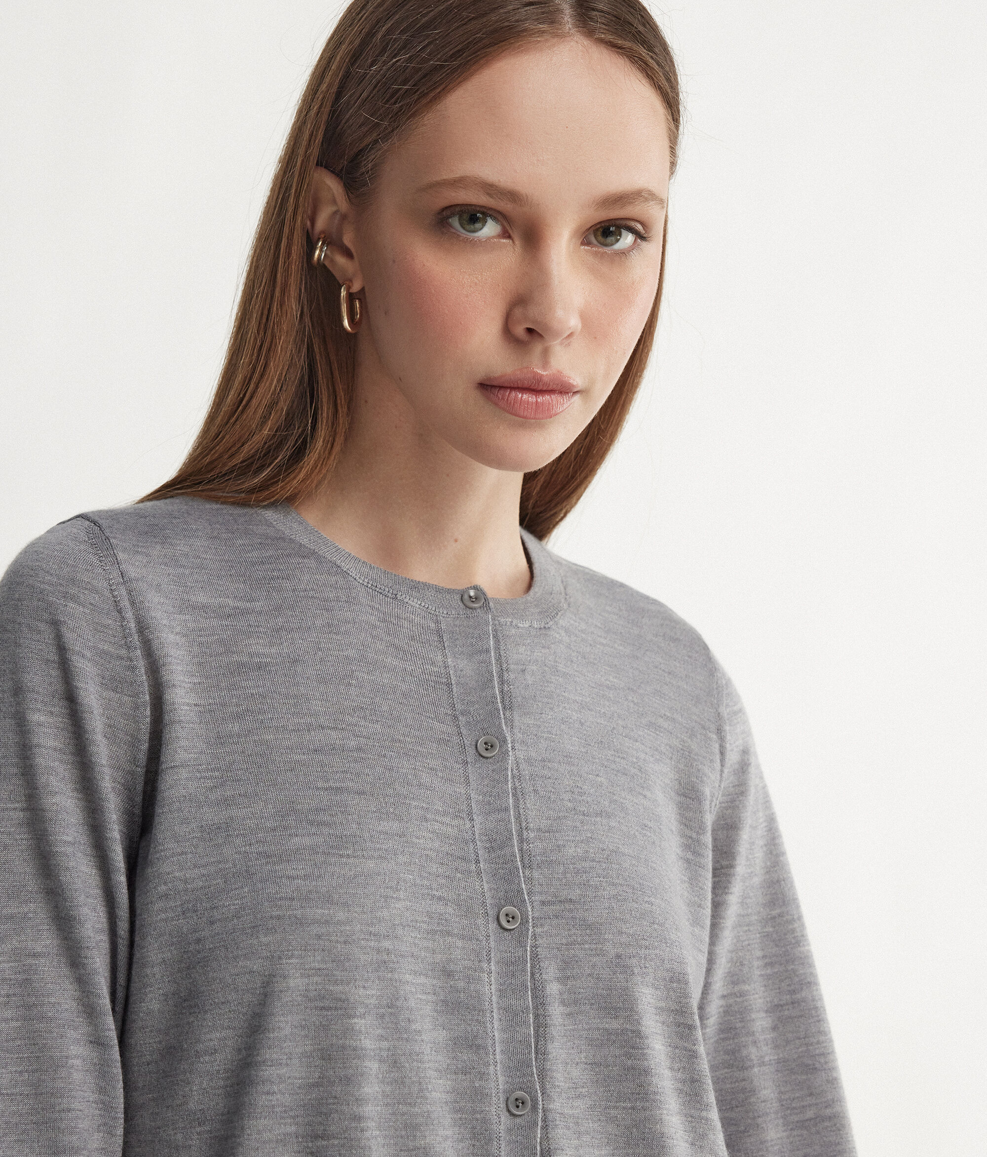 Una raffinata combinazione di classico e contemporaneo percorre lo stile di tutta la collezione Falconeri, l'amore per i materiali pregiati e la cura dei dettagli si esprimono nella scelta di filati iconici come il puro cashmere Ultrafine e nell'equilibrio di forme e volumi. Questo golfino girocollo con bottoni rappresenta un capo chiave nel guardaroba di ogni donna.