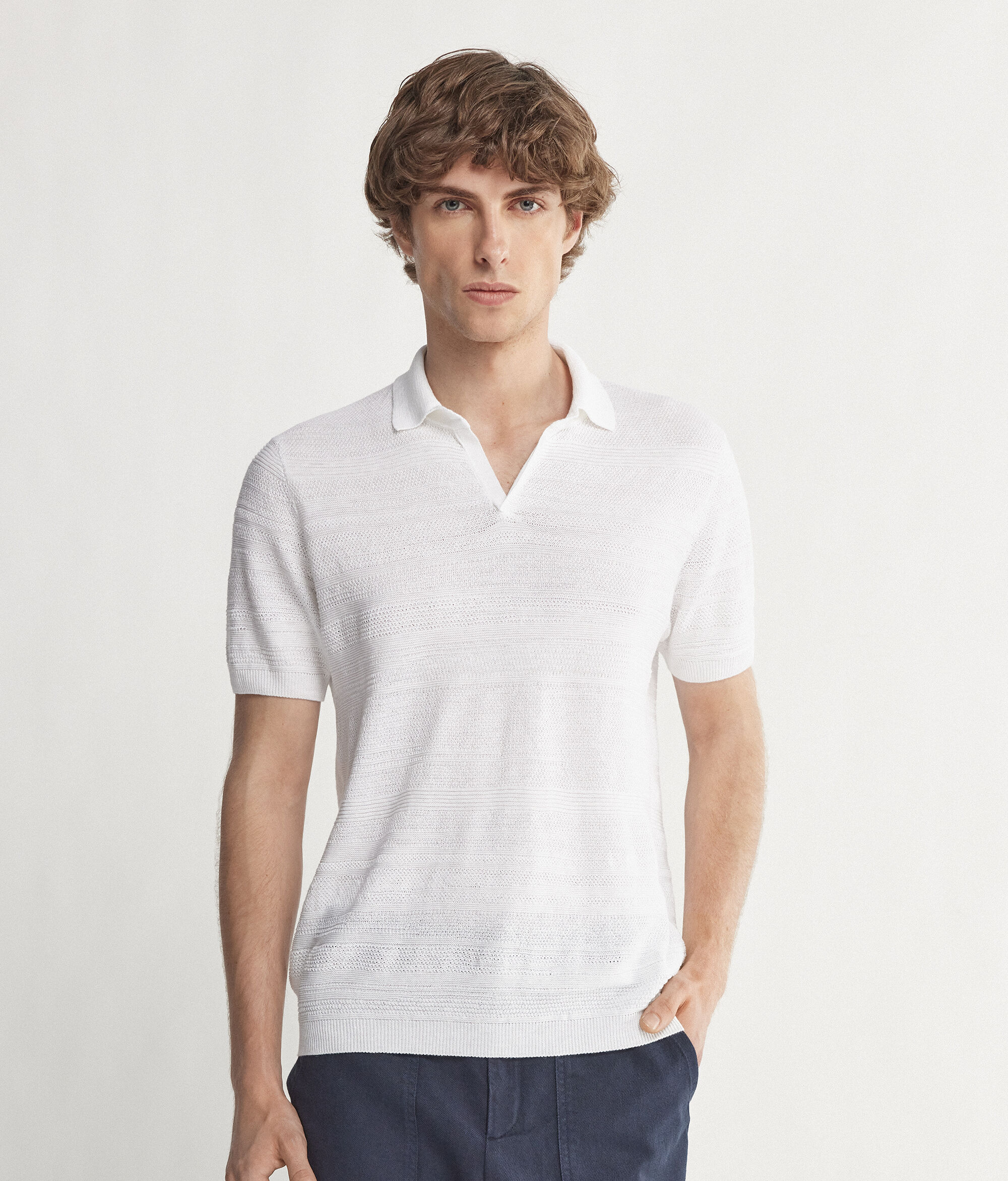 La nuova polo a maniche corte rappresenta al meglio l'essenza di Falconeri. Se le linee semplici e pulite rendono il capo estremamente versatile, la lavorazione mix di punti dona il tocco raffinato e ricercato che da sempre contraddistingue il brand.