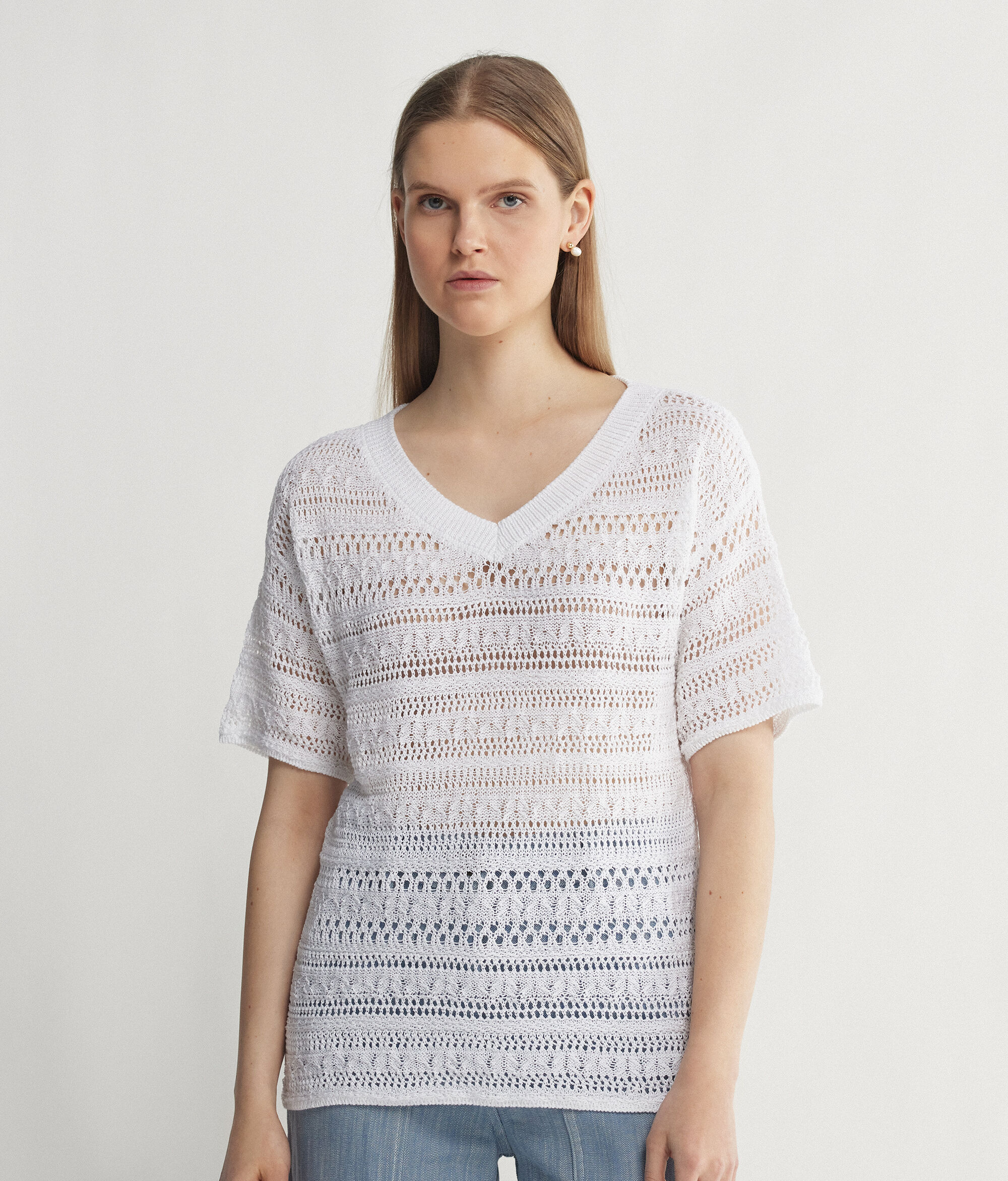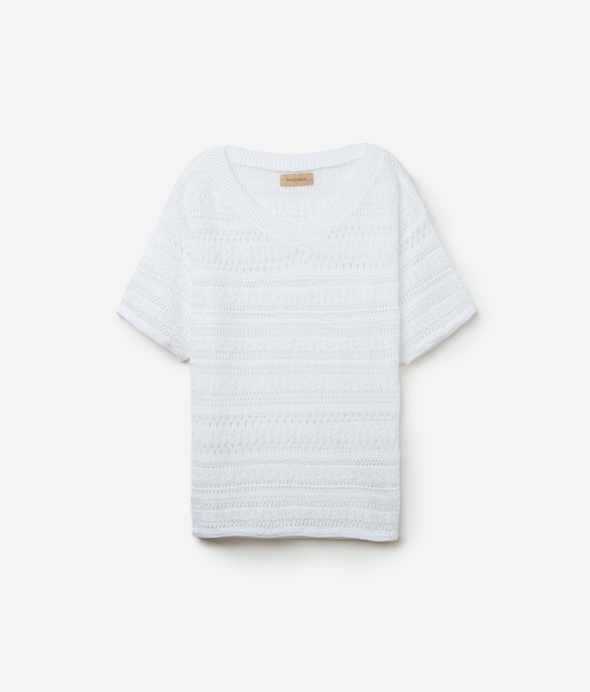 Nata da un'ispirazione all'anima gypsy la nuova maglia traforata firmata Falconeri è il capo perfetto per valorizare i tuoi look primaverili. Versatile e raffinata dona carattere anche al look più semplice. Ideale abbinata ad un pantalone con piega a gamba larga per un gusto più elegante oppure ad un comodo demin essenziale dalla vita alta per un aspetto più casual.