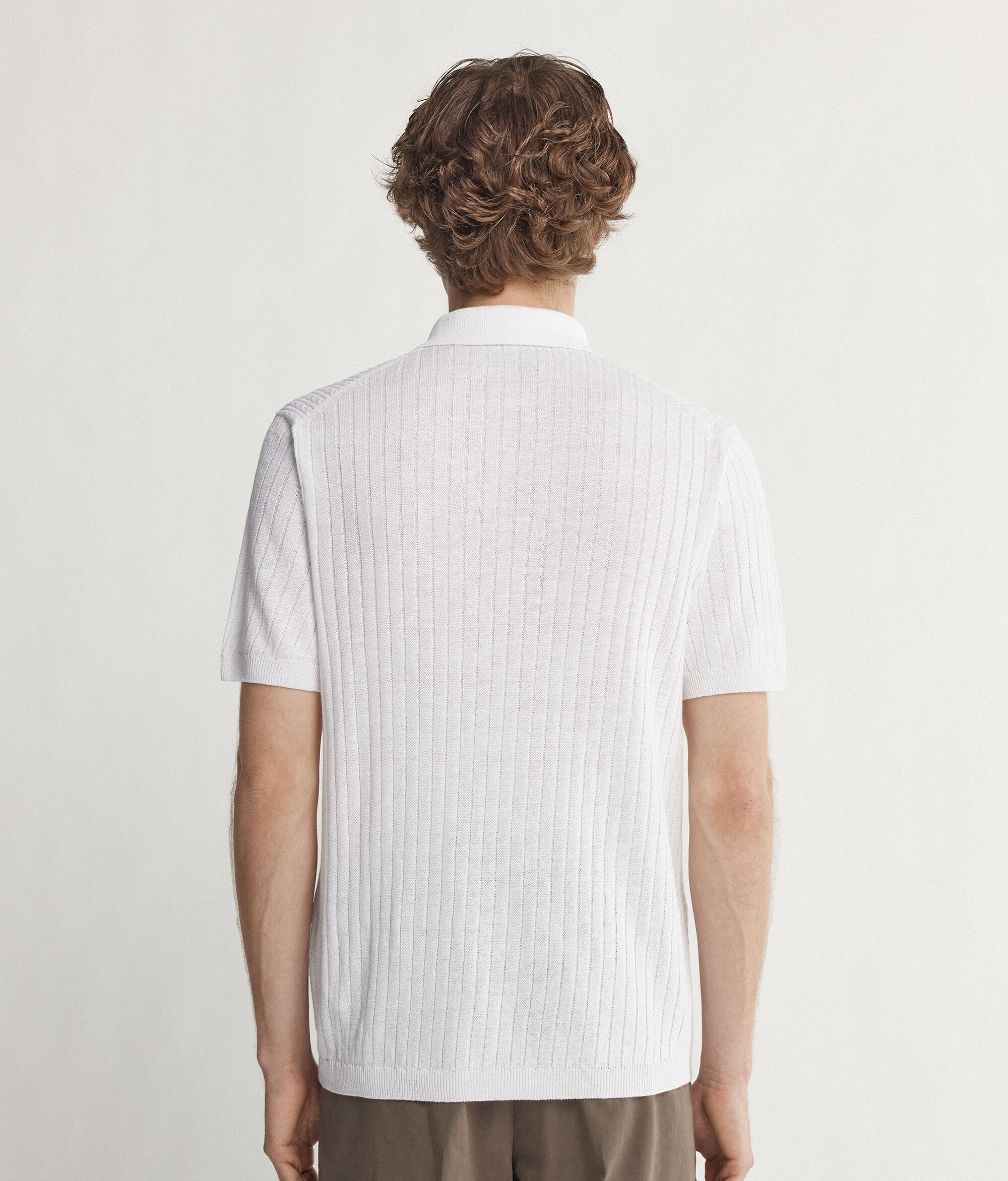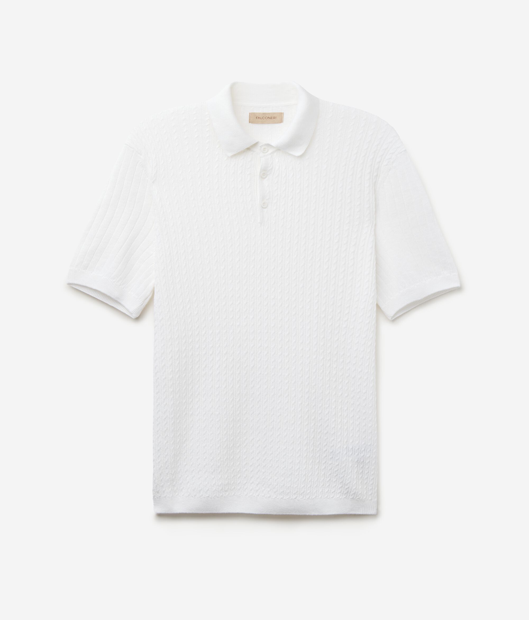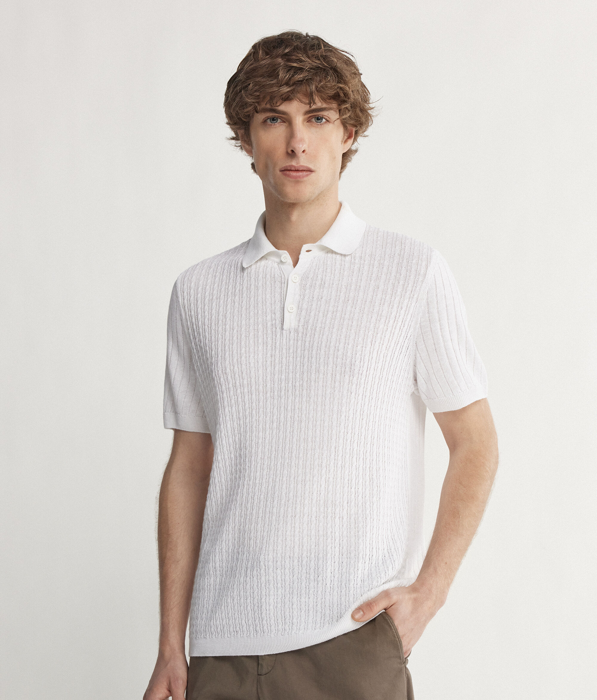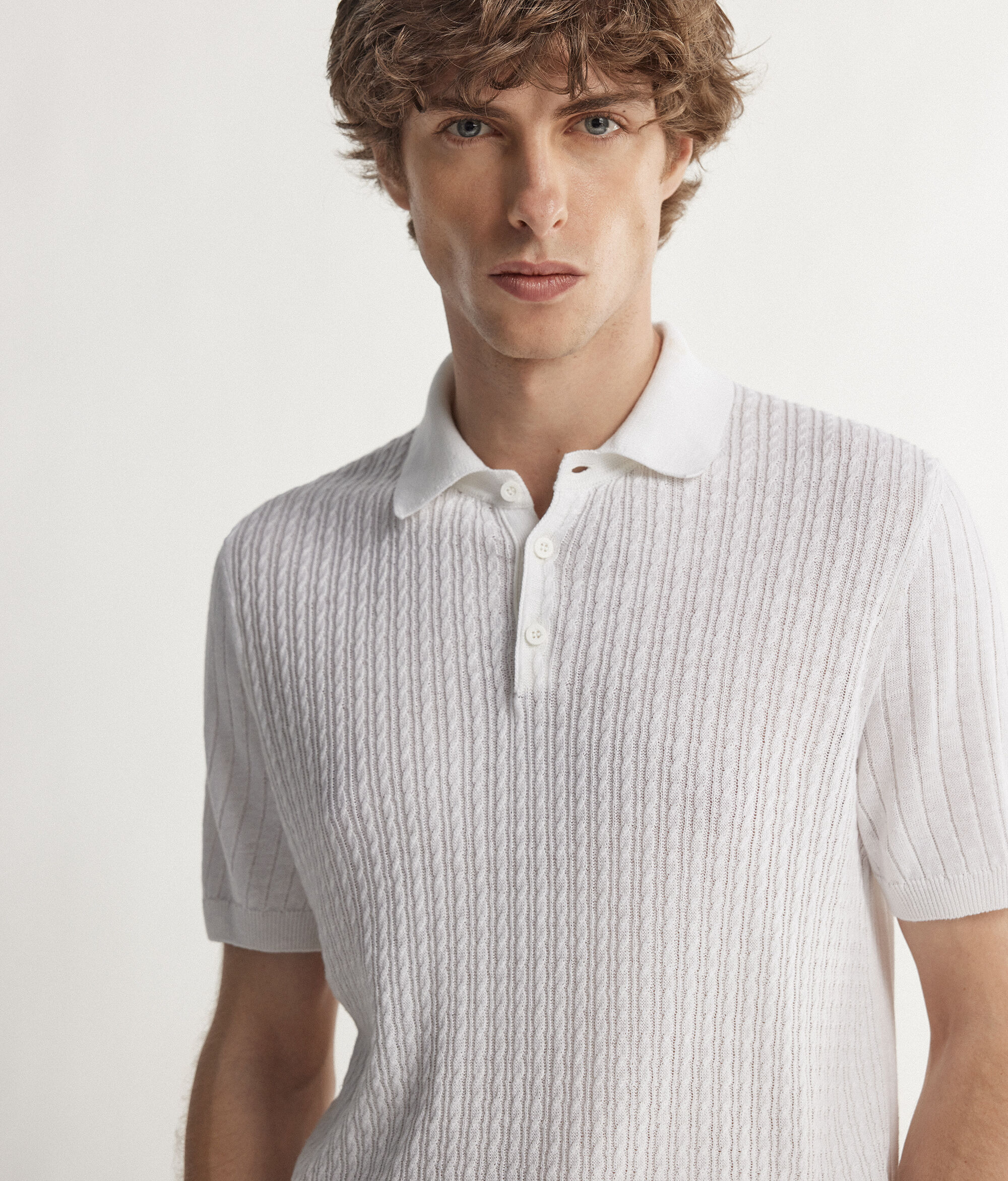 L'essenza del marchio si esprime al meglio grazie alle linee pulite ed essenziali di questa nuova polo. La lavorazione a trecce sul davanti e i dettagli a coste donano al capo un tocco anni '60. Perfetta come sottogiacca oppure indossata da sola è adatta a qualsiasi situazione.