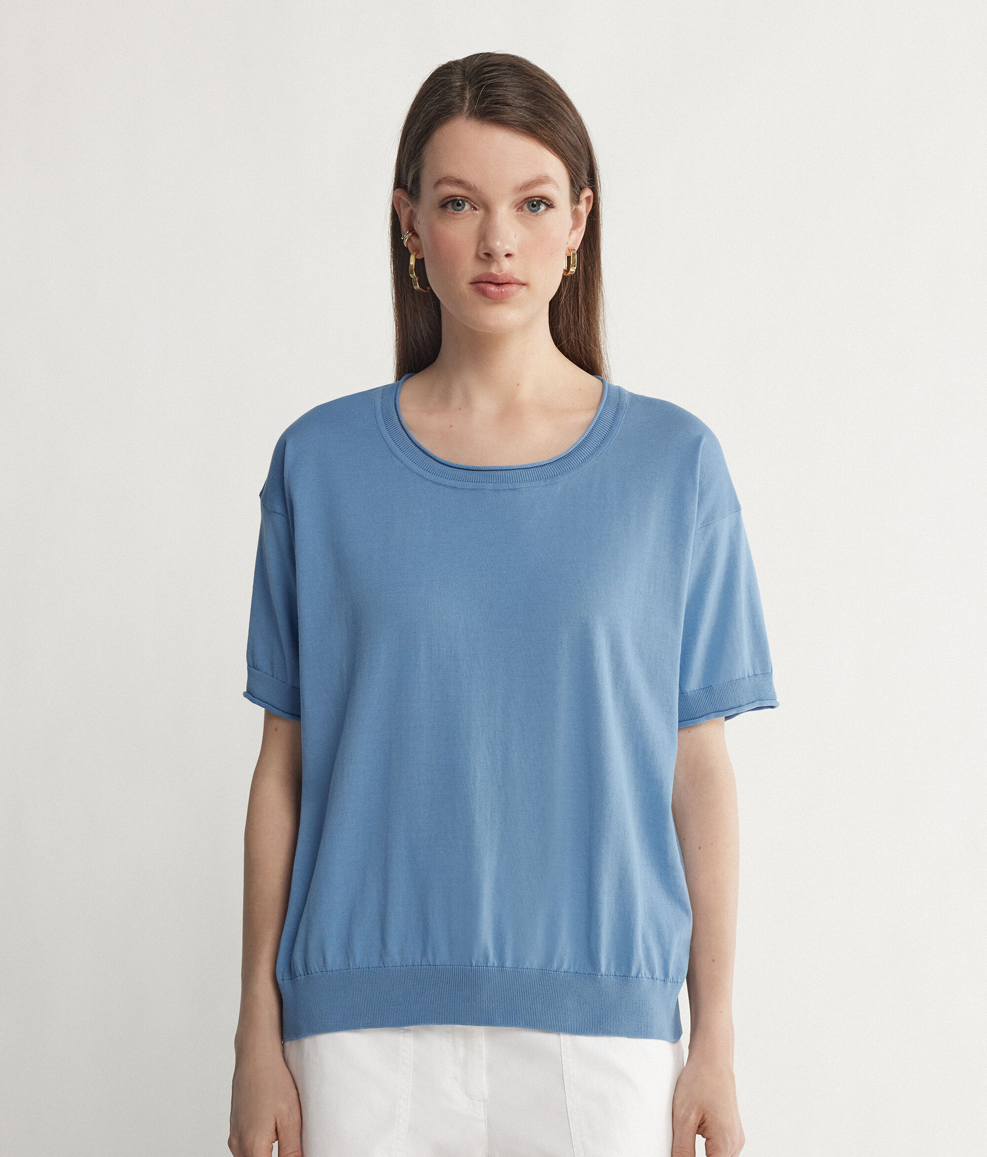 Per le amanti dello stile essenziale Falconeri propone la nuova T-shirt girocollo a maniche corte. Le linee semplici e pulite ne garantiscono la massima versatilità rendendolo un capo immancabile nel guardaroba di ogni donna.