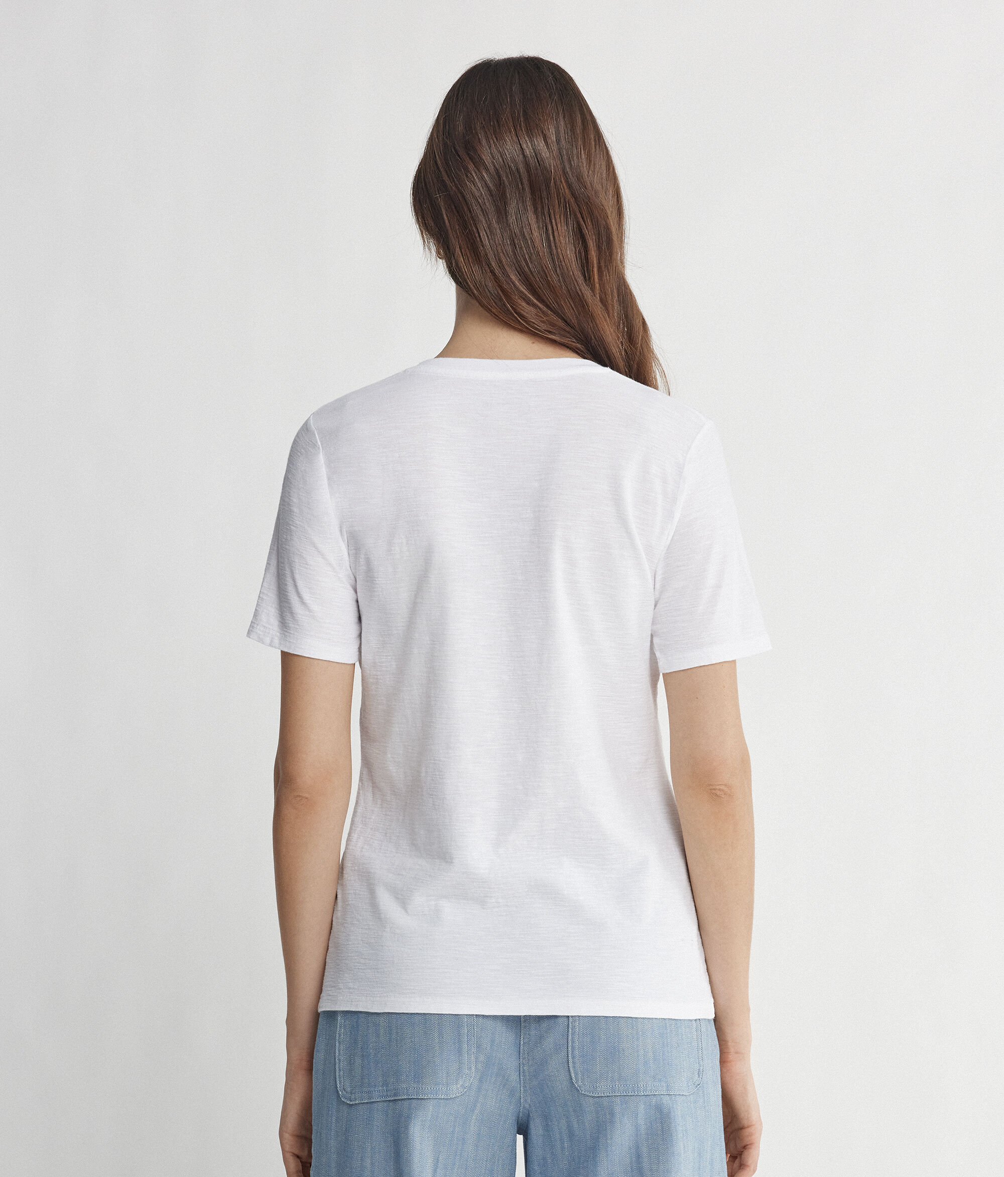 T-Shirt a Maniche Corte con Scollo a V in Cotone