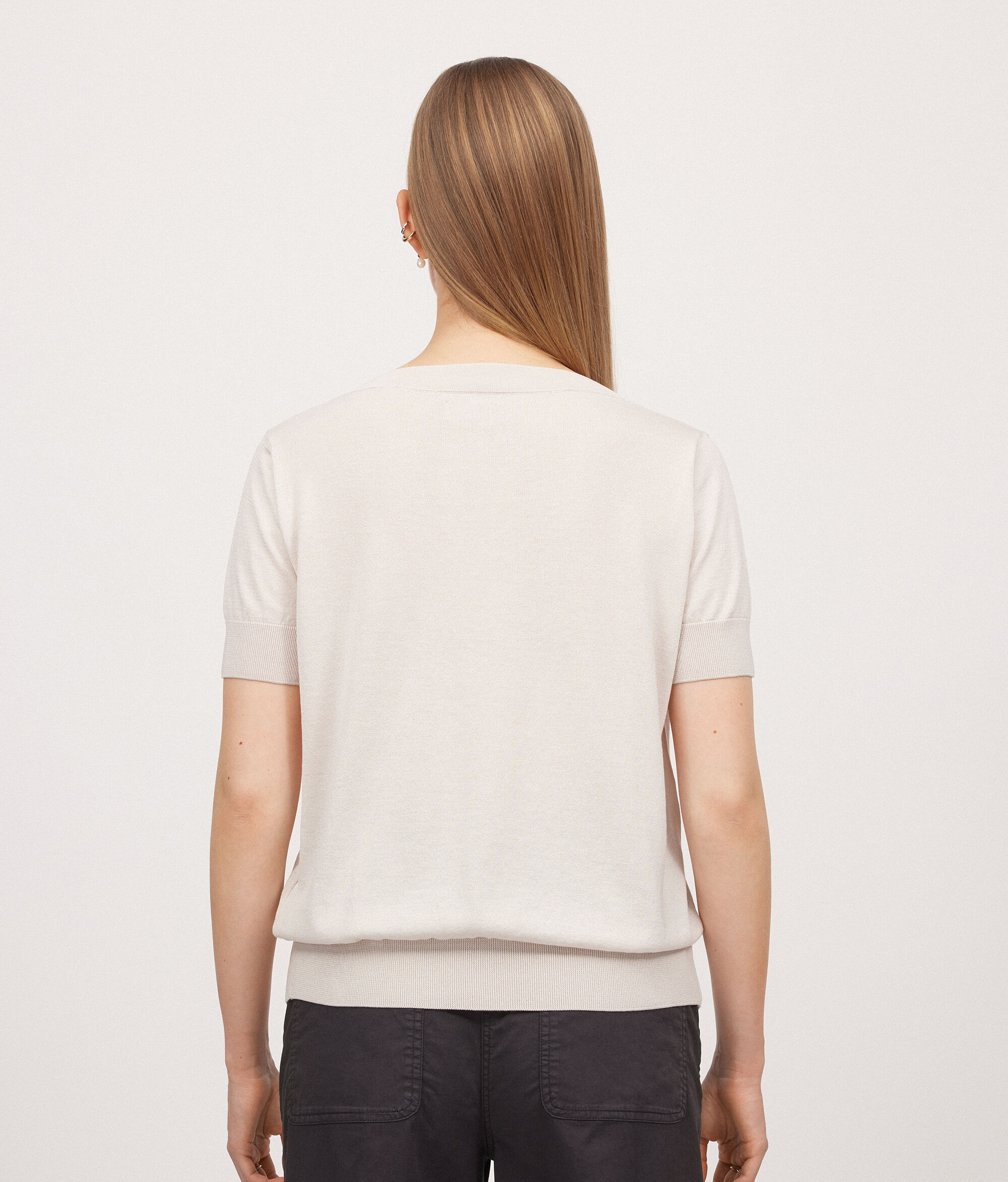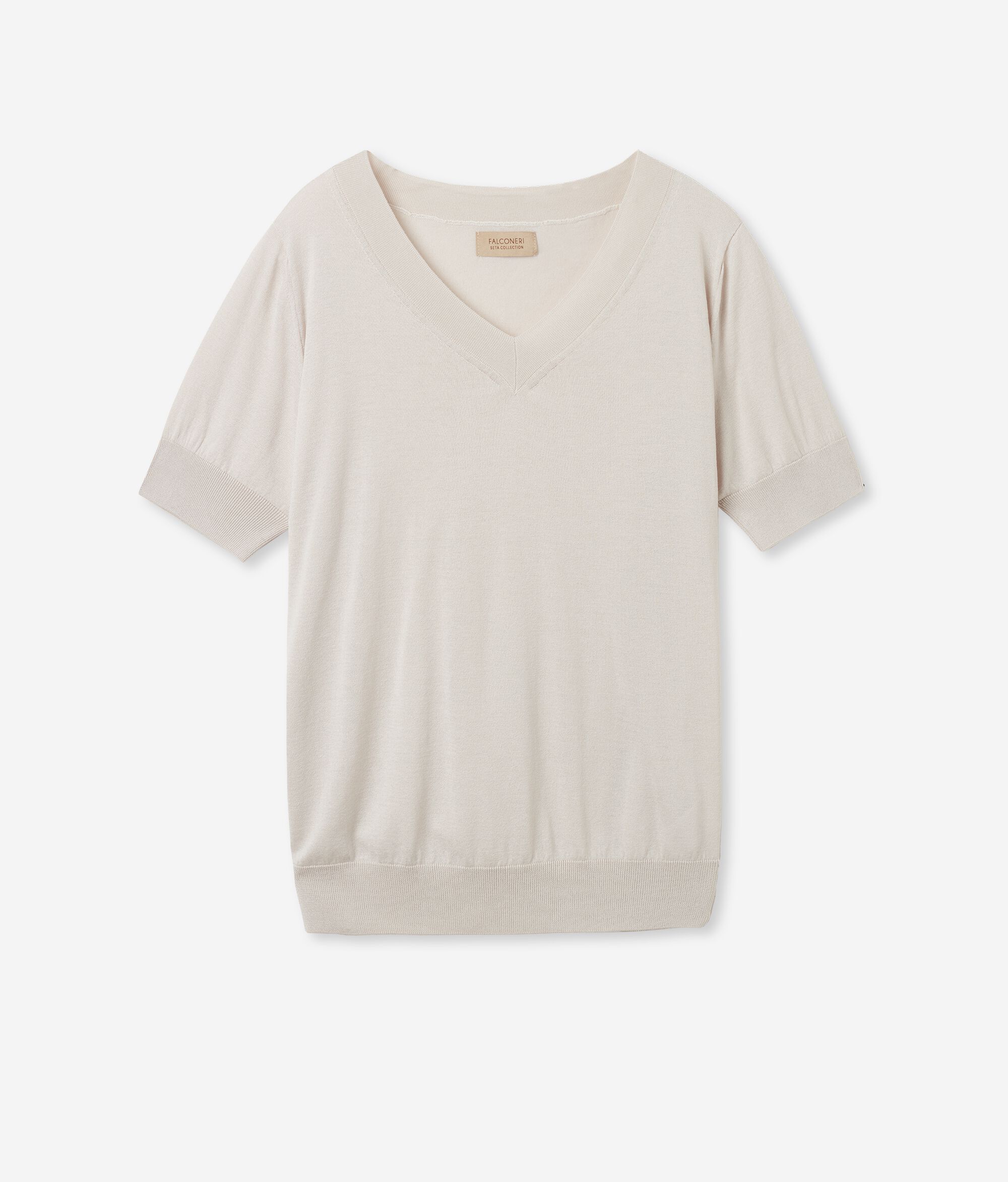 Maglia con Scollo a V a Maniche Corte in Seta Cotone