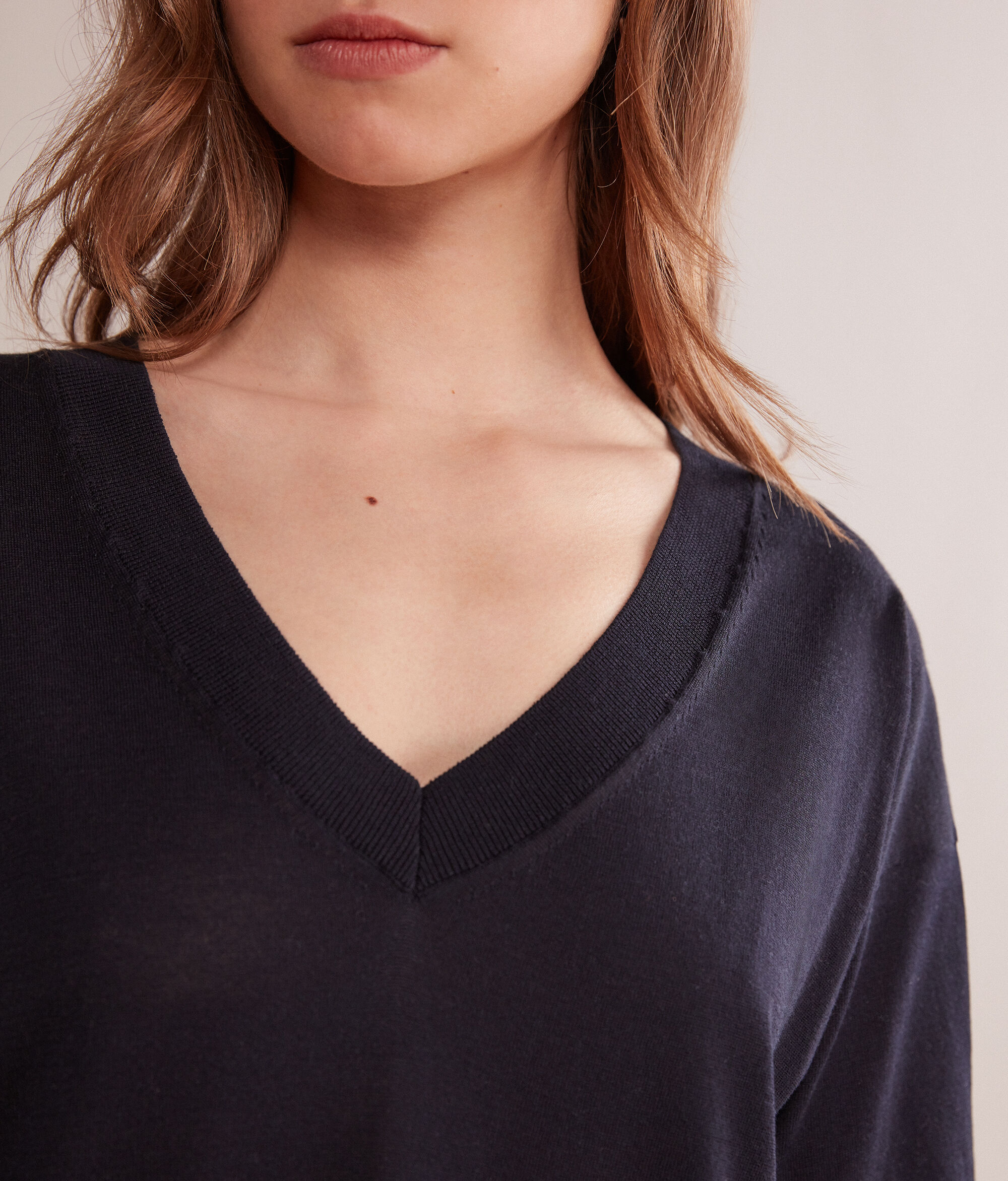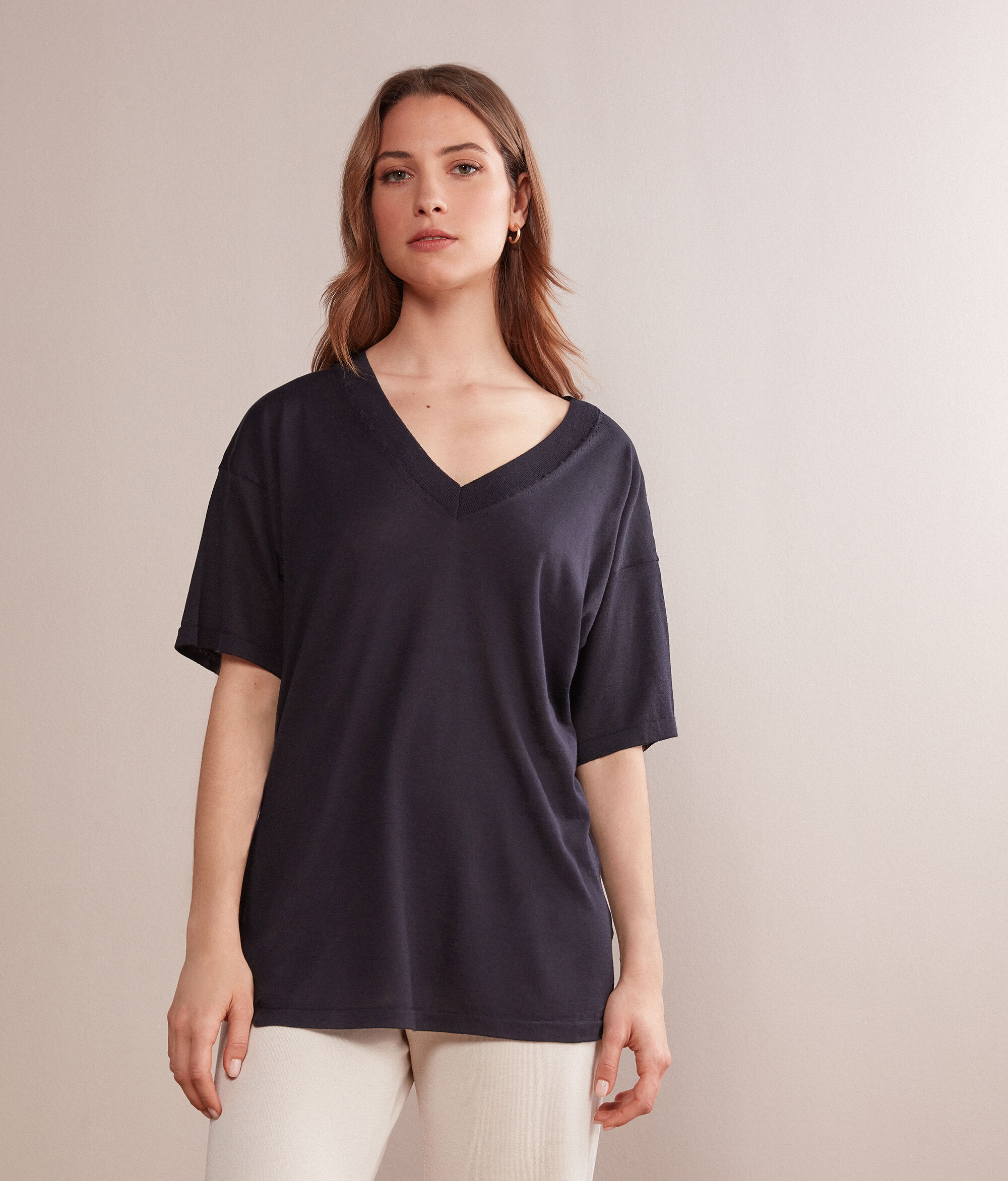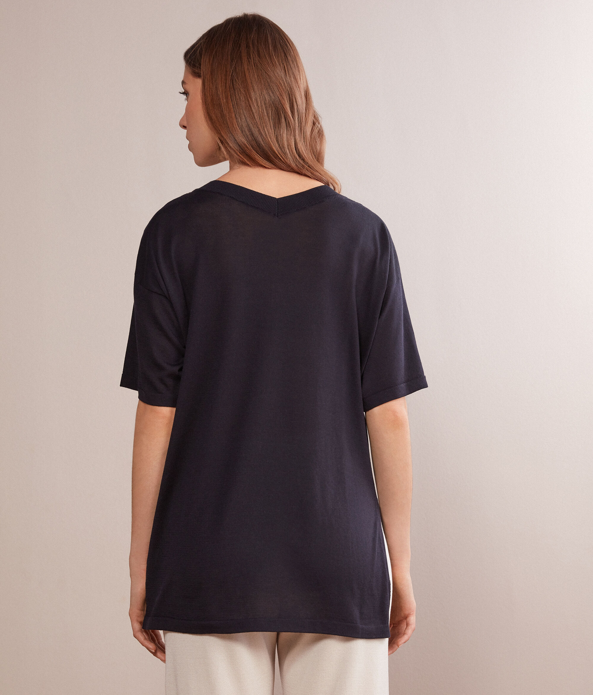Maglia Scollo a V in Seta e Cotone con Spacco
