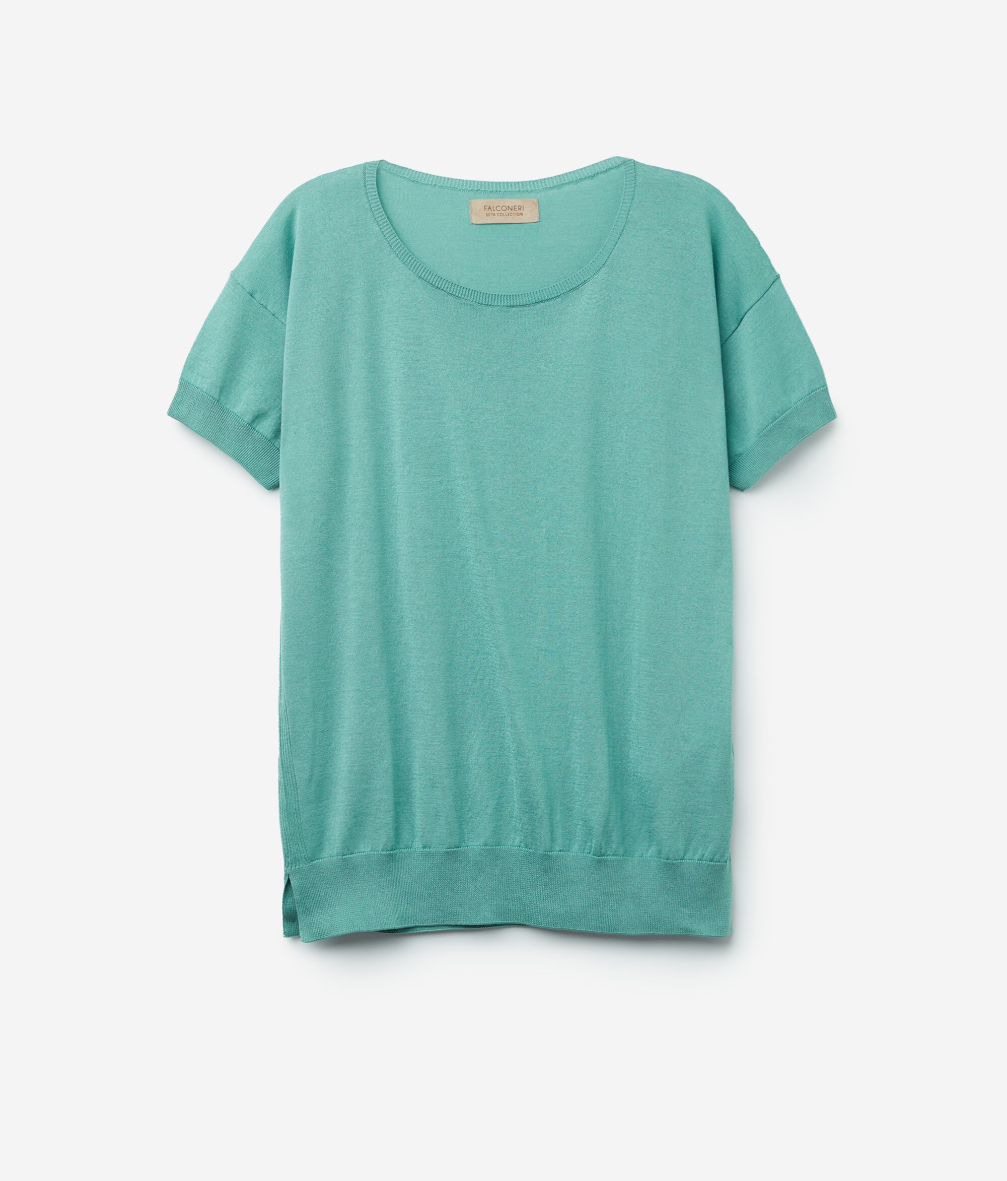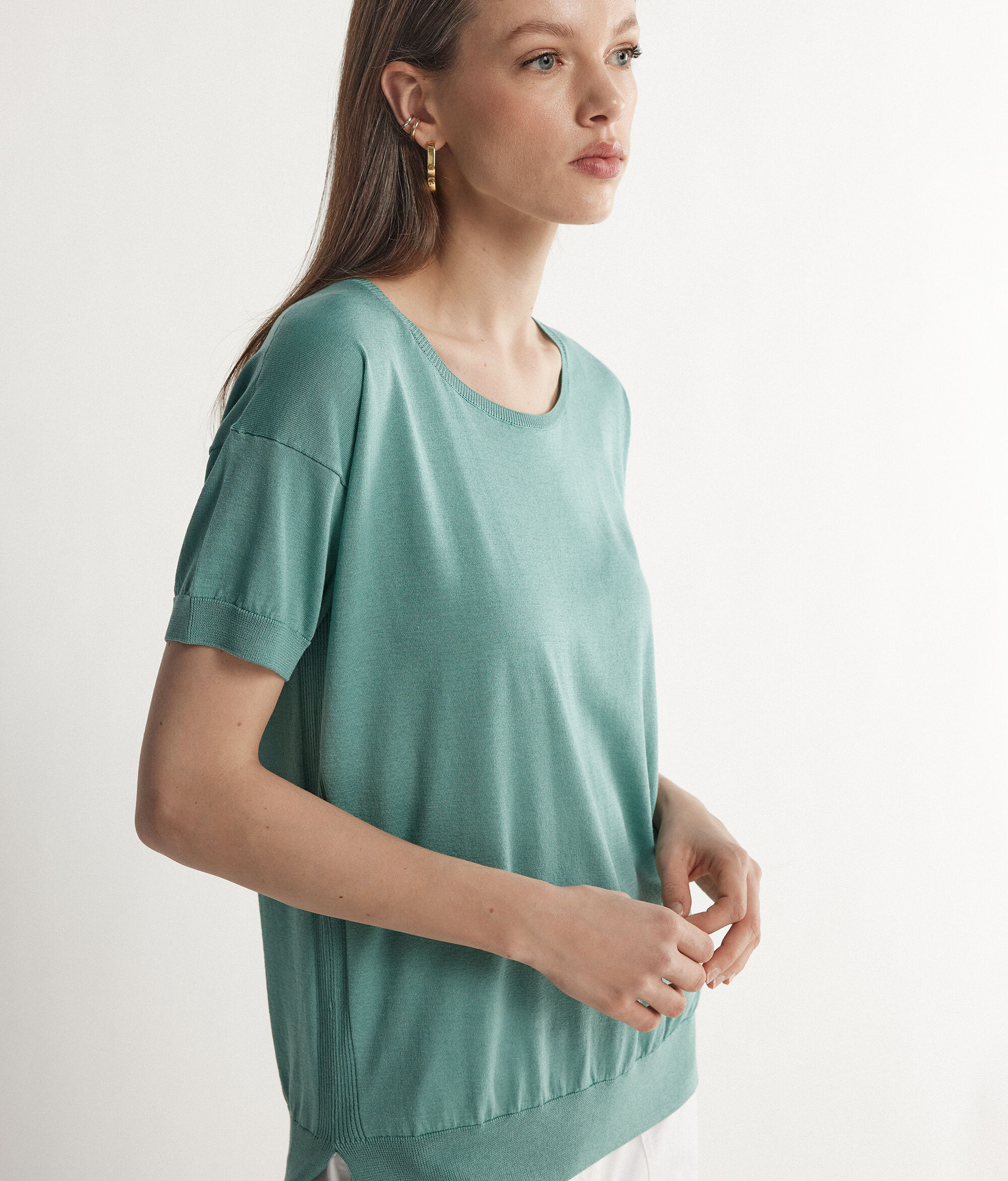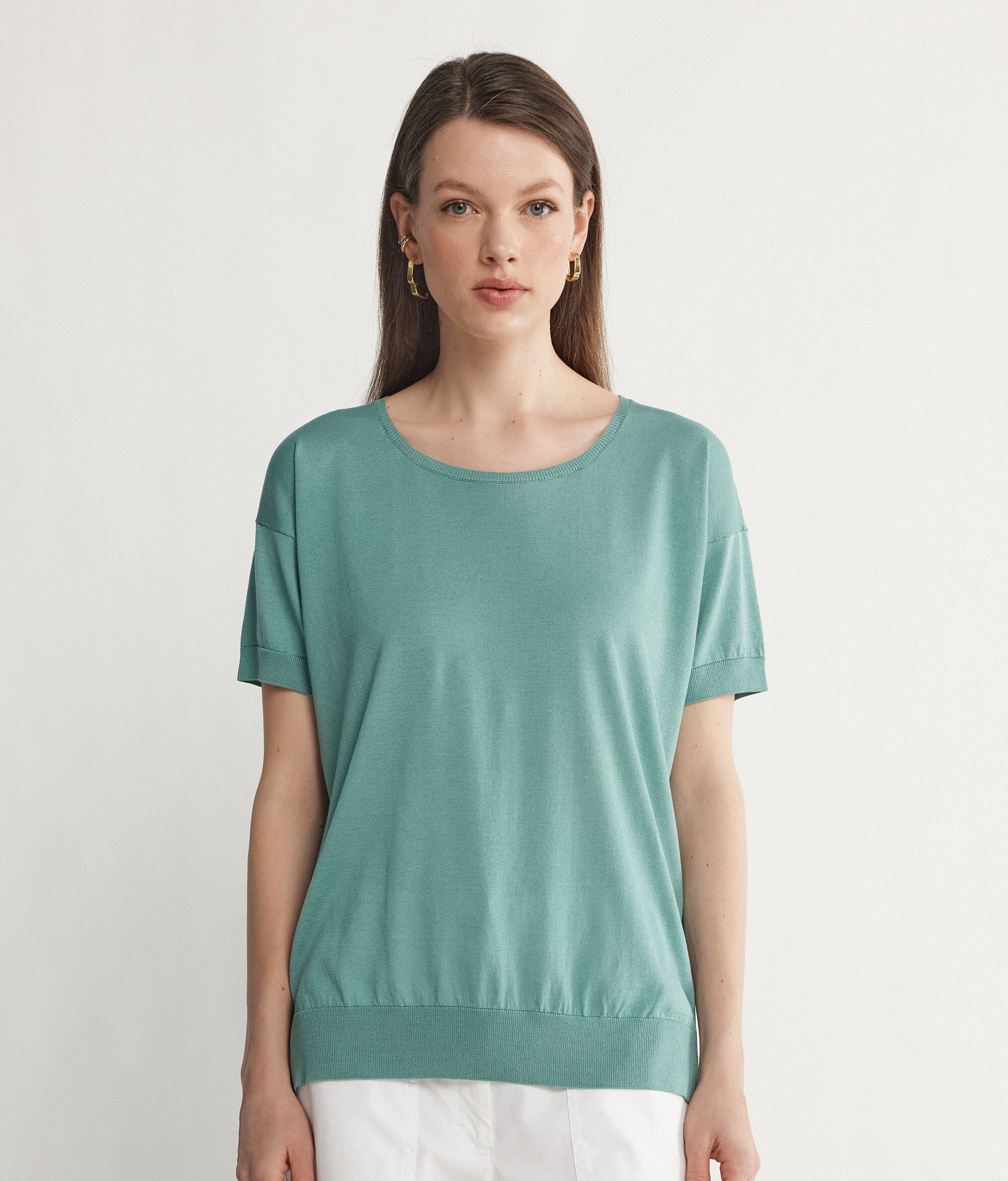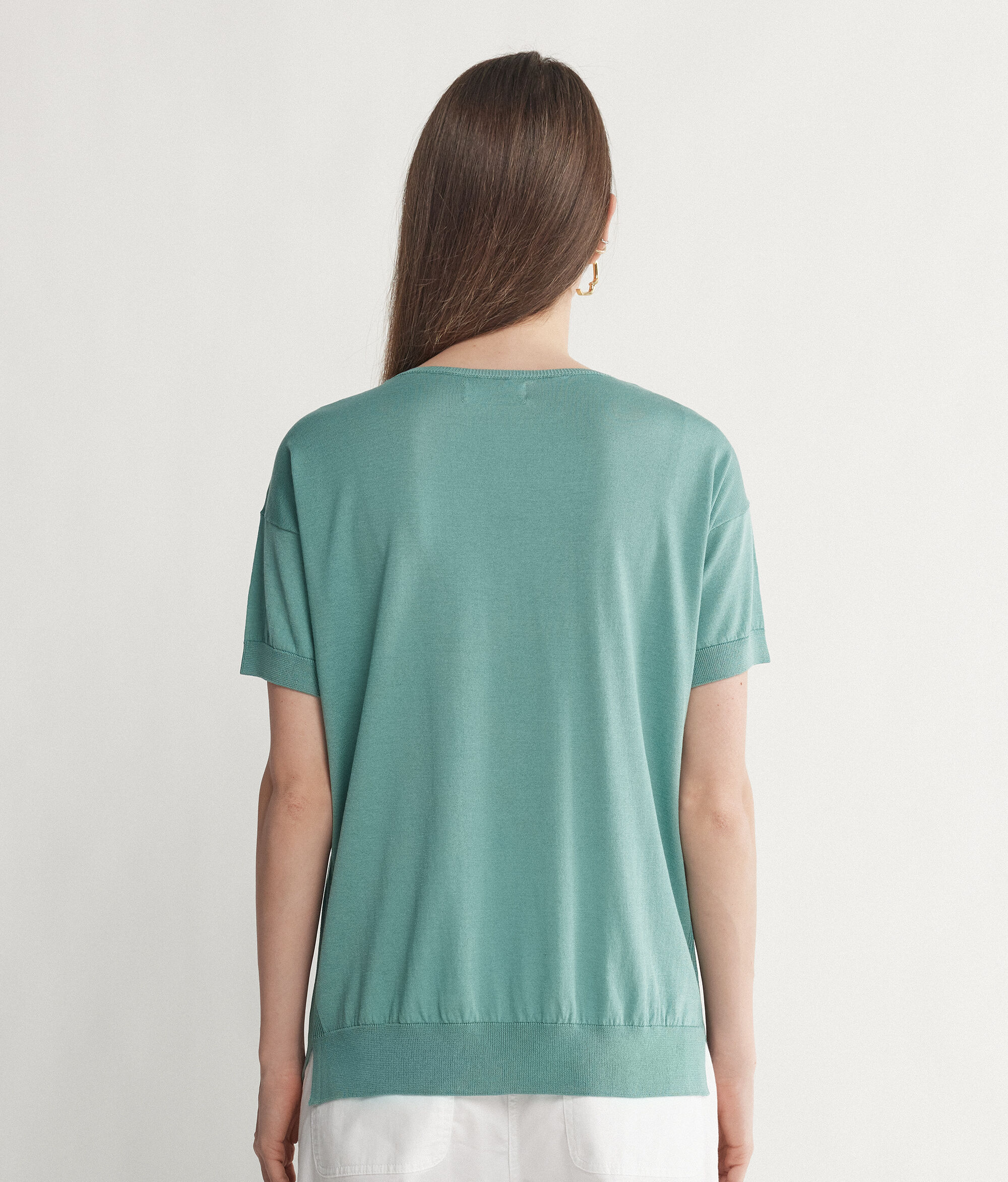 Il pregio di seta e cotone impreziosisce lo stile essenziale e versatile di questa maglia a maniche corte. La texture fluida e piacevole la rende estremamente confortevole e versatile, perfetta con qualsiasi abbinamento.