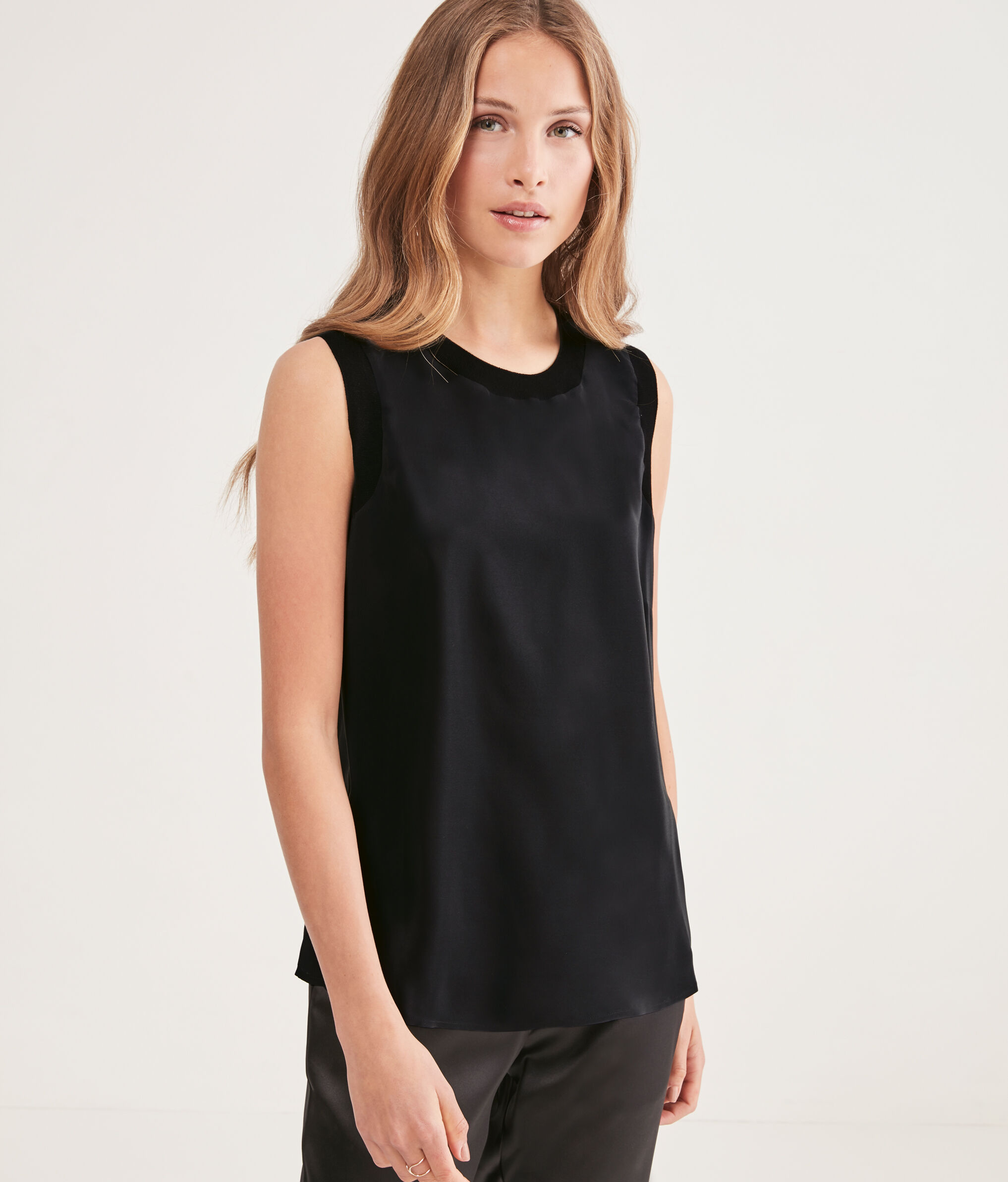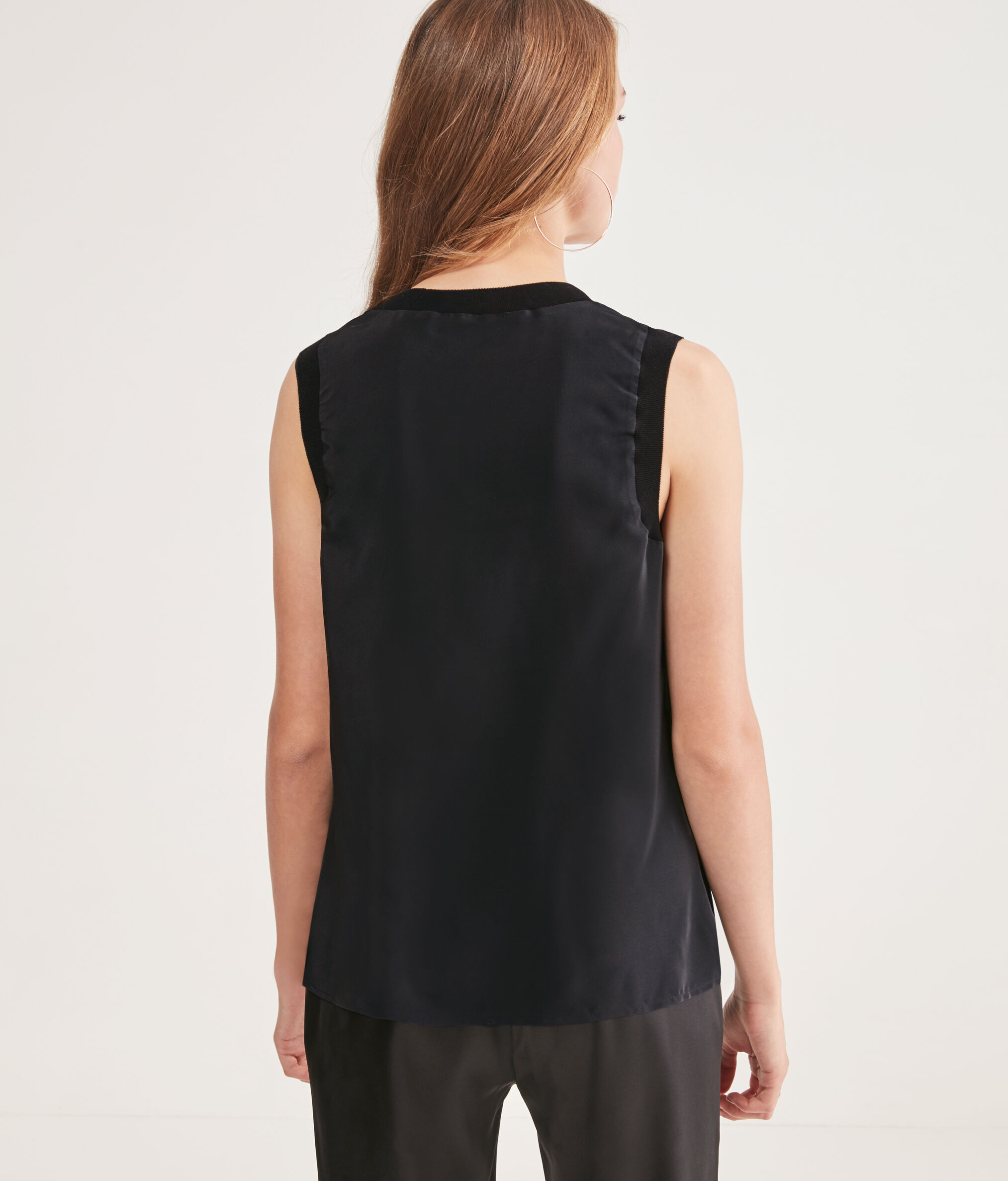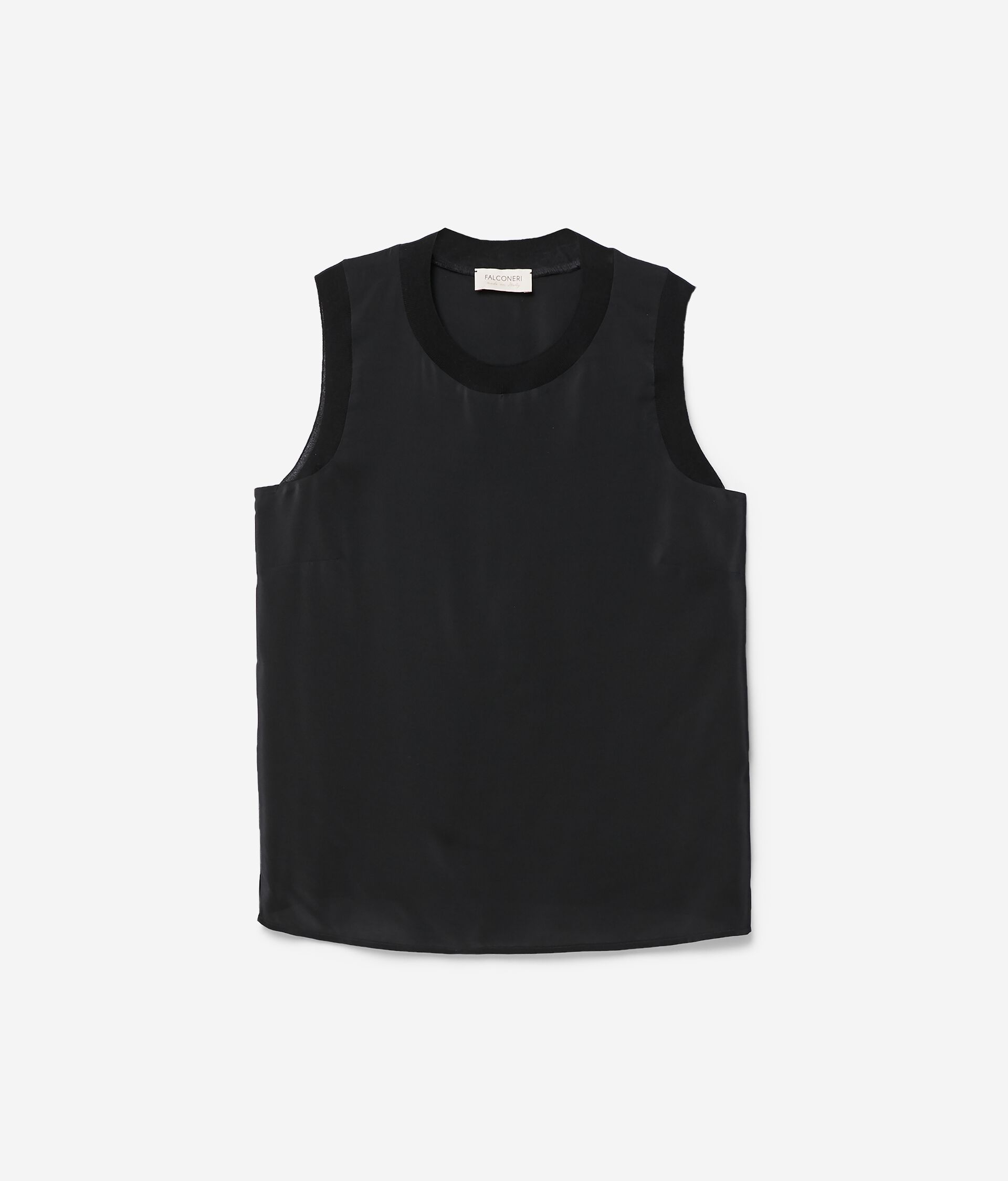 Canotta in seta con inserti in maglia di cotone a costine sullo scollo e sul giromanica. Vestibilità dritta.