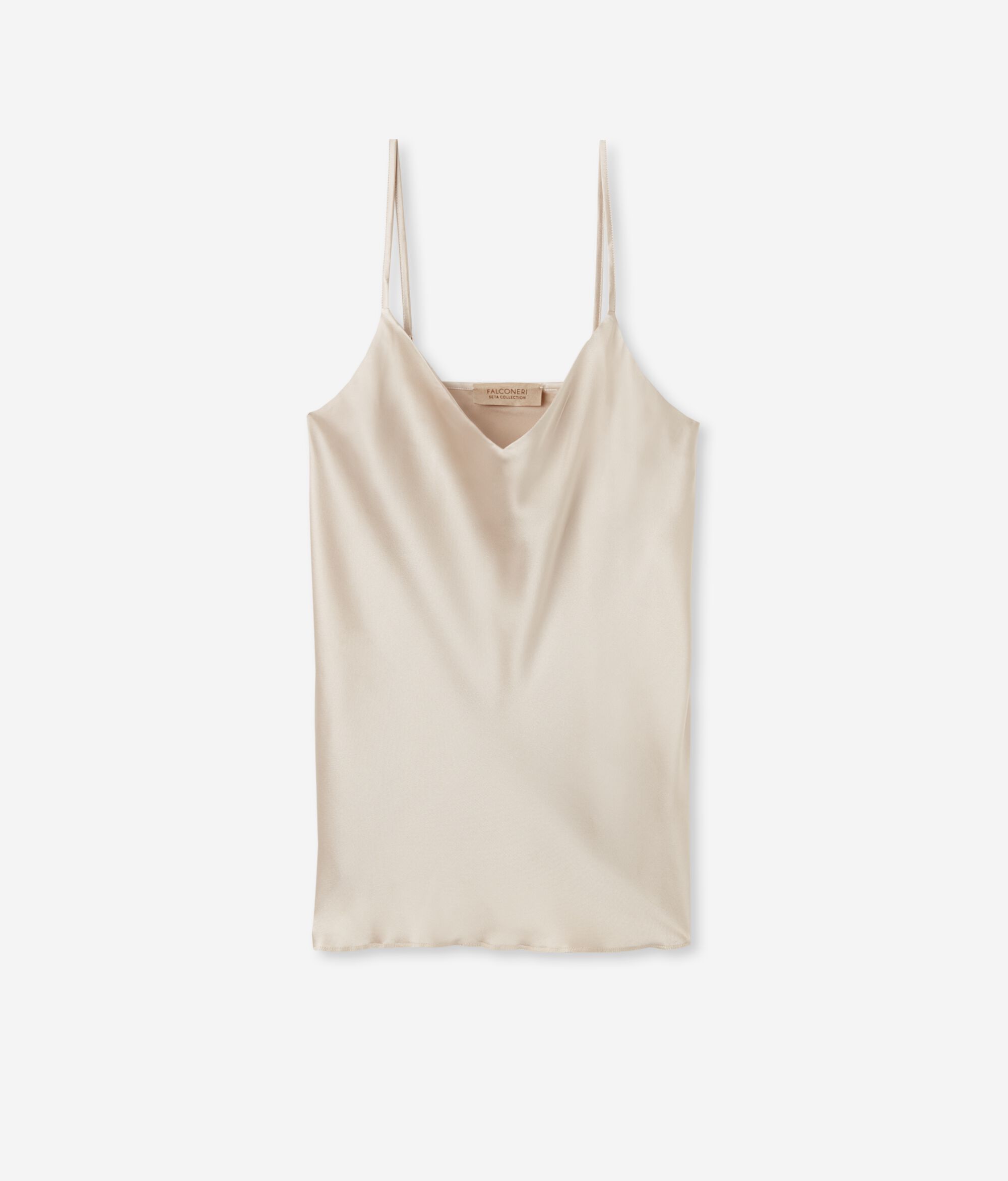 Le linee essenziali ed eleganti caratterizzano questa canotta firmata Falconeri. La morbida consistenza della seta renderà questo capo una piacevole carezza sulla pelle. Un top perfetto da utilizzare da solo o come sottogiacca per un tocco elegante ai tuoi look serali!