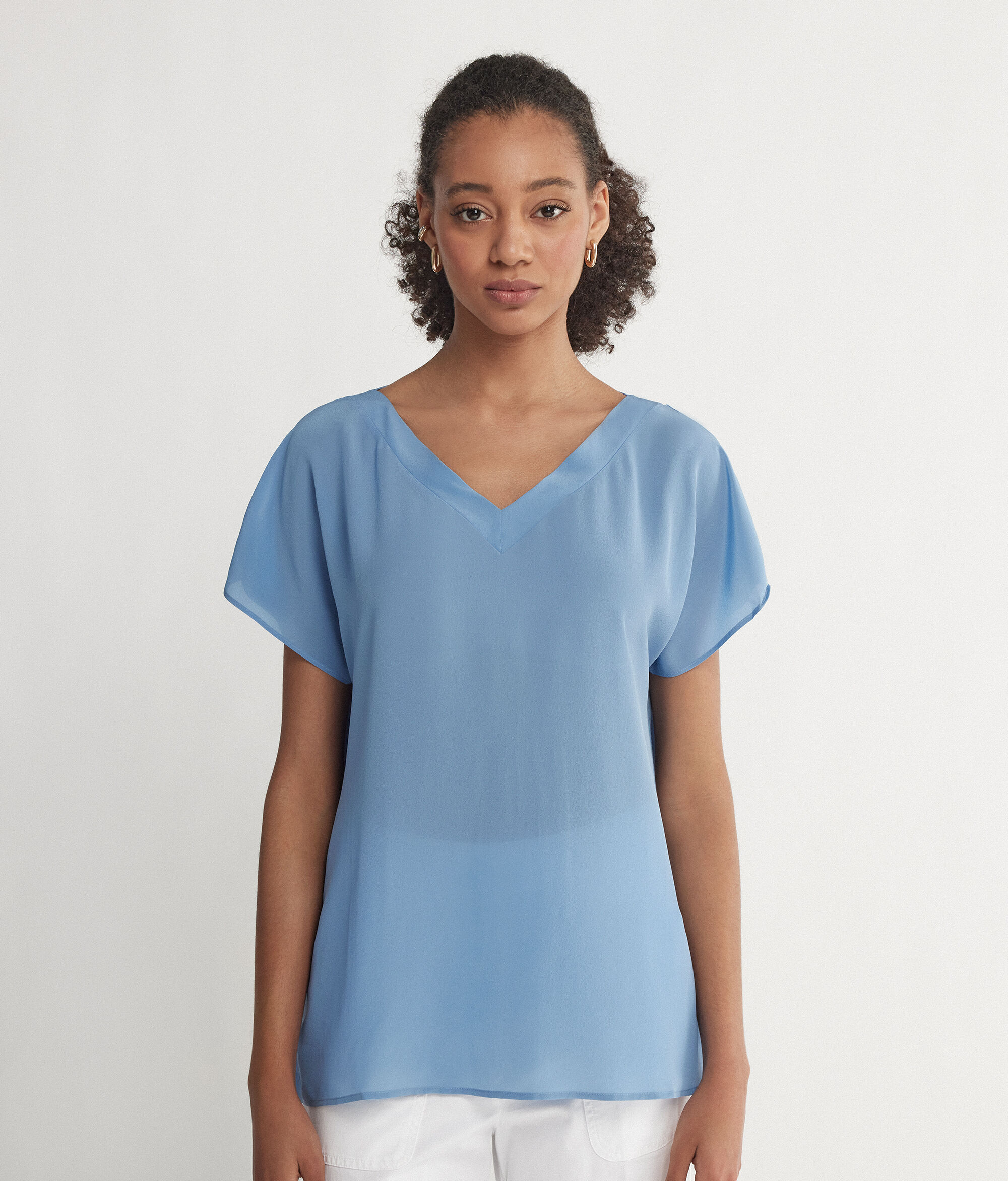 Falconeri propone una nuova t-shirt dalle linee morbide ed essenziali. La leggerezza e la fluidità della seta renderanno questo capo confortevole e piacevole da indossare. Perfetta e versatile sarà l'amica ideale per accompagnarti in ogni occasione.
