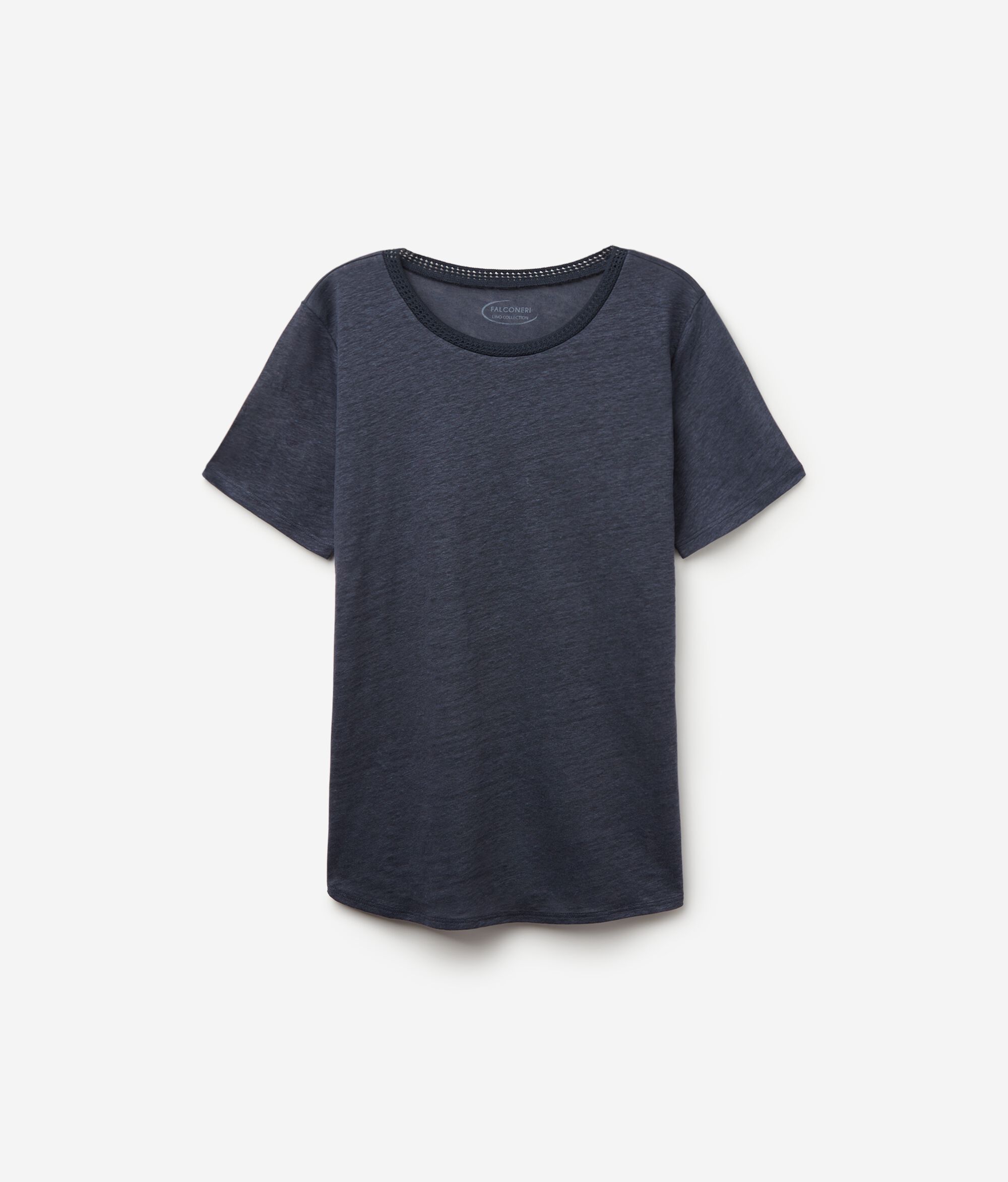 T-Shirt Girocollo con Bordi Retina in Lino