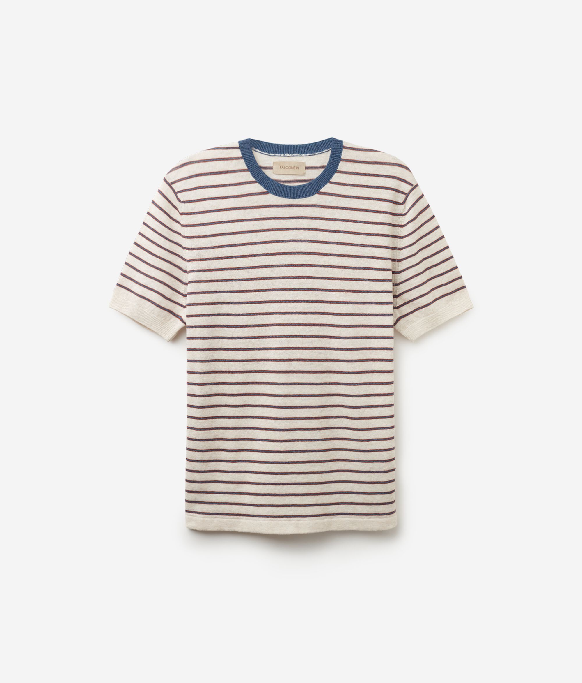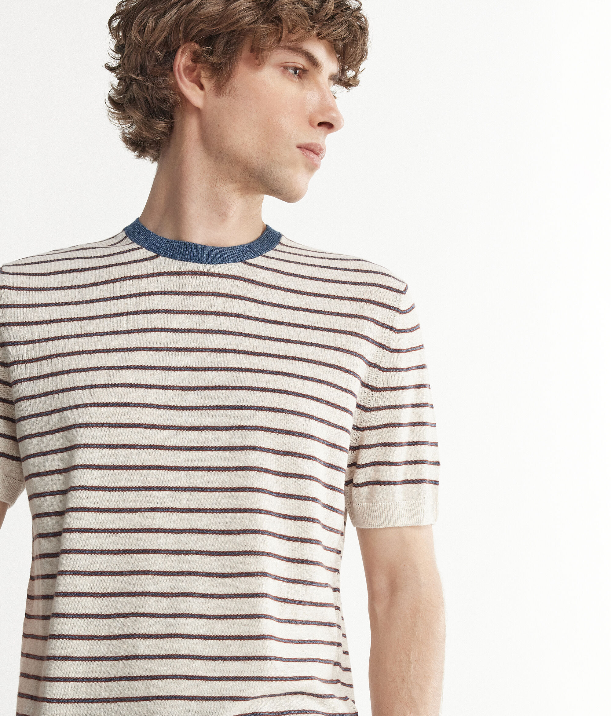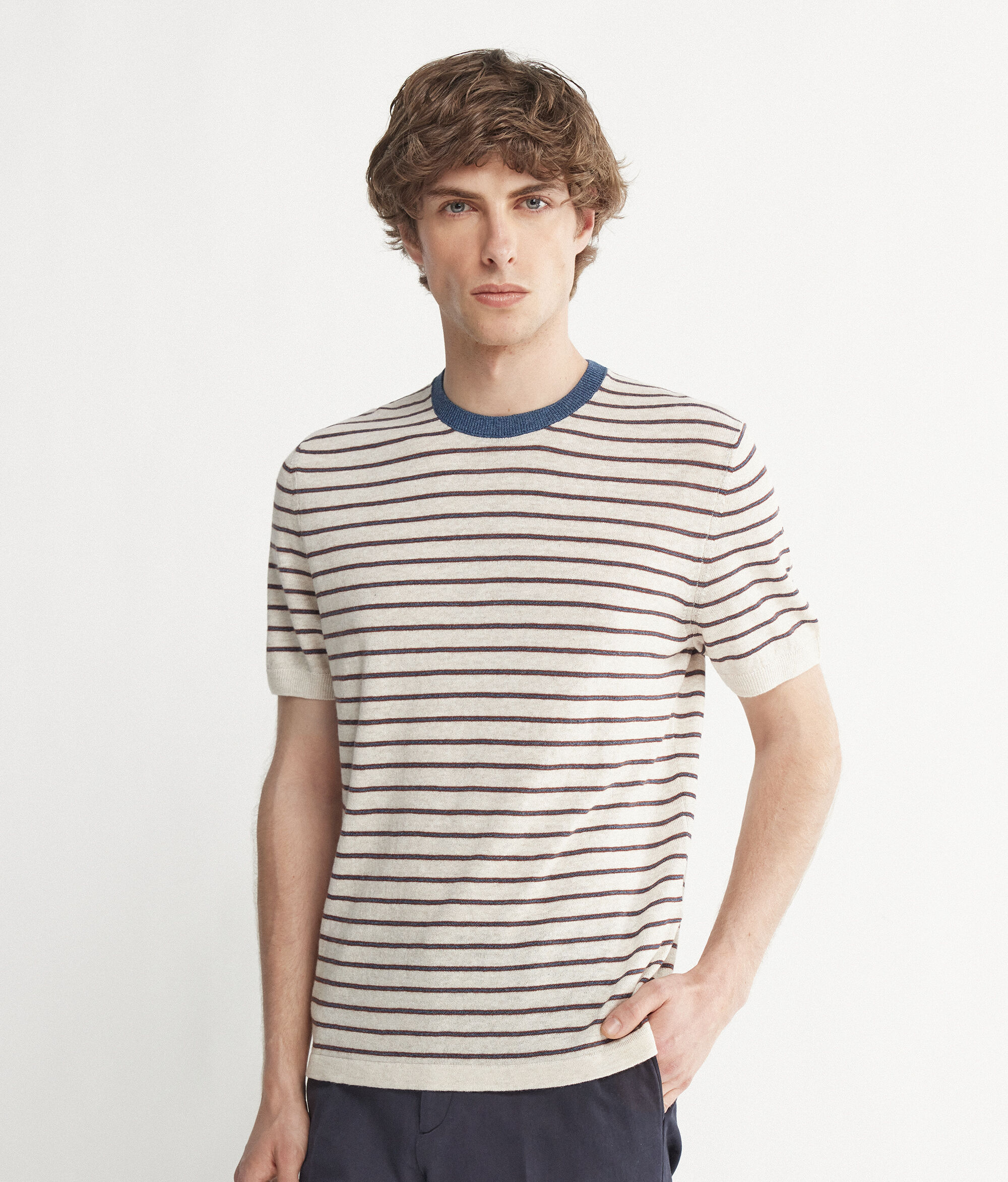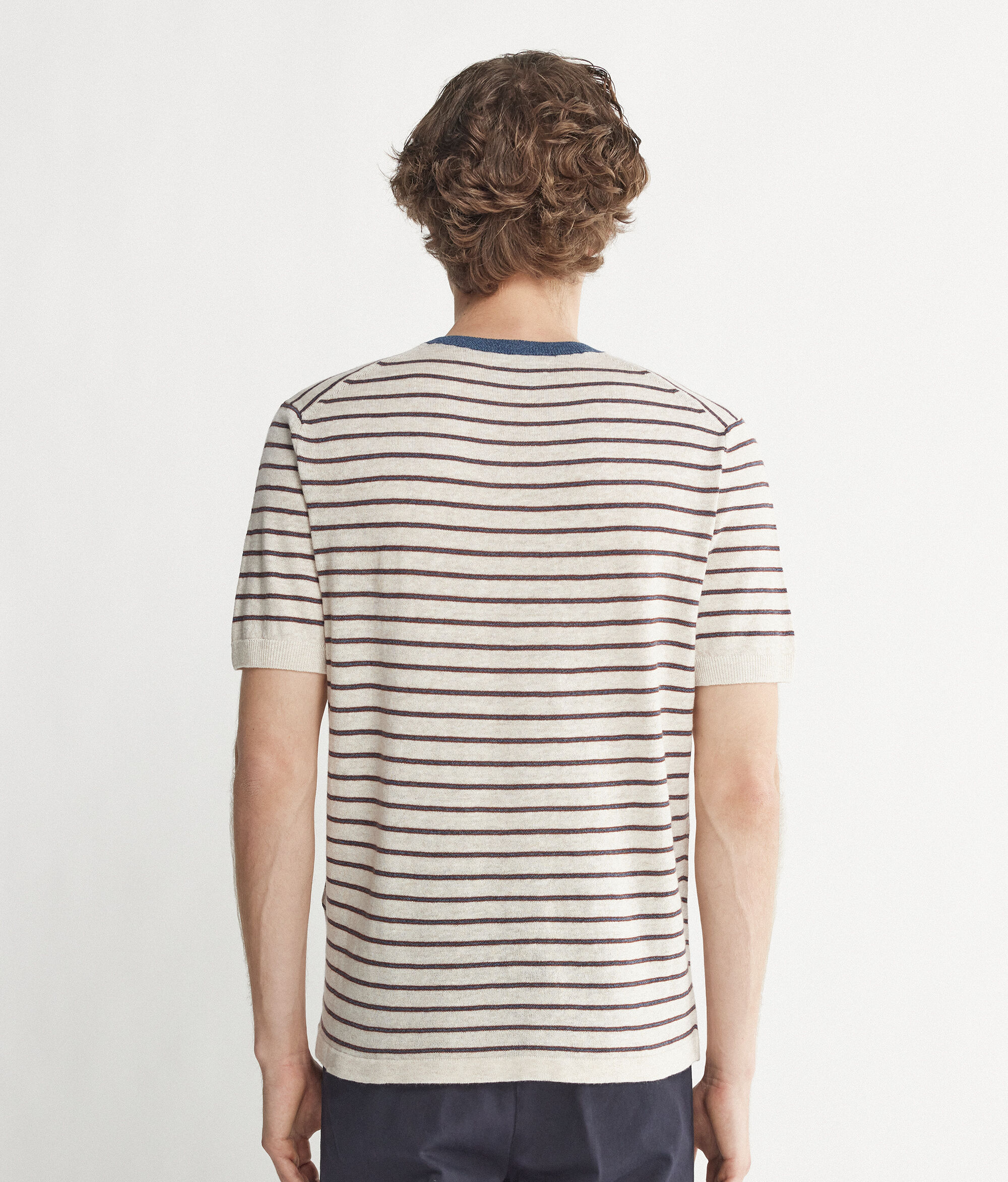 Questa t-shirt con motivo a righe e collo a contrasto è il capo perfetto per creare un look semplice ma non banale. Il suo design classico offre un’estetica nautica che la rende ideale in qualsiasi situazione, indossata da sola oppure come sottogiacca.