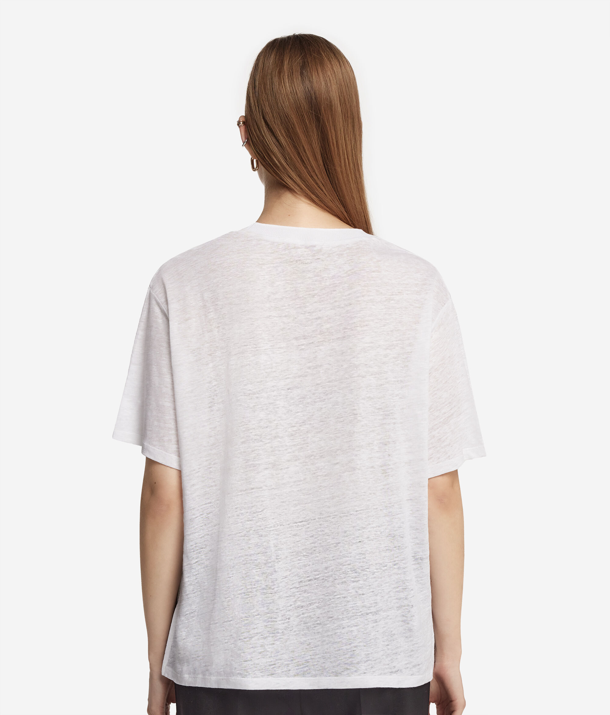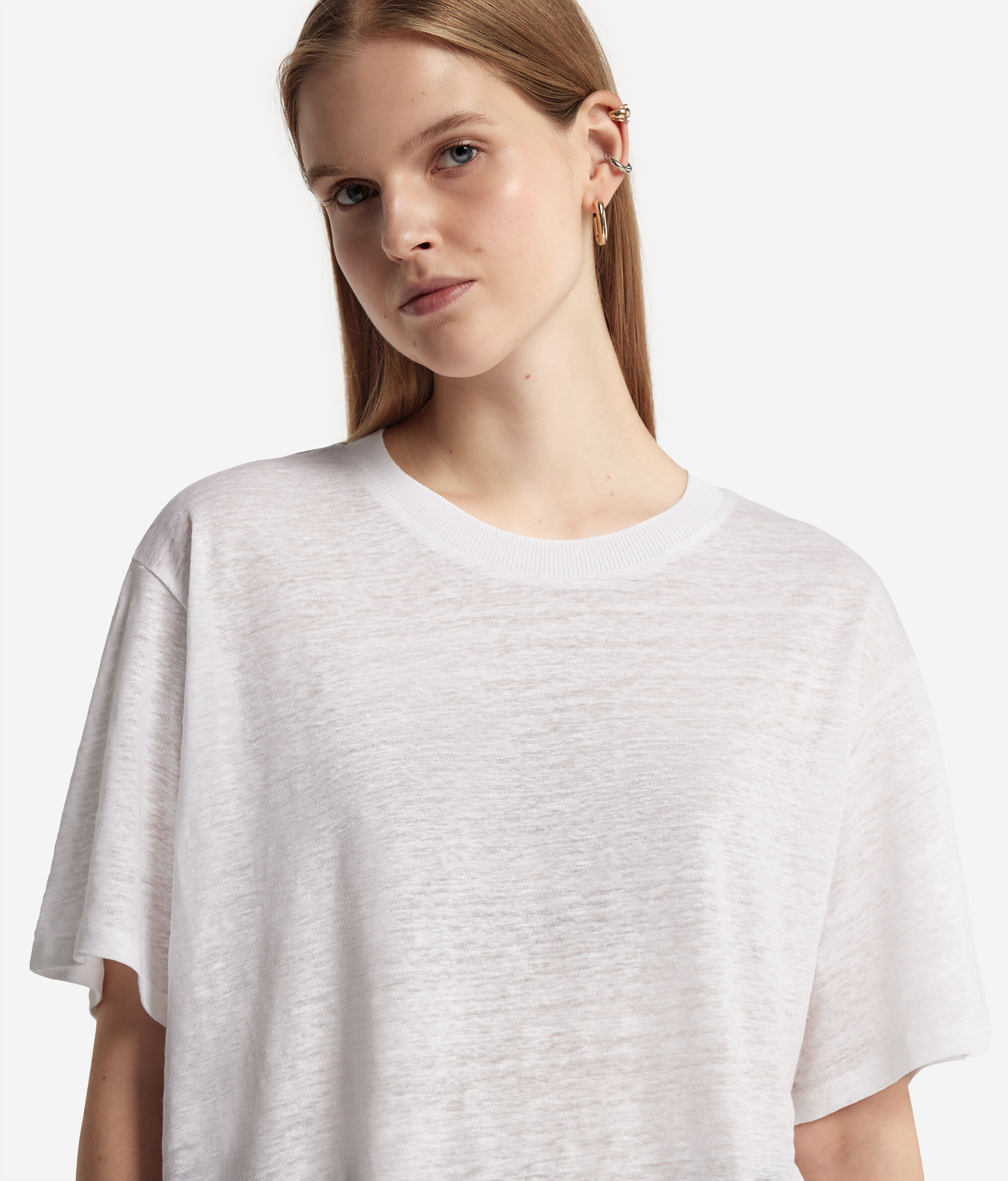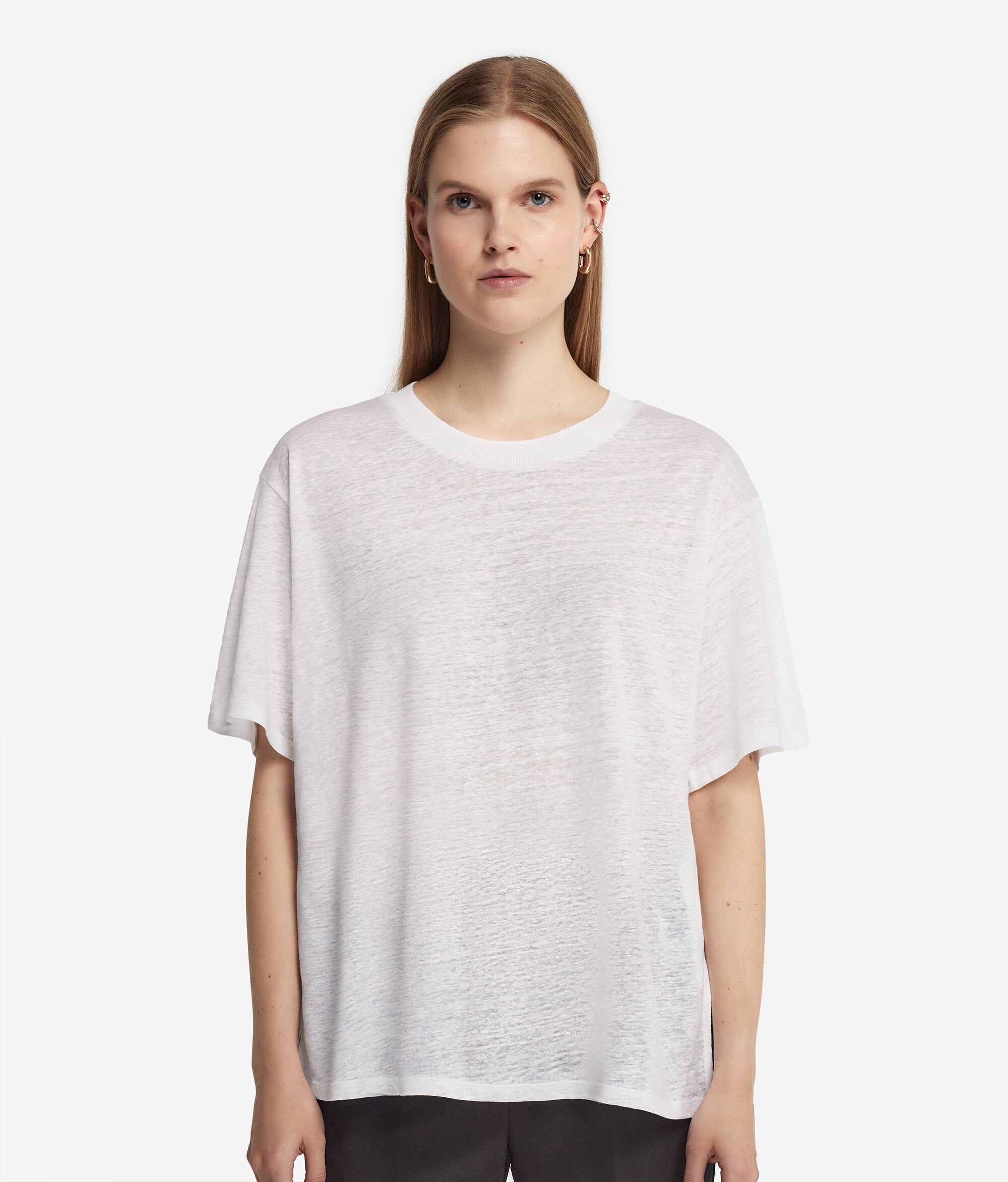 T-shirt Girocollo in Lino con Bordo in Maglia