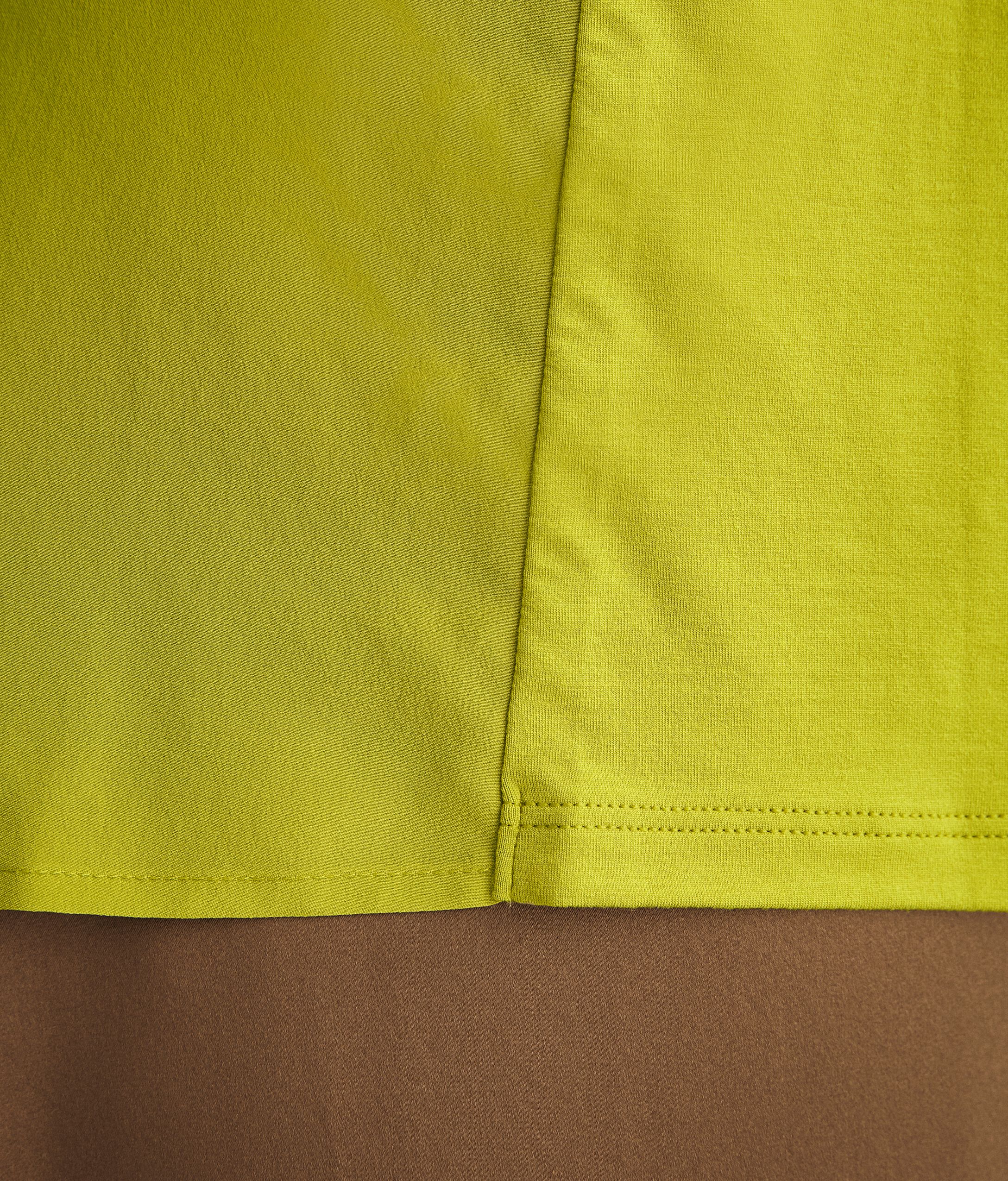 L'identità del brand prende vita dal pregio dei filati e si esprime nelle linee pulite ed armoniose della collezione in un raffinato equilibrio di fascino e stile. La texture rarefatta della pura seta crepe de chine esalta i volumi di questa camicia girocollo e fluida avvolge le forme femminili in una delicata trasparenza. Perfetta da indossare come sottogiacca.