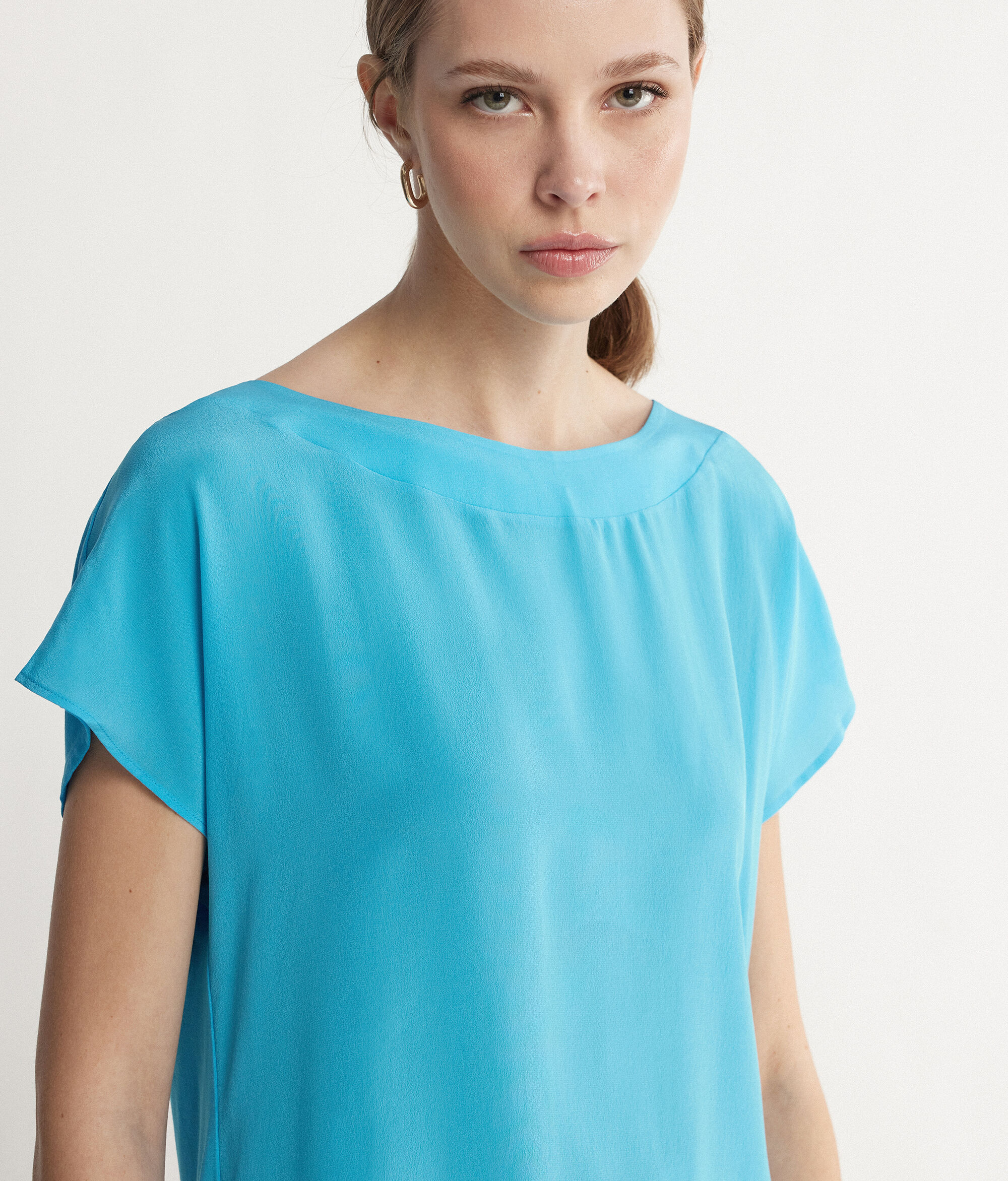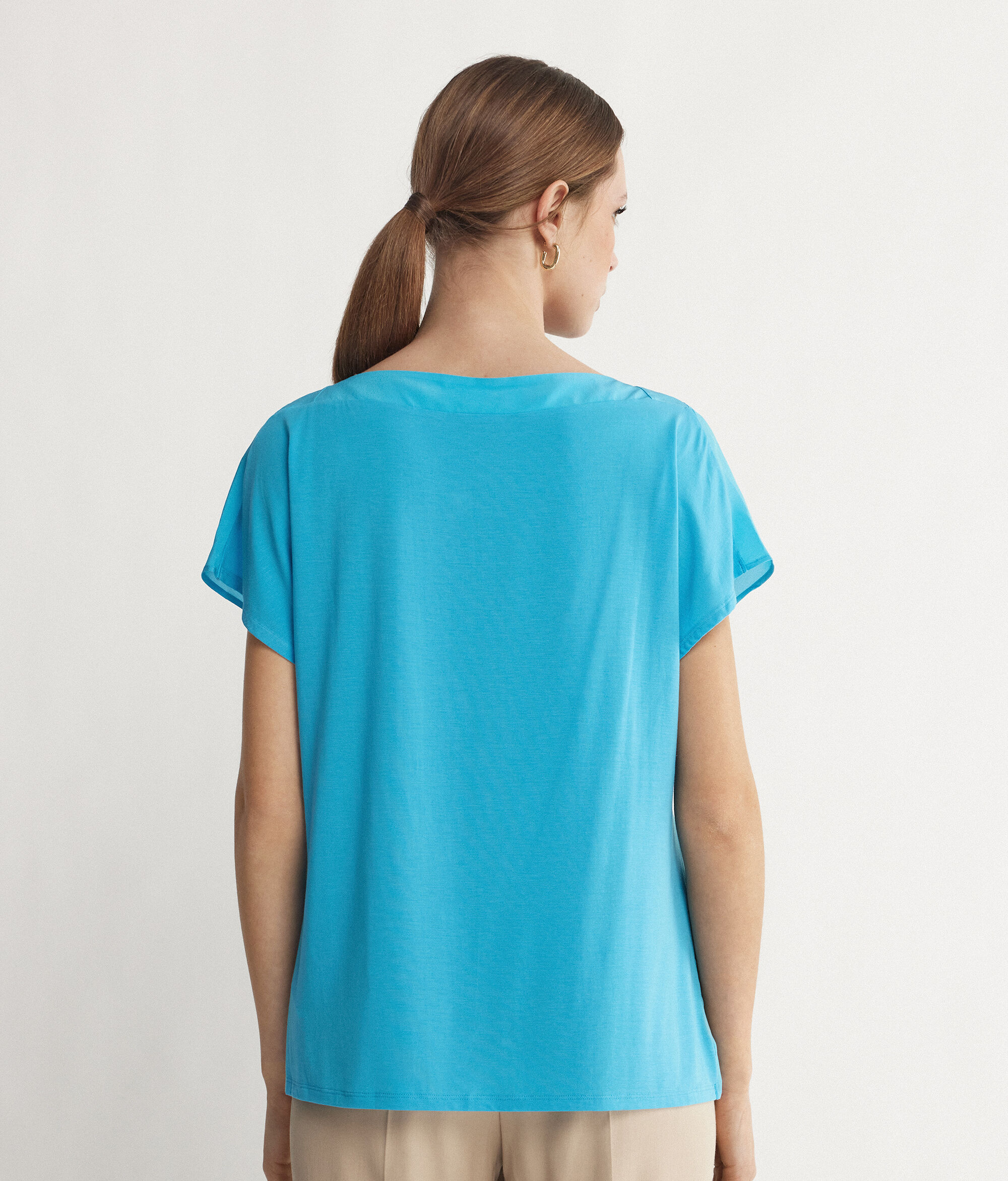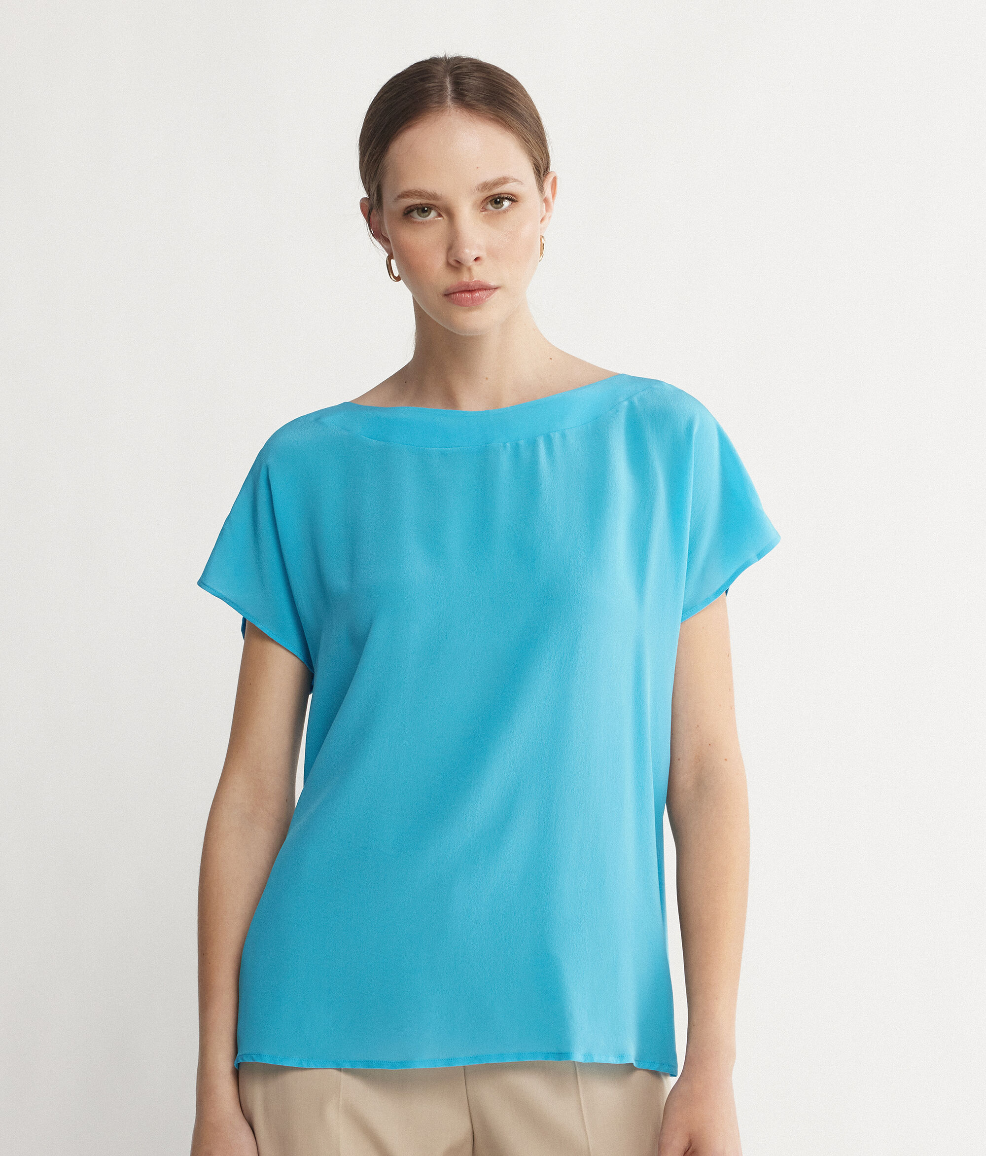 T-shirt Scollo Barchetta in Seta e Modal