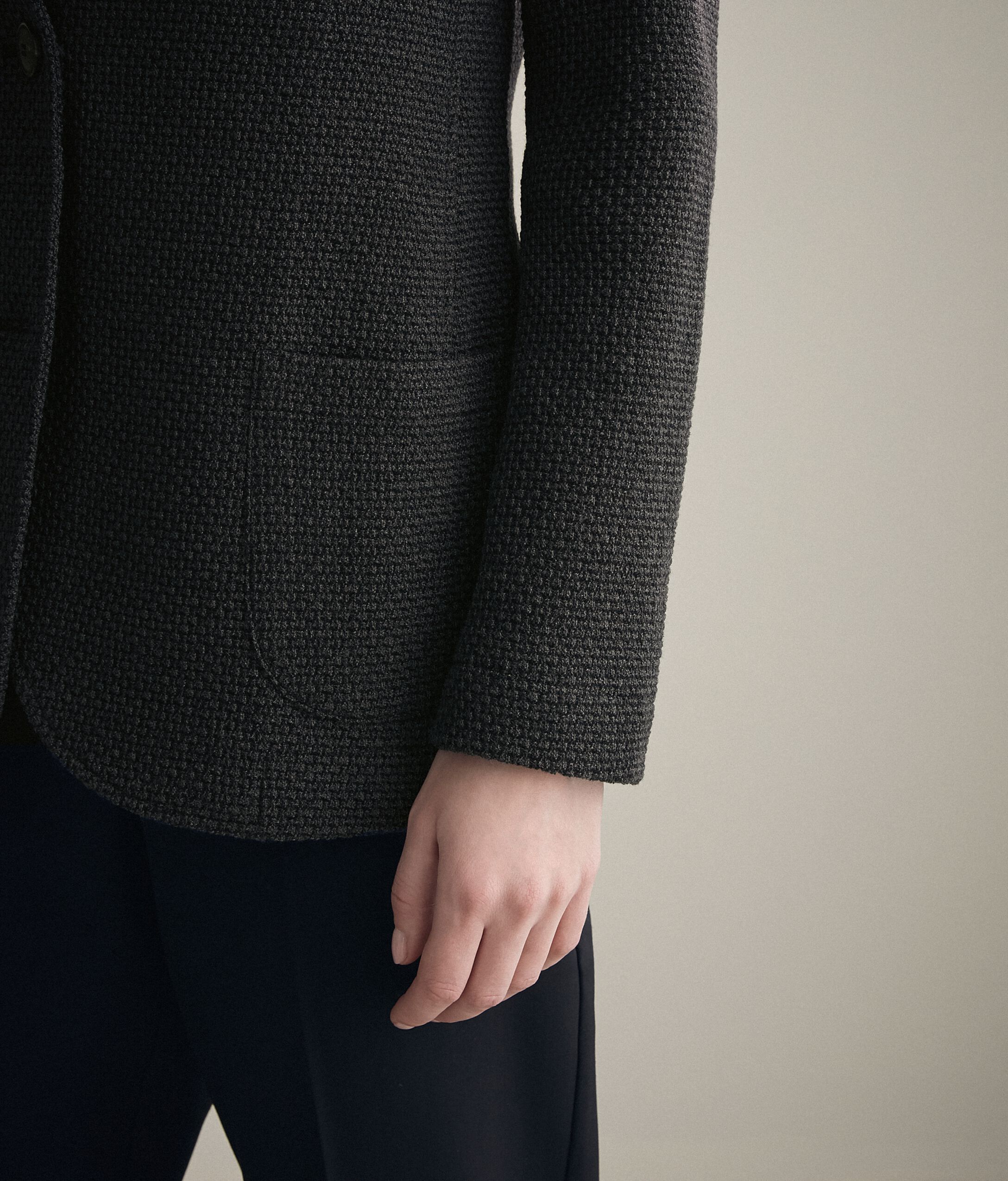 Lo stile raffinato e discreto del brand si riflette in un contesto di moderna vivacità ed evolve in forme e volumi attenti ad un'eleganza di stile maschile e versatile, senza però rinunciare al pregio dei materiali. Per questa giacca tridimensionale, Falconeri disegna una linea contemporanea lontana dagli eccessi, che rispecchia una donna dinamica ed autentica.