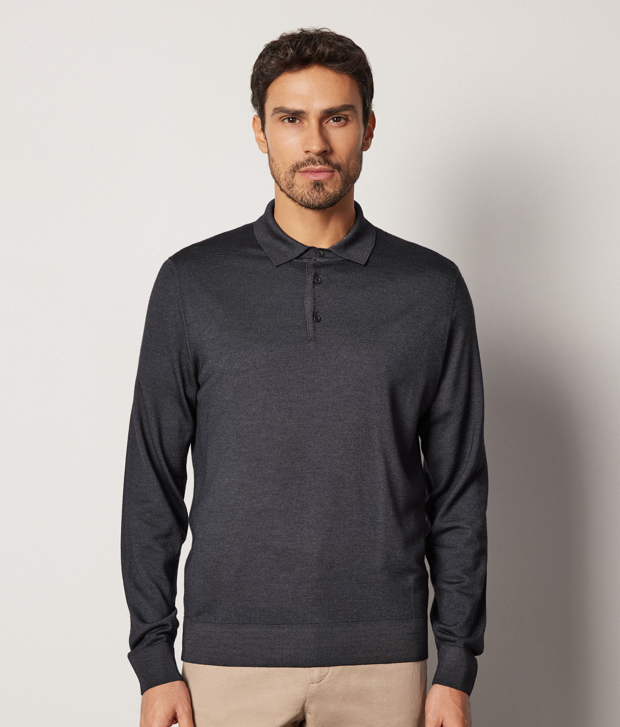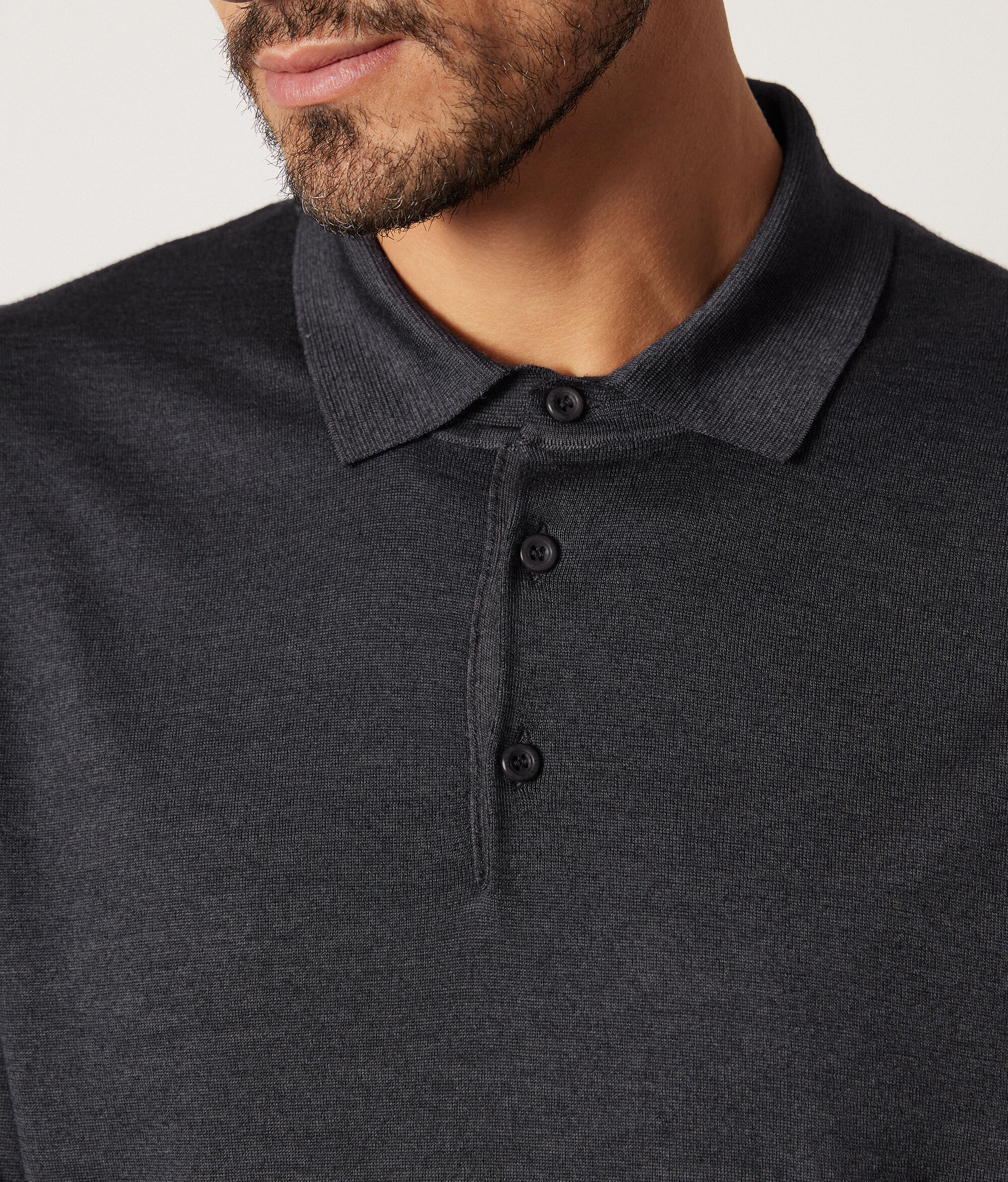 L'iconico filato Cashmere Ultrafine arricchisce il gusto classico della nuova polo a maniche lunghe. La leggerezza del filo e la cura dei dettagli caratterizzano lo stile del capo. È perfetta per essere indossata come sottogiacca per un look tradizionale o abbinata ad una t-shirt per un outfit più casual.