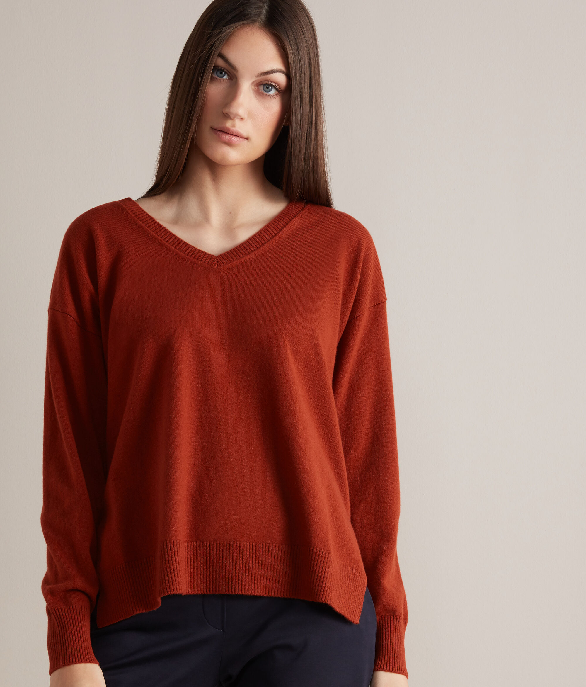 Maglia Scollo V in Cashmere Ultrasoft con Spacchi