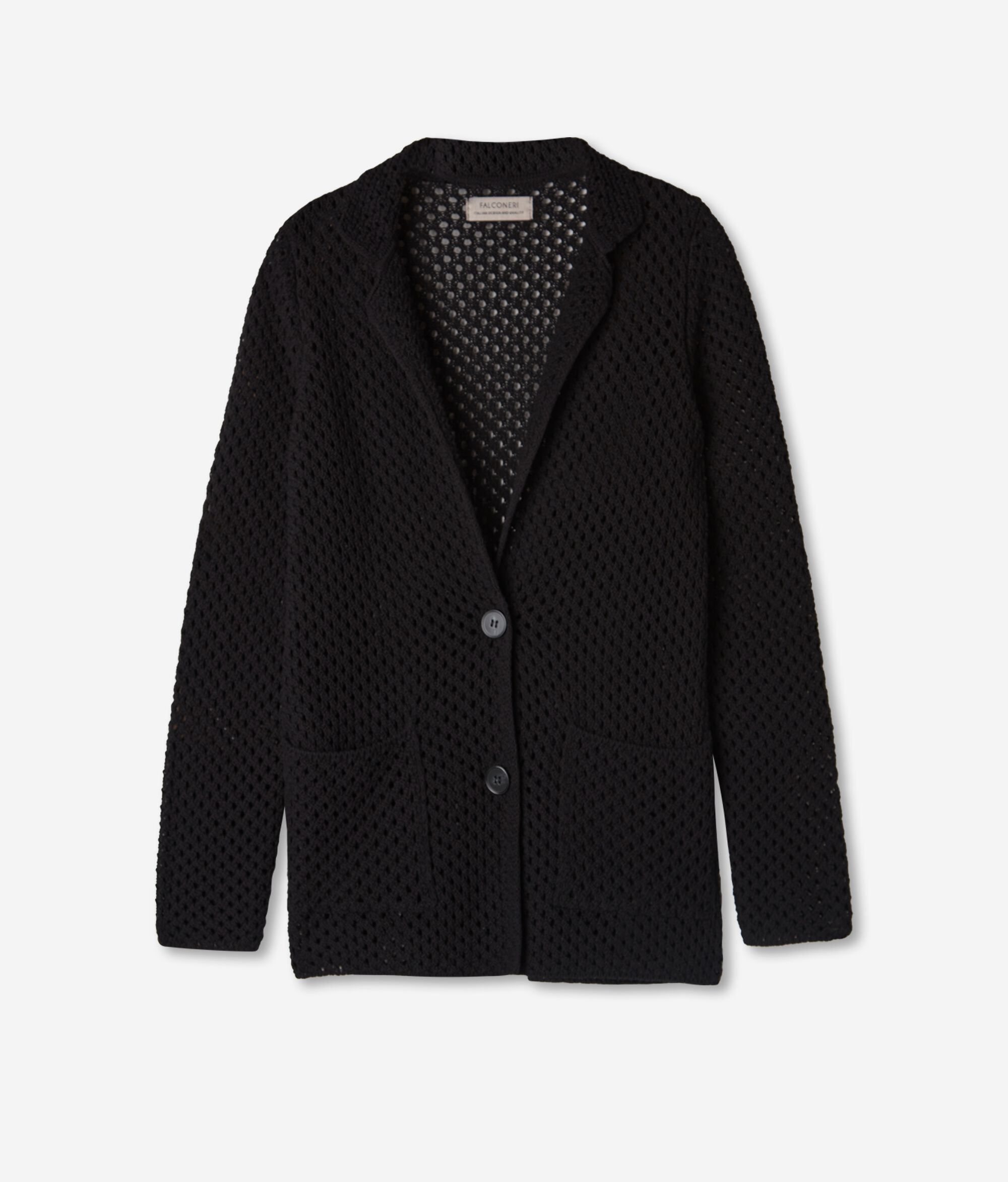 Il continuo studio di tessuti e forme rende Falconeri un brand inconfondibile e permette la realizzazione di giacche facili da indossare, ma uniche nel suo genere. La silhouette raffinata ed essenziale di questa giacca in maglia di cotone a punto traforato esalta la naturalezza del tessuto dall'aspetto lievemente irregolare e dà vita ad una texture croccante e fresca esaltando uno stile raffinato e moderno.