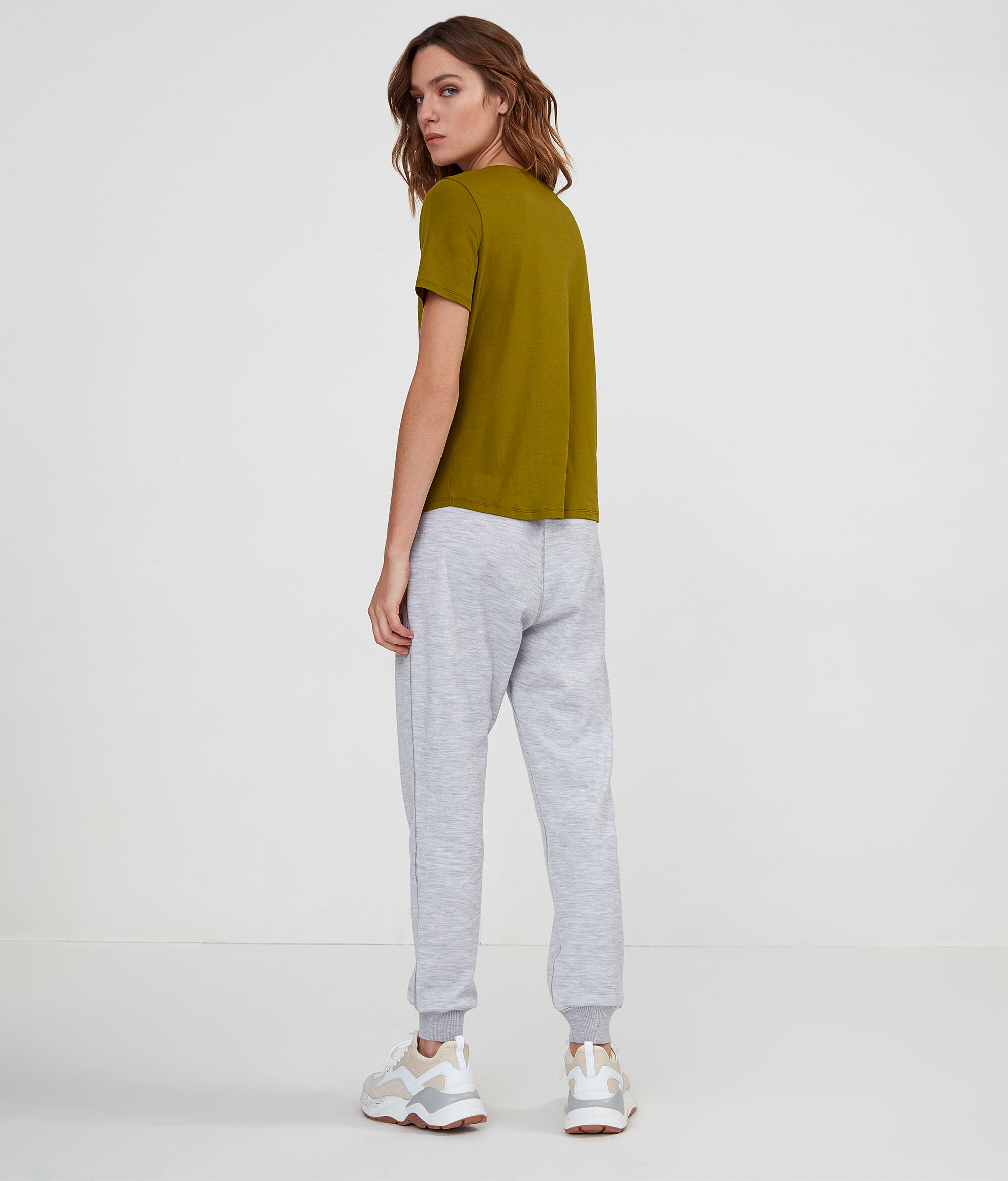 T-Shirt em algodão com decote em V e meia manga.Caracteriza-se por um cós levemente arredondado e ombros descaídos.Peça versátil. Corte regular.