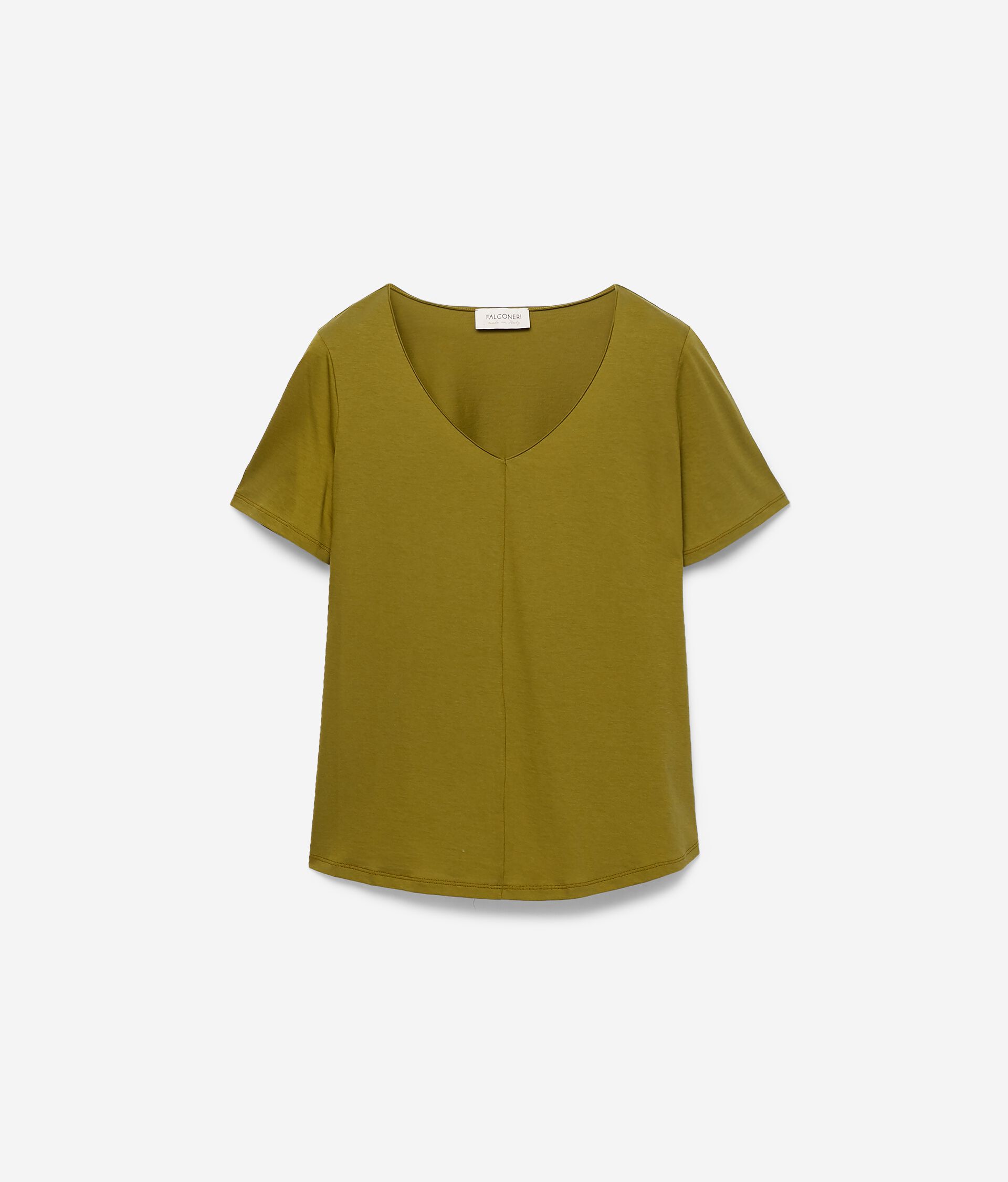 T-Shirt Decote em V em Algodão