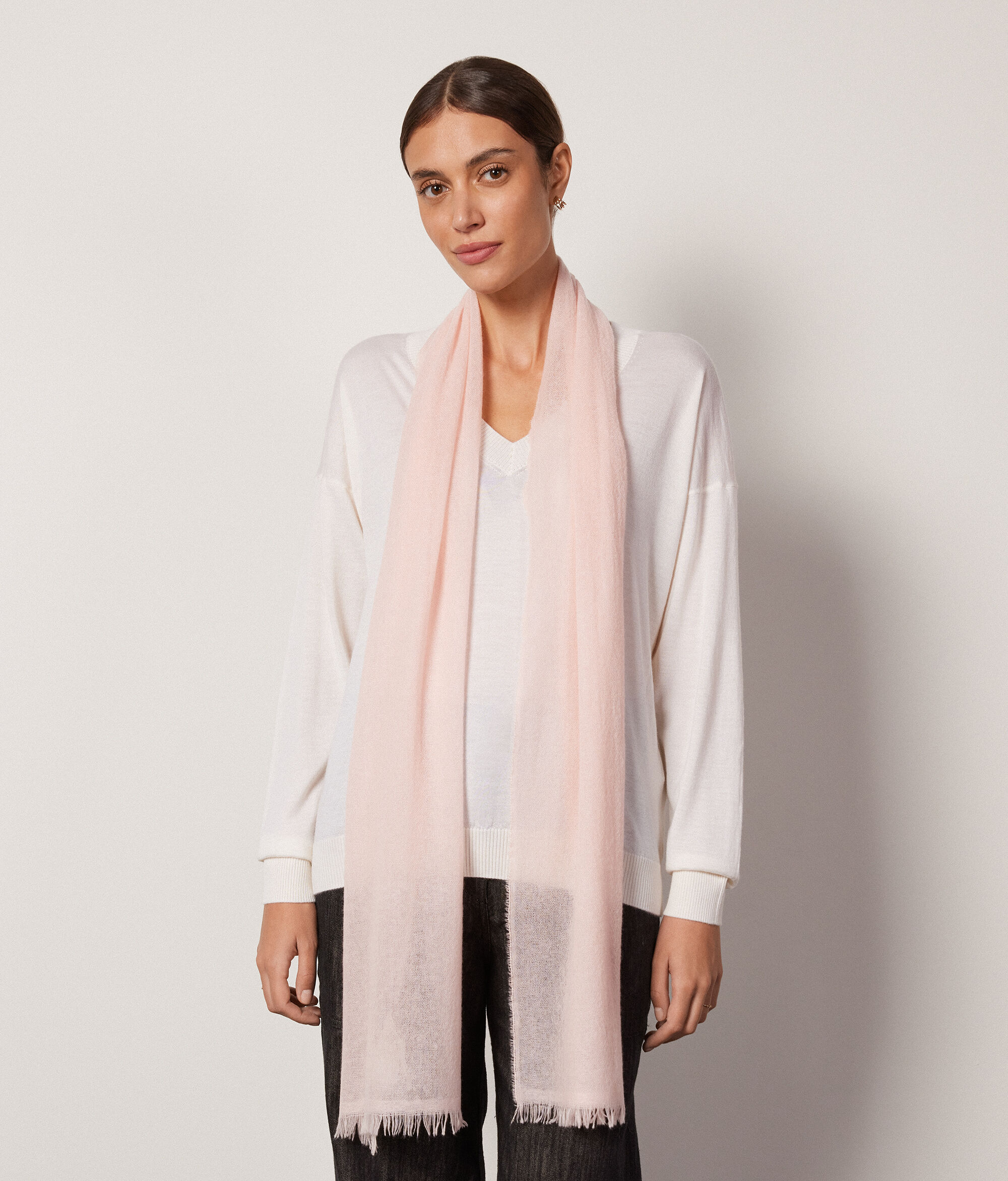 Realizată în întregime din cașmir, călduroasă și confortabilă, această eșarfă este perfectă pentru fi asortată cu hainele de exterior ale colecției.