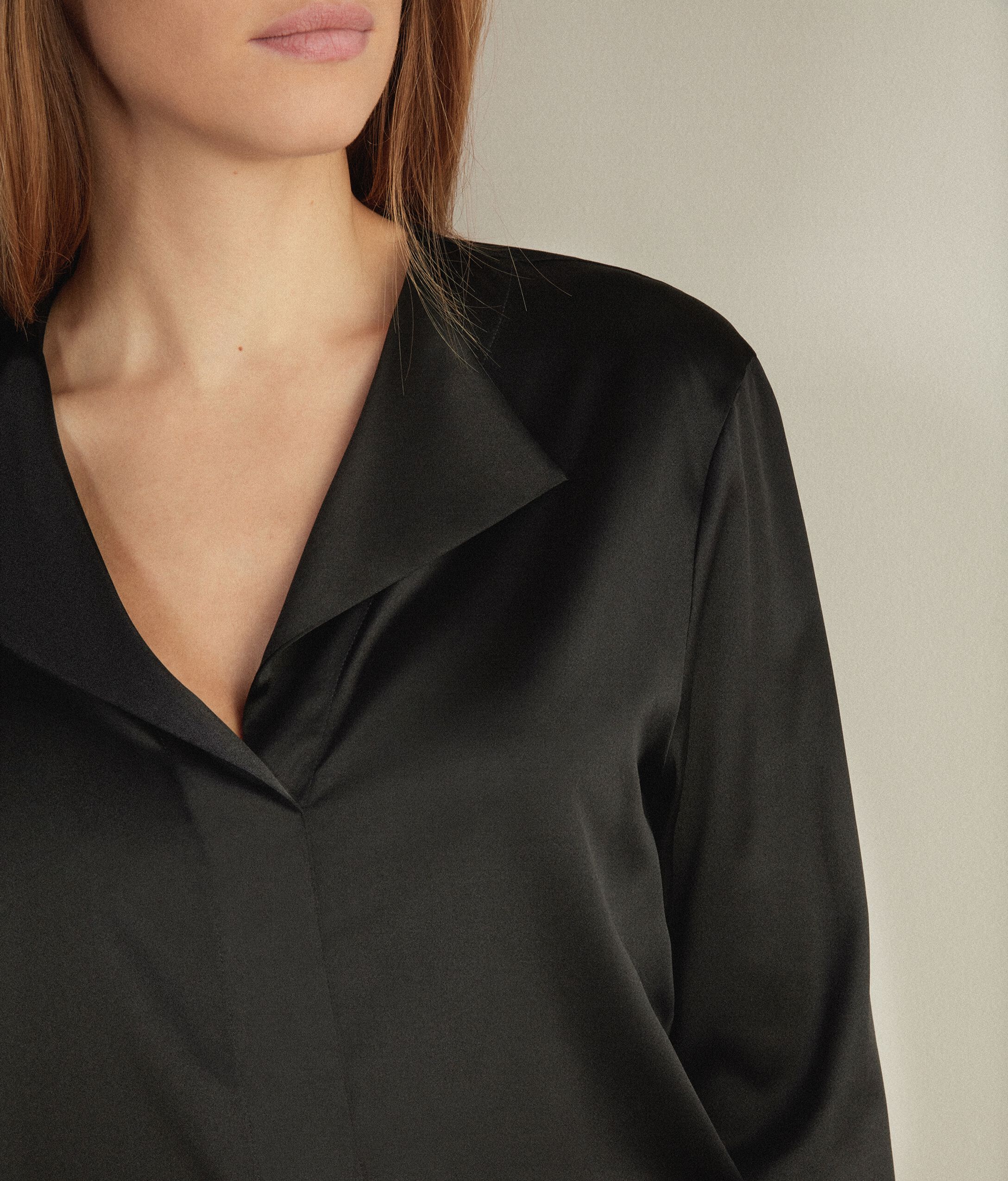 The luxurious, flowing silk construction enhances the understated silhouette of Falconeri’s new blouse, an essential addition to women’s wardrobes.
