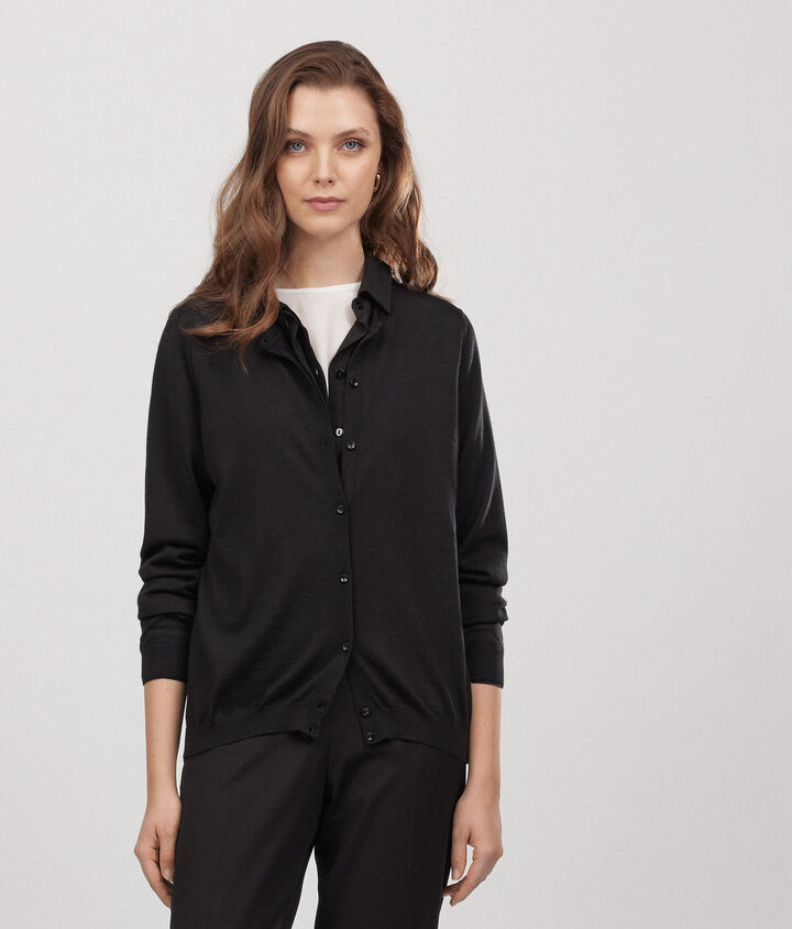 Round-Neck Ultrafine Cashmere Cardigan198,00 €Select your colourBlackWhiteDark Grey Melange+ 4Selected color: Black