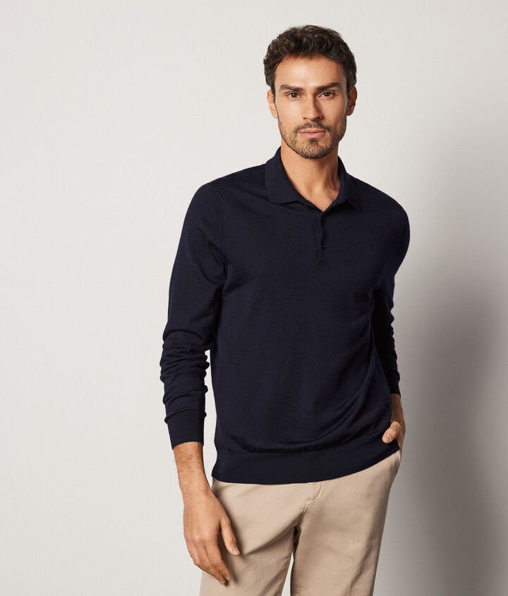 Ultrafine Cashmere Polo Shirt198,00 €Select your colourNavy BlueSand Garment-DyedDark Army Garment-Dyed+ 1Selected color: Navy Blue