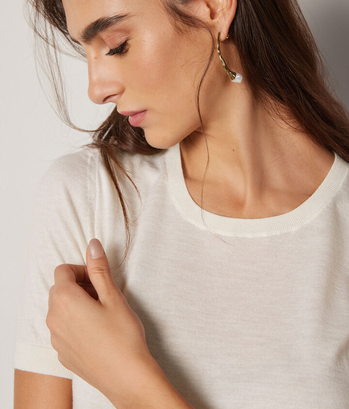 Short-Sleeved Round-Neck Ultrafine Cashmere Top188,00 €Select your colourWhiteGarment-Dyed Light RumDark Grey Melange+ 5Selected color: White