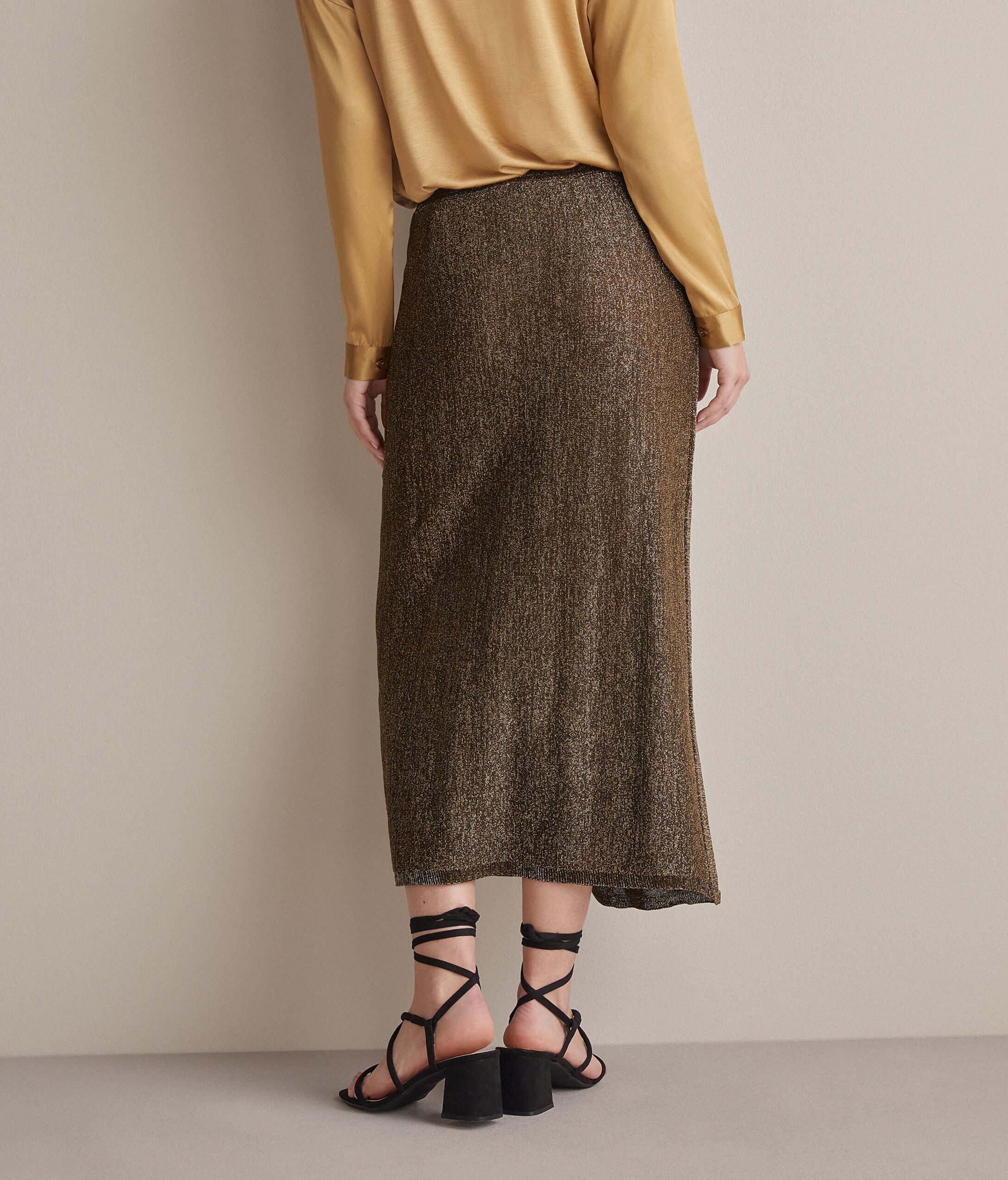 Attention to detail and harmonious shapes are what make this wrap skirt so elegant. It is perfect for creating a classic, feminine look. The shiny viscose thread illuminates the skirt's texture and brings a glamorous touch to its style. Slim fit. Calf-length.
