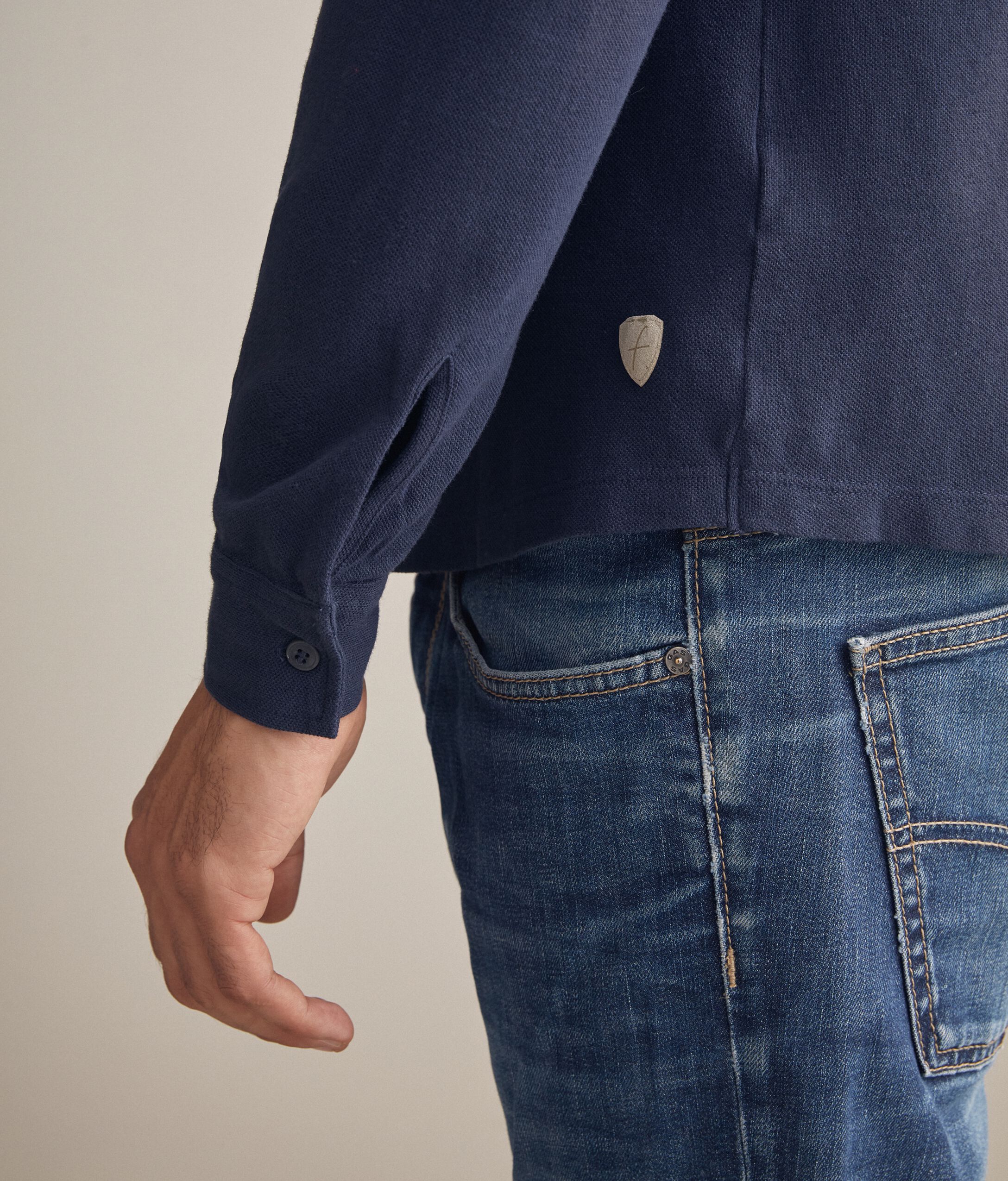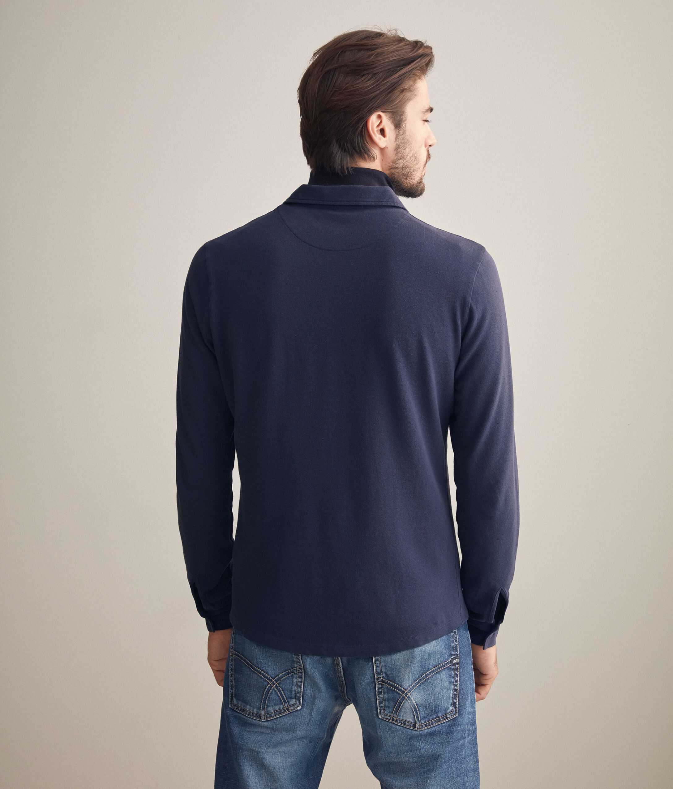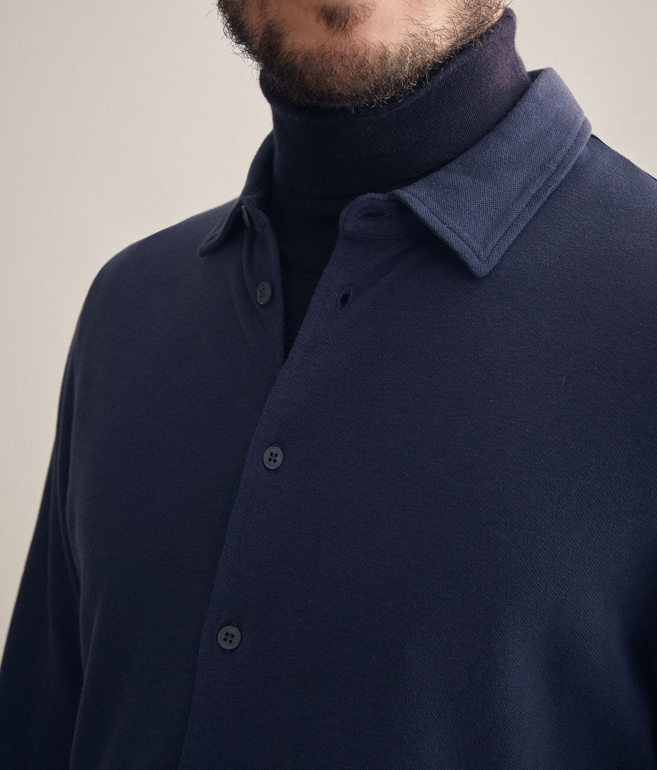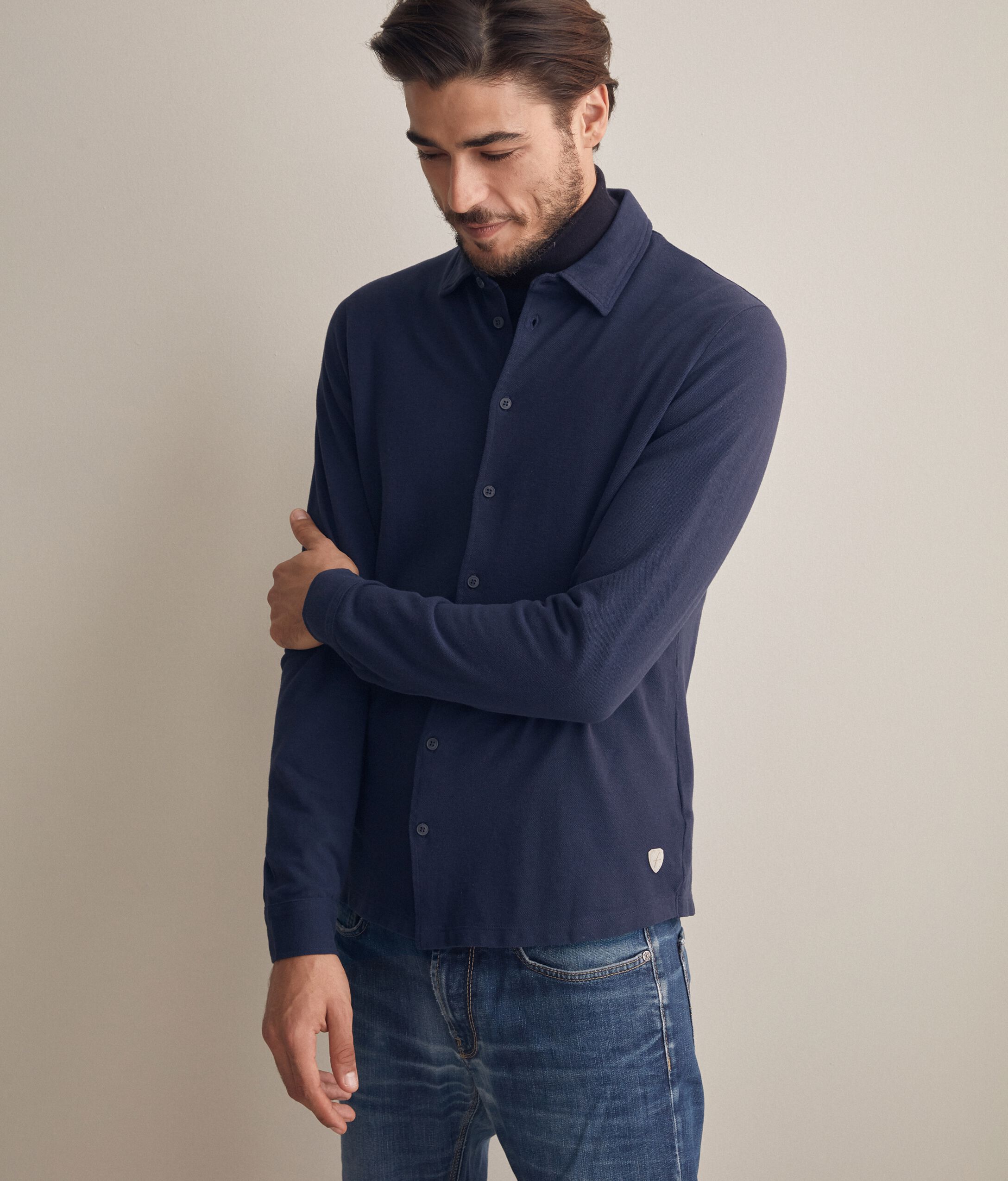 Cotton and silk piqué shirt. The piqué texture and the fine cotton and silk blend enhance the informal feel of this long-sleeved shirt. Regular fit. Model is 186cm/ 73 in tall and wears size 50 Chest: 98cm / Waist: 82cm / Hips: 99cm