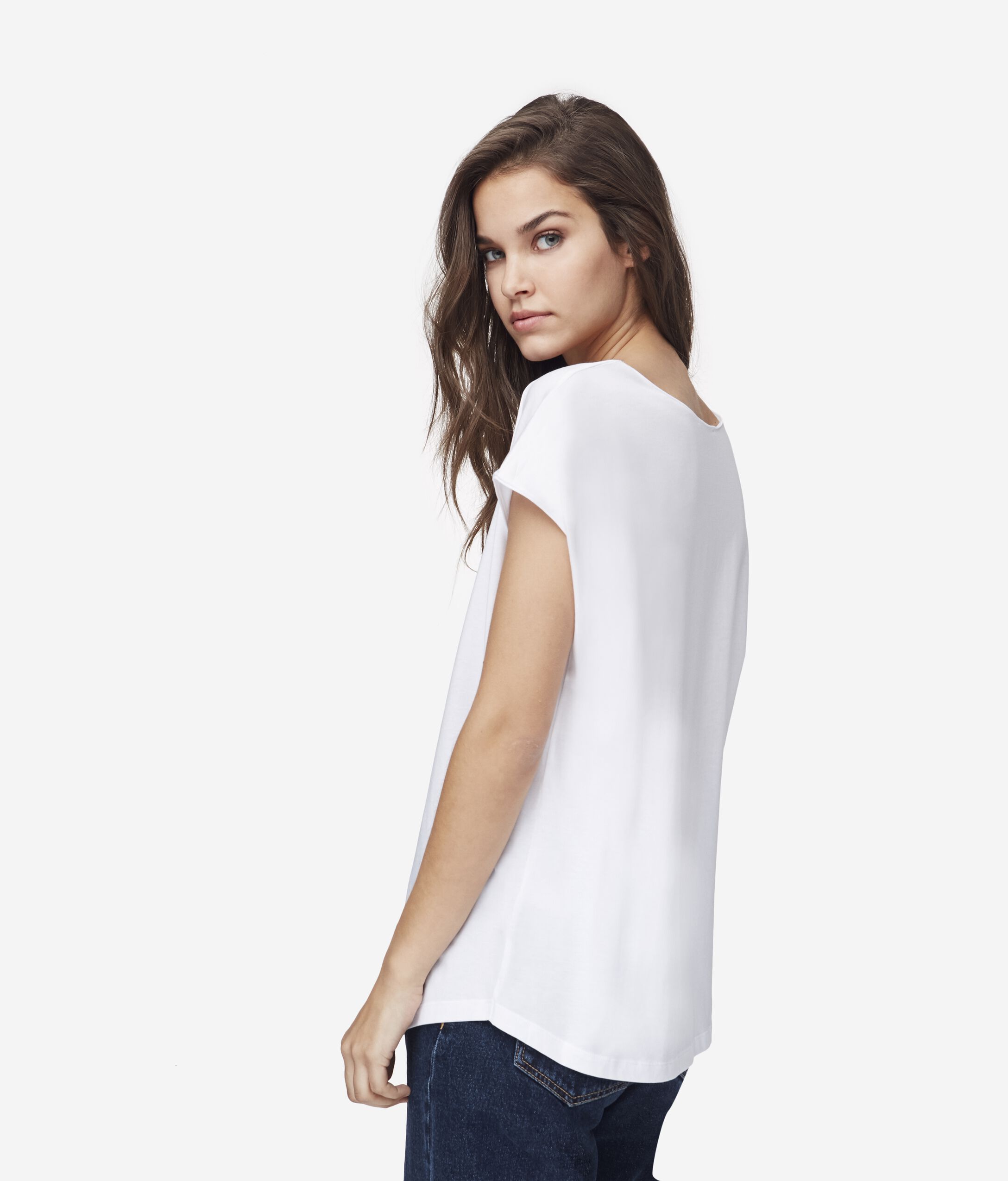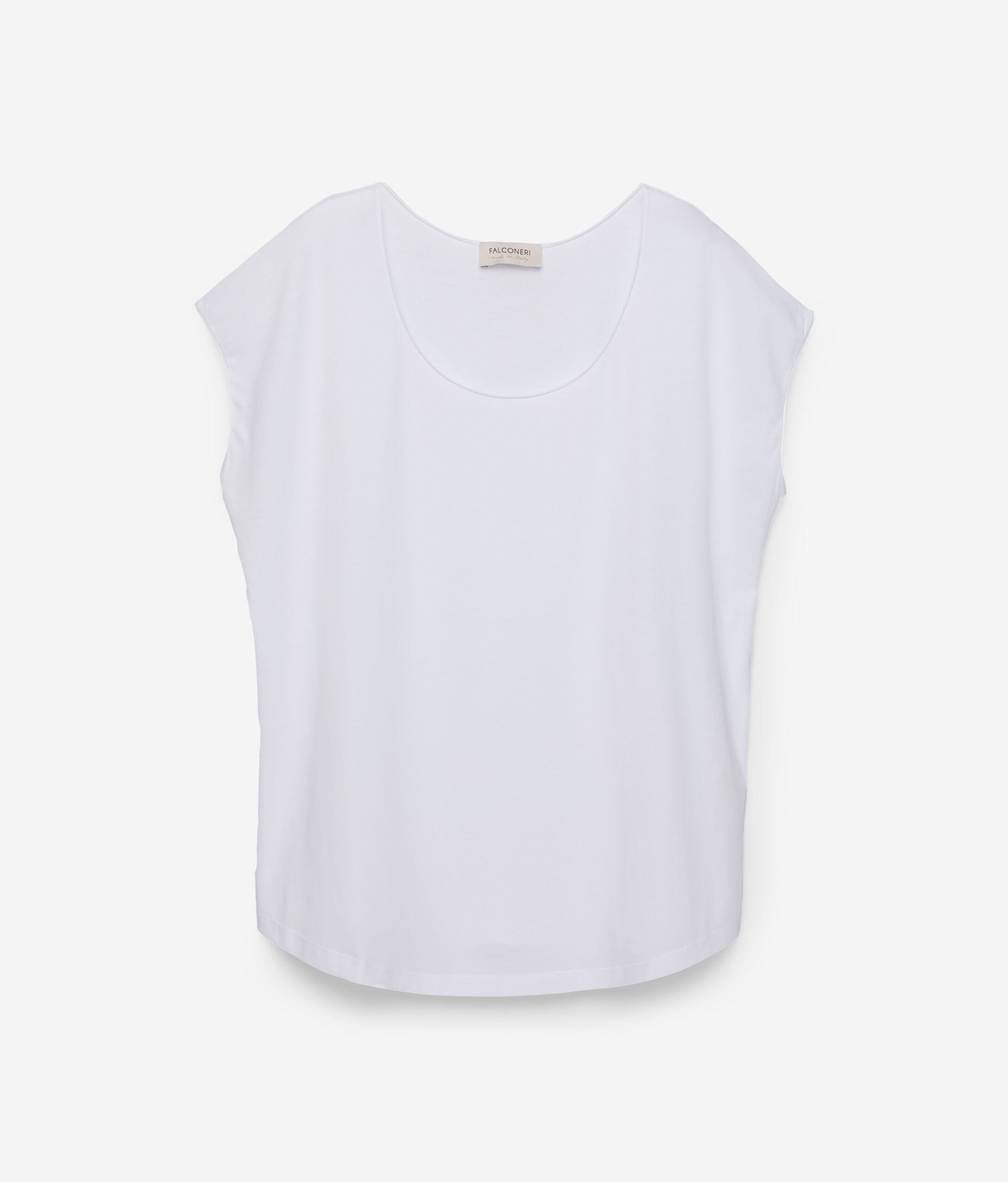 Cotton T-shirt with scoop neck and short kimono sleeves. Featuring a slightly rounded hem and dropped shoulders. Versatile piece. Relaxed fit.