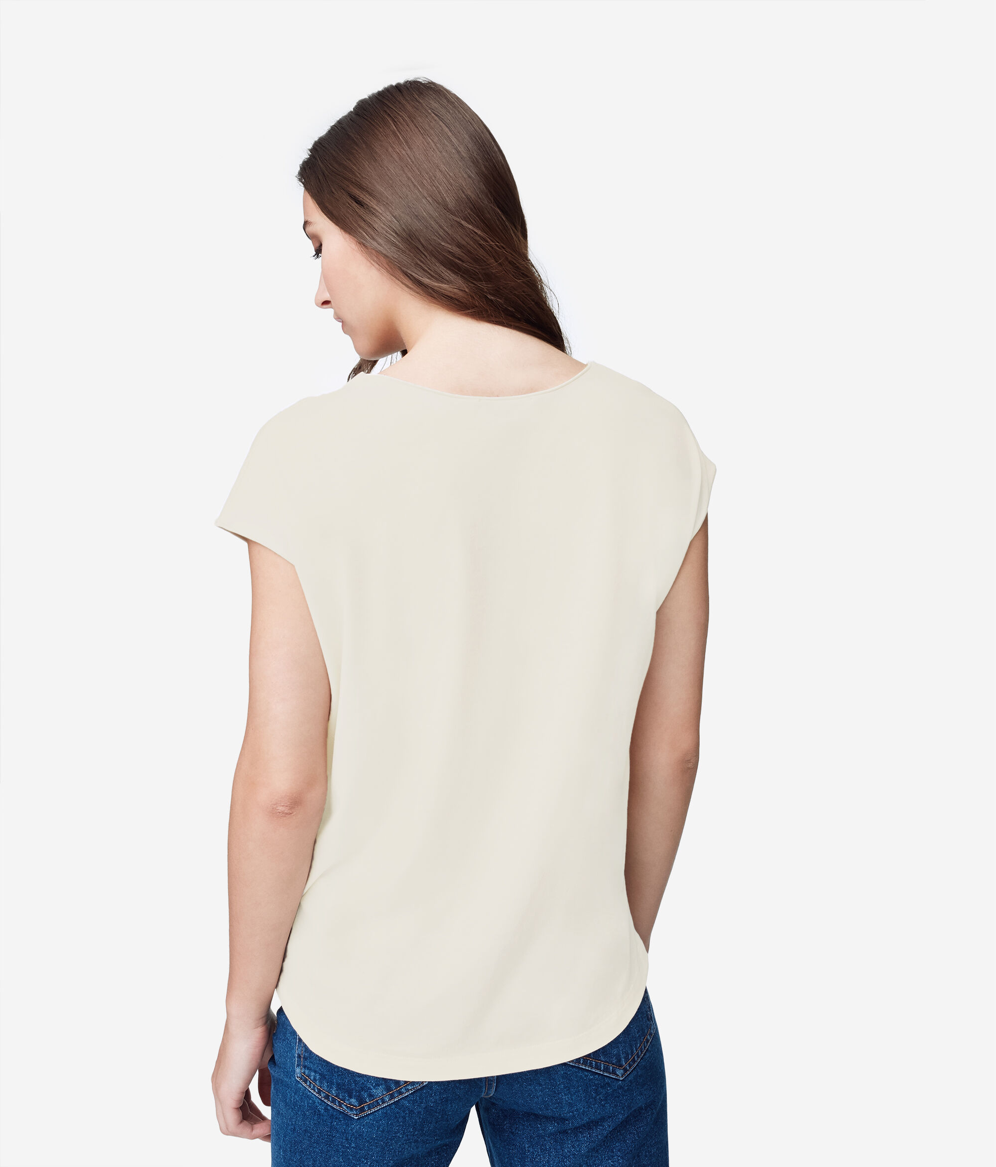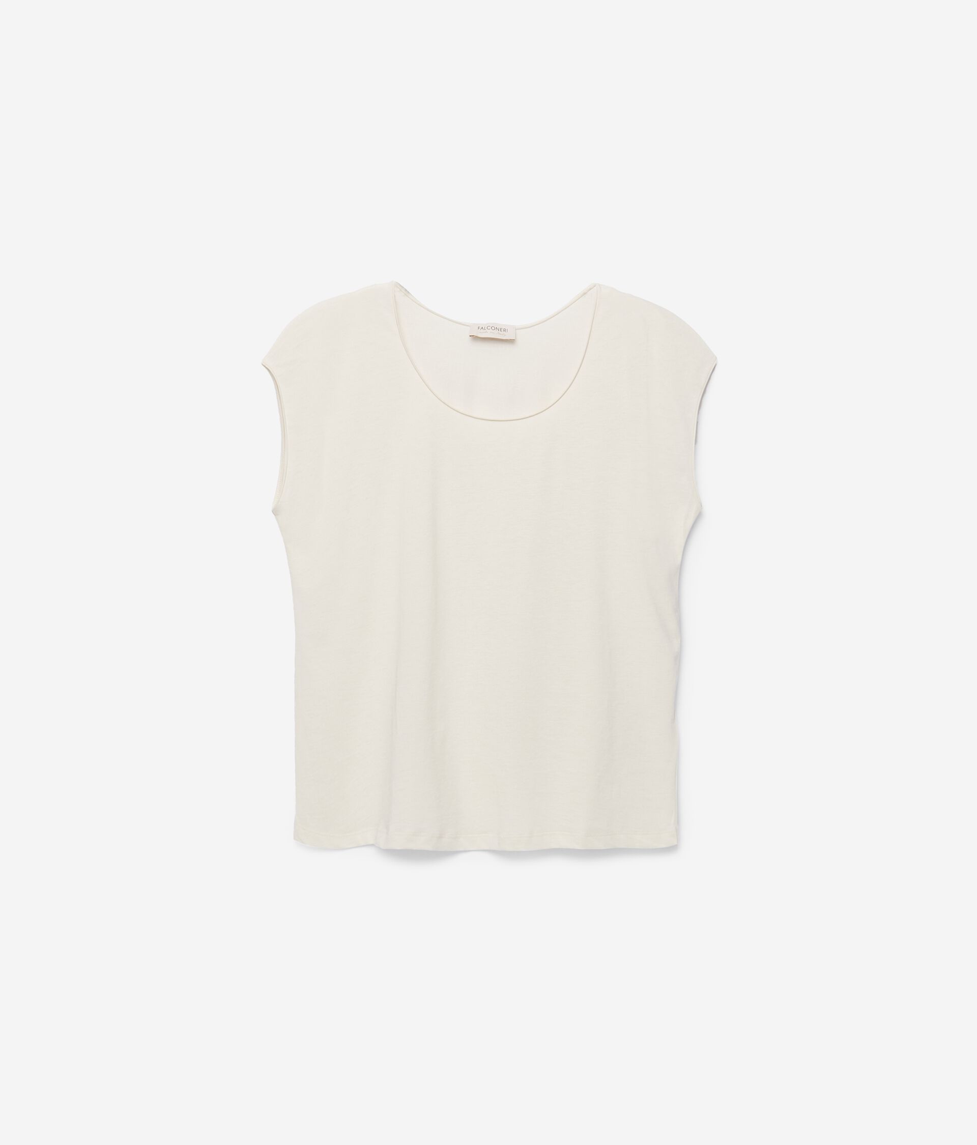 Cotton T-shirt with scoop neck and short kimono sleeves. Featuring a slightly rounded hem and dropped shoulders. Versatile piece. Relaxed fit.