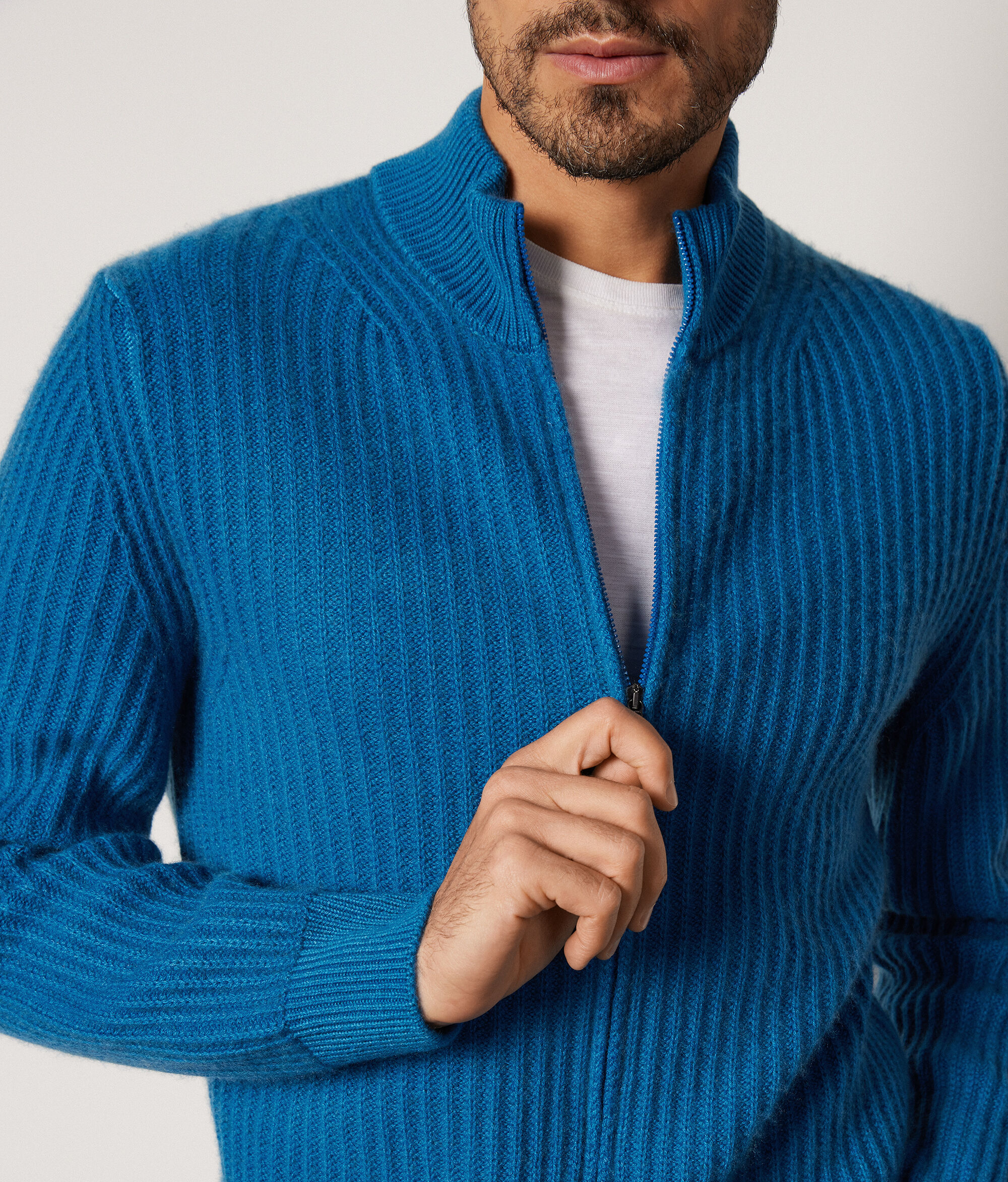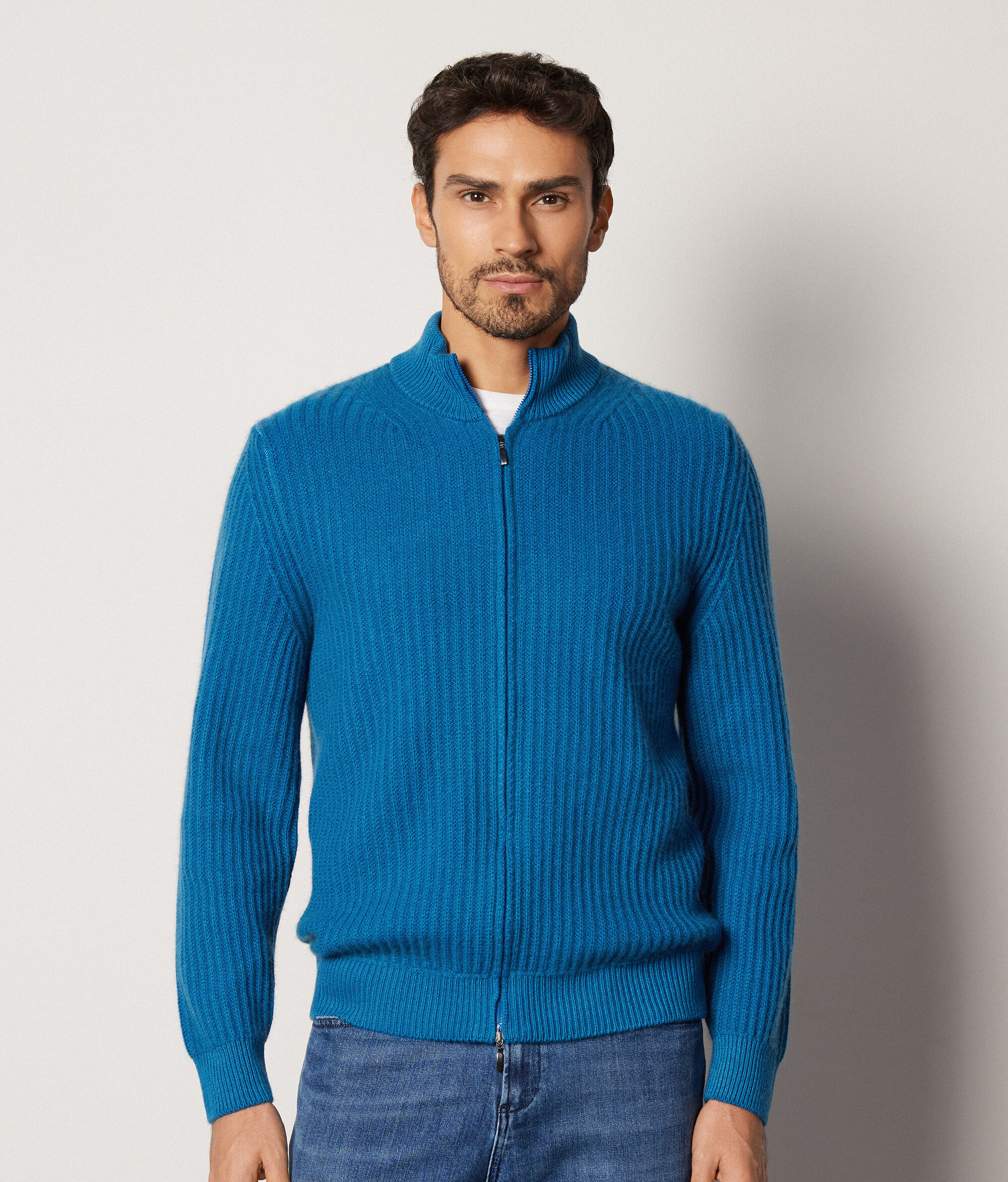 Ultrasoft cashmere enhances the informal style of this exquisite full-zip cardigan. A comfortable and luxurious garment dedicated to your comfort on days away from the office and accompanying your favourite moments with a refined yet casual look.