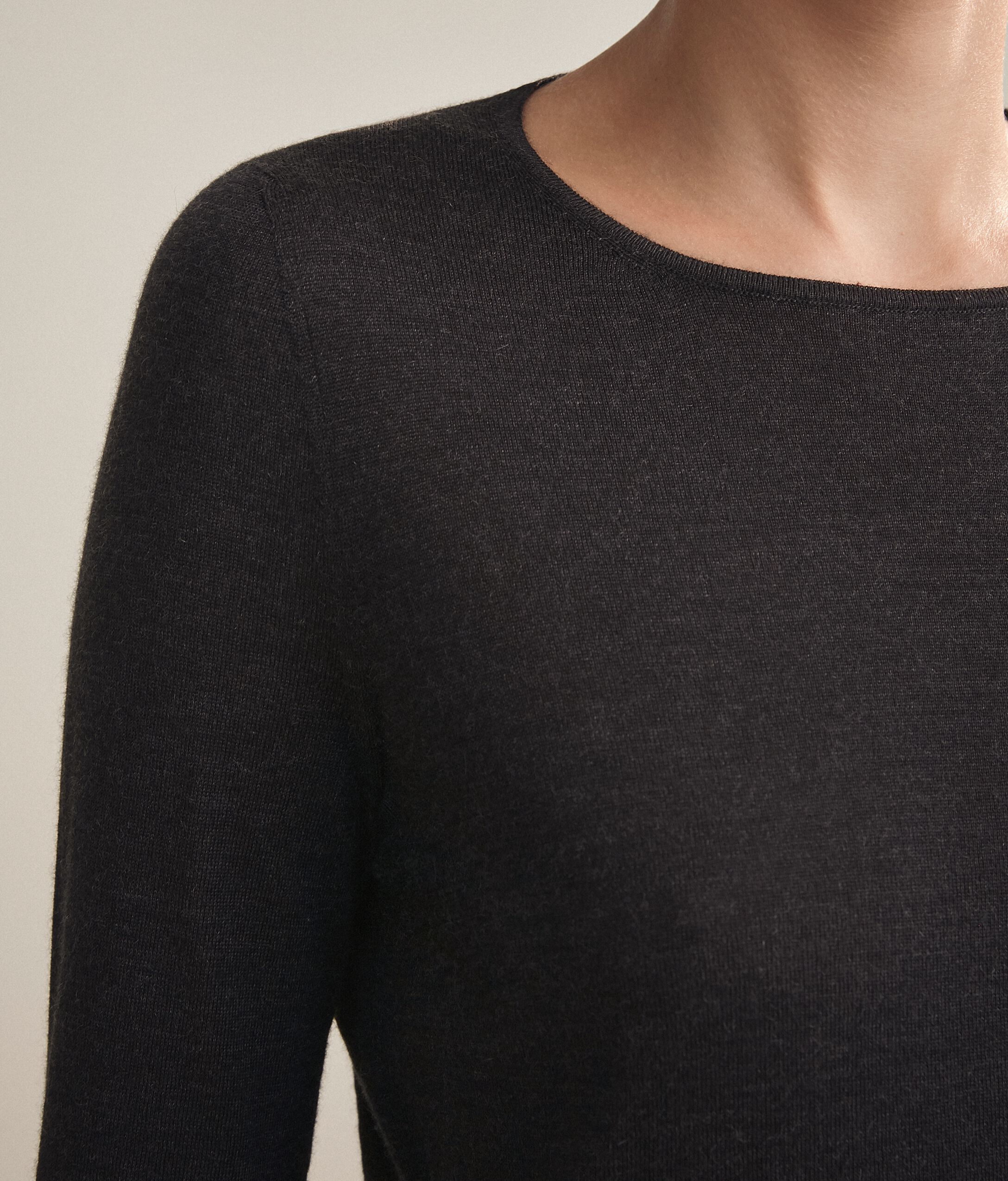 A sophisticated combination of the classic and the contemporary runs through the entire Falconeri collection. The choice of iconic yarns, such as pure Ultrafine Cashmere and balanced shapes and volumes perfectly demonstrates the brand's passion for fine materials and attention to detail. This round-neck jumper is perfect for wearing under a jacket, and is a key piece for any woman's wardrobe.