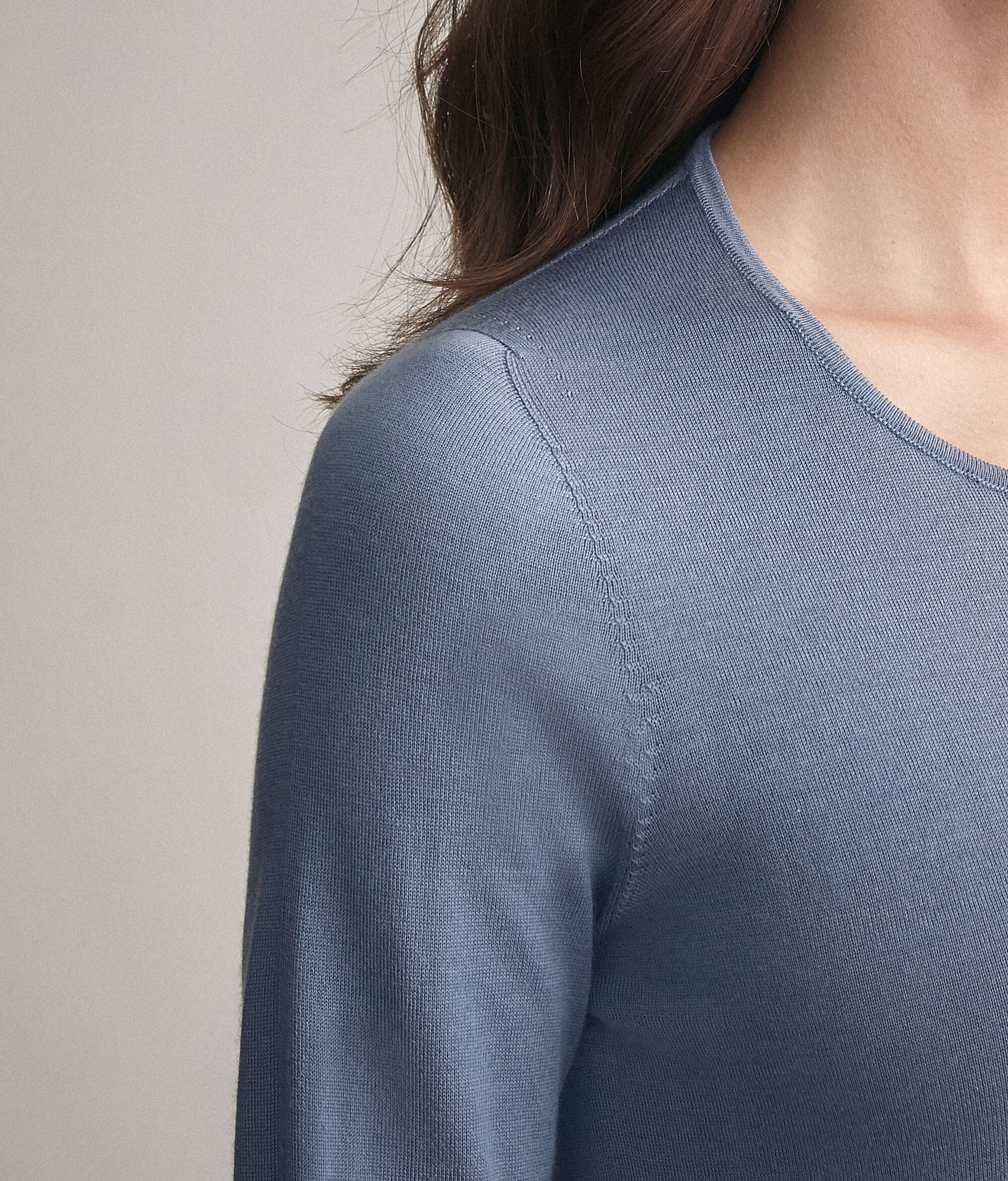 A sophisticated combination of the classic and the contemporary runs through the entire Falconeri collection. The choice of iconic yarns, such as pure Ultrafine Cashmere and balanced shapes and volumes perfectly demonstrates the brand's passion for fine materials and attention to detail. This round-neck jumper is perfect for wearing under a jacket, and is a key piece for any woman's wardrobe.
