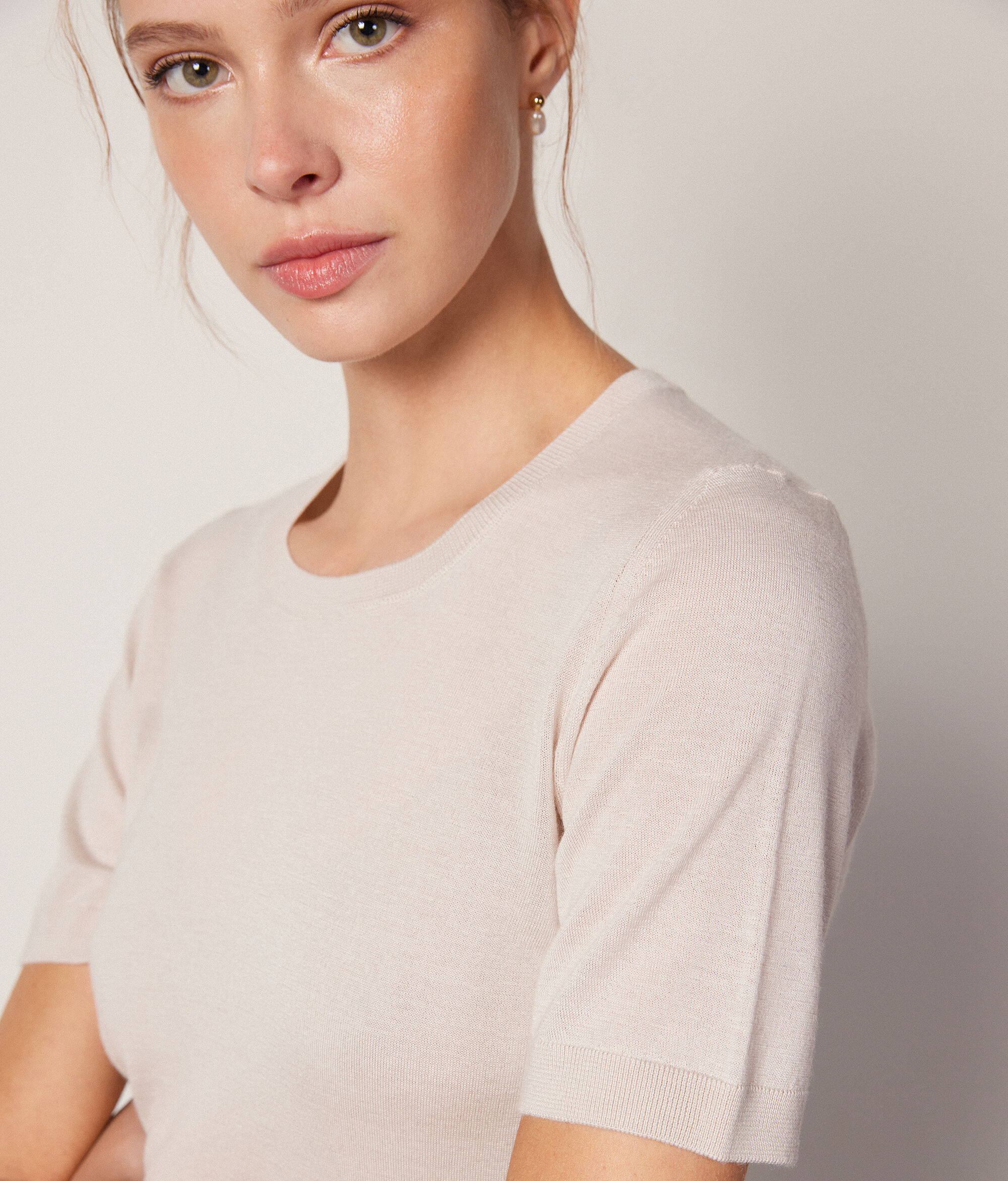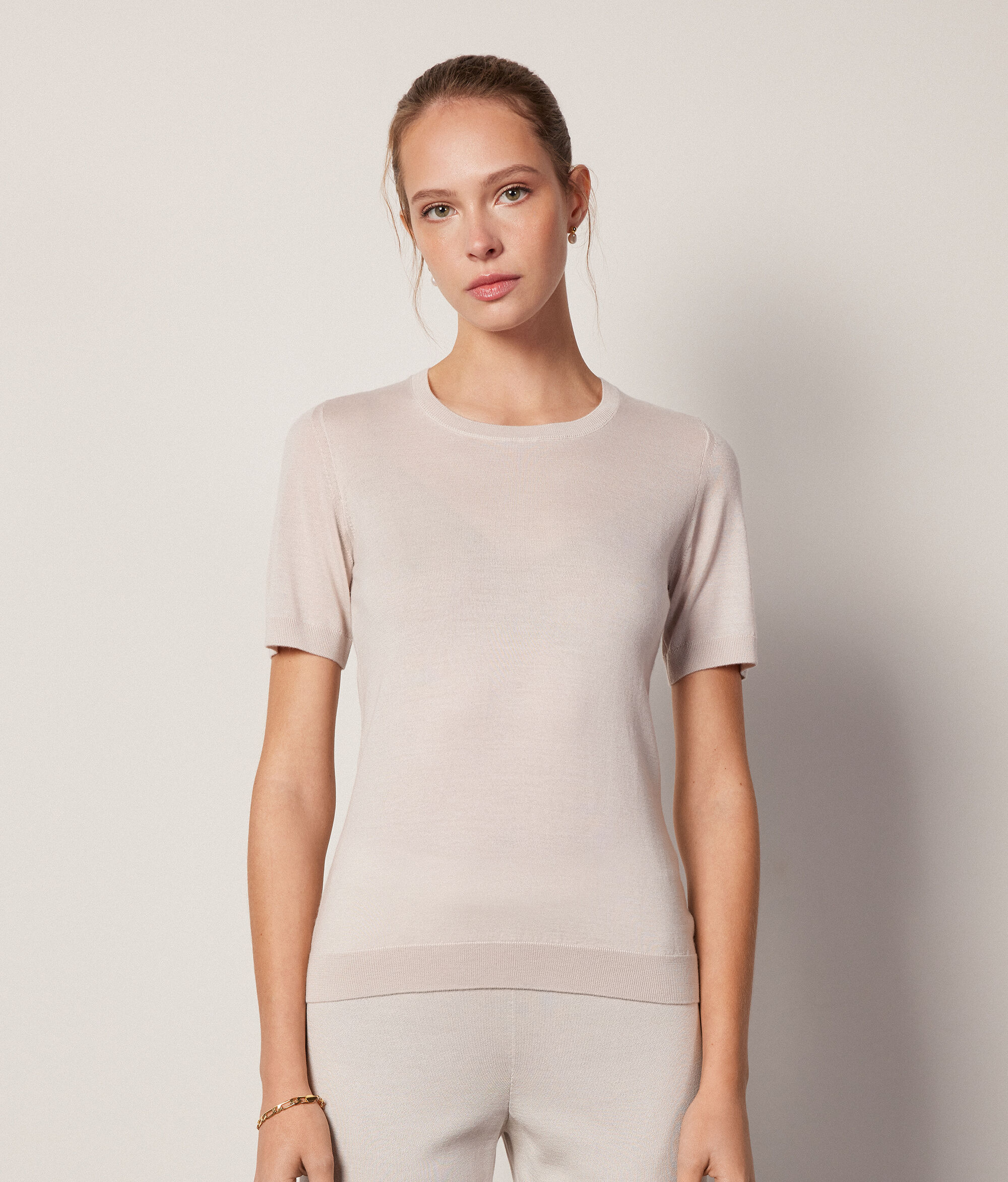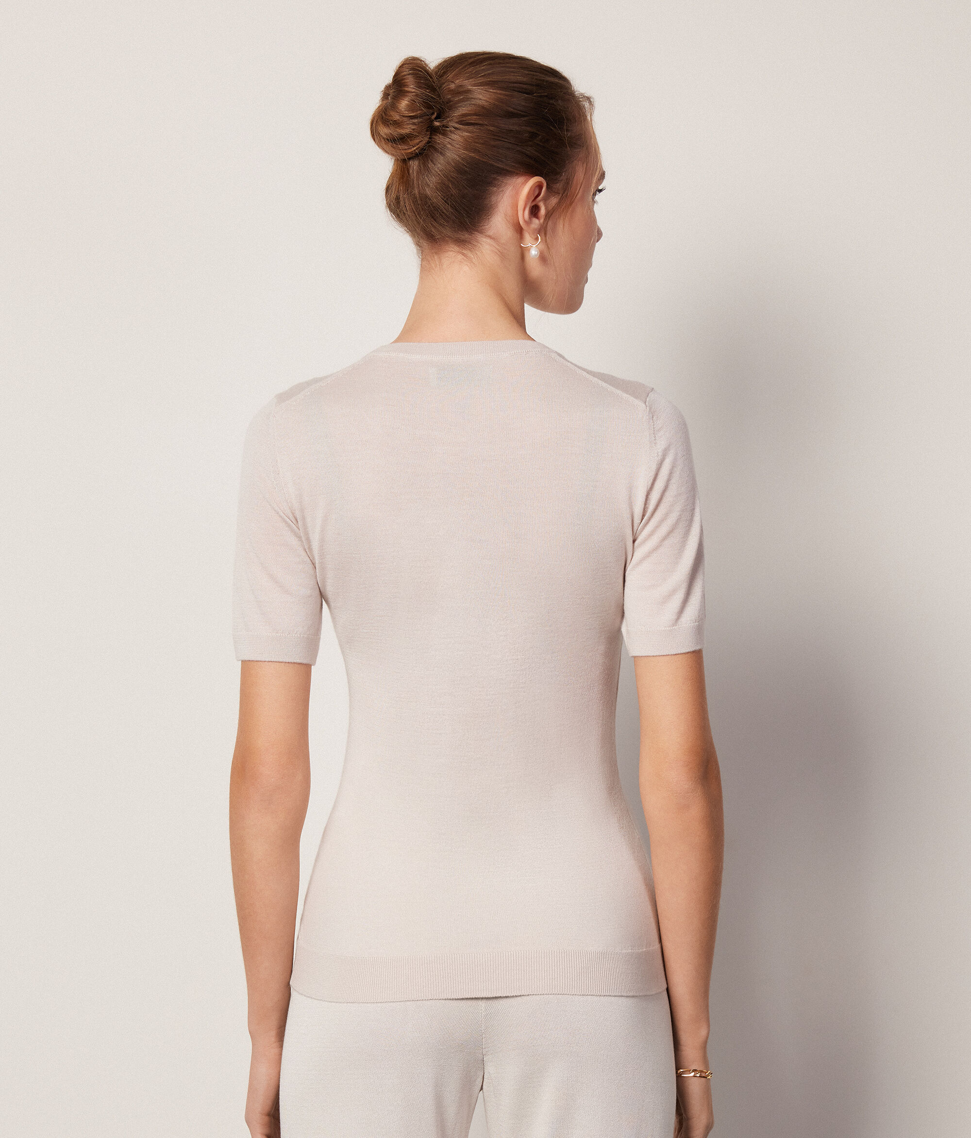 The short-sleeved Ultrafine Cashmere top from Falconeri is perfect for anyone who loves simple style and clean lines. This round-neck top is perfect for wearing under a jacket, and is a key piece for any woman's wardrobe.