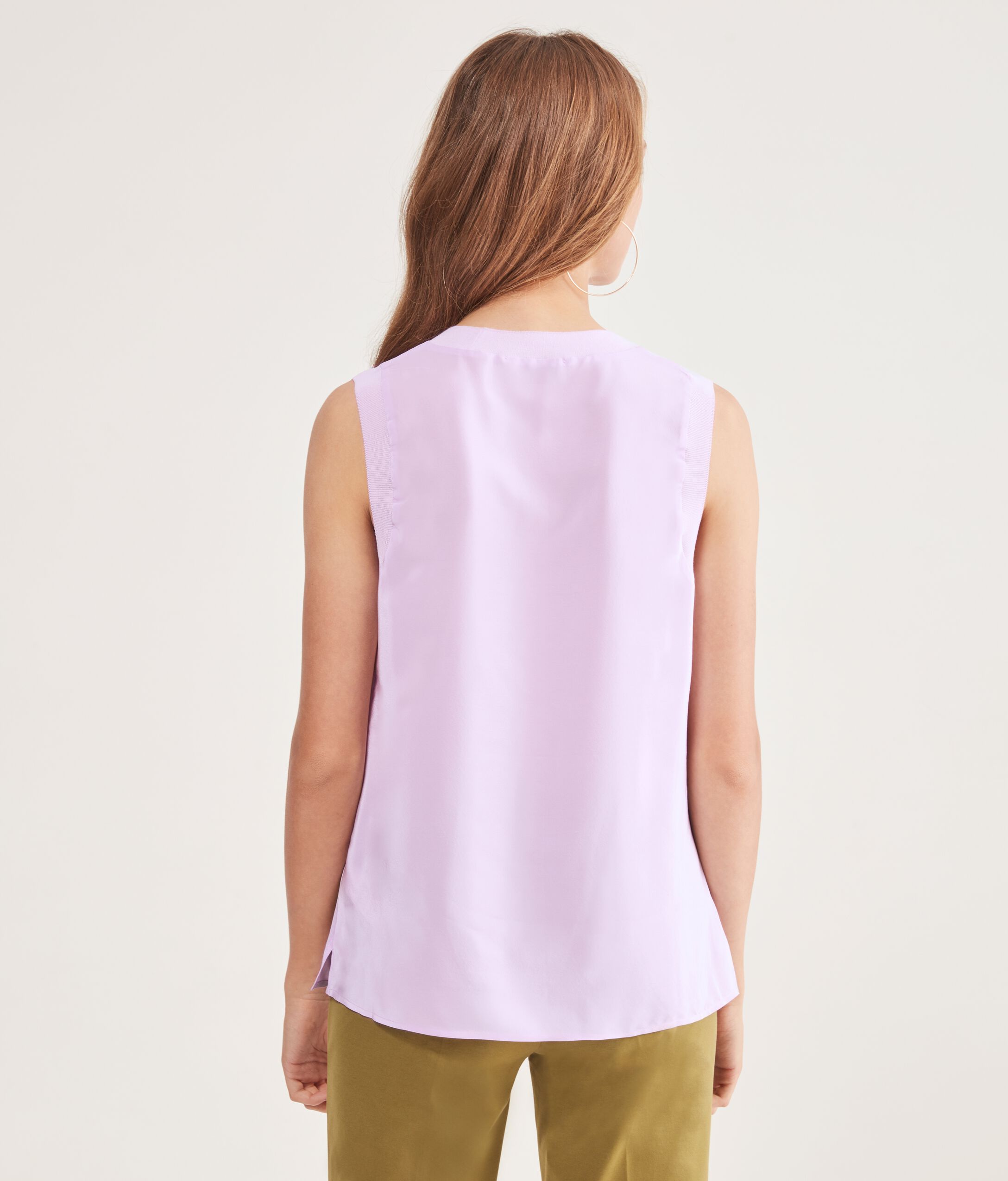 Silk camisole with rib-knit cotton inserts on the neckline and arm holes. Straight cut.