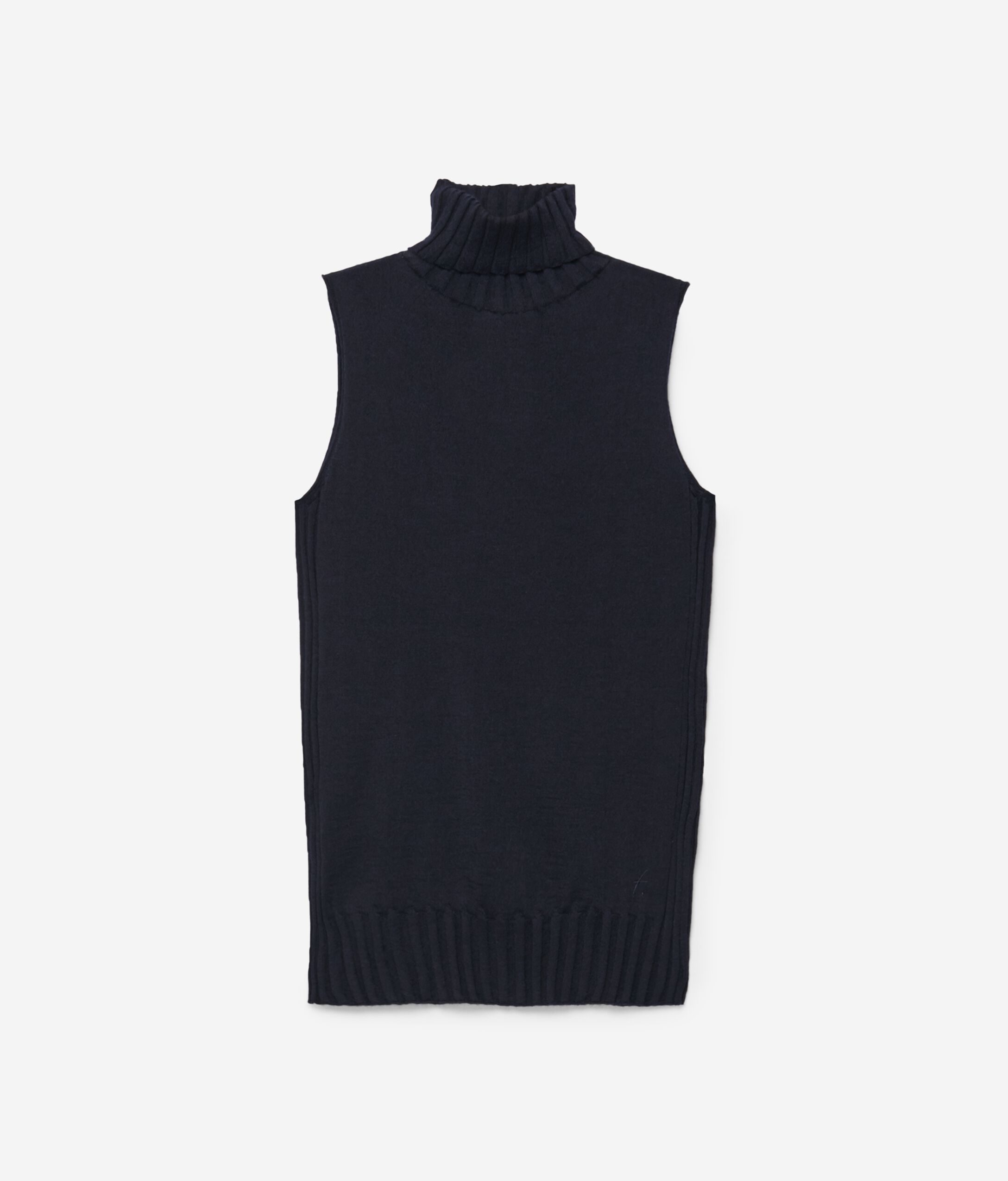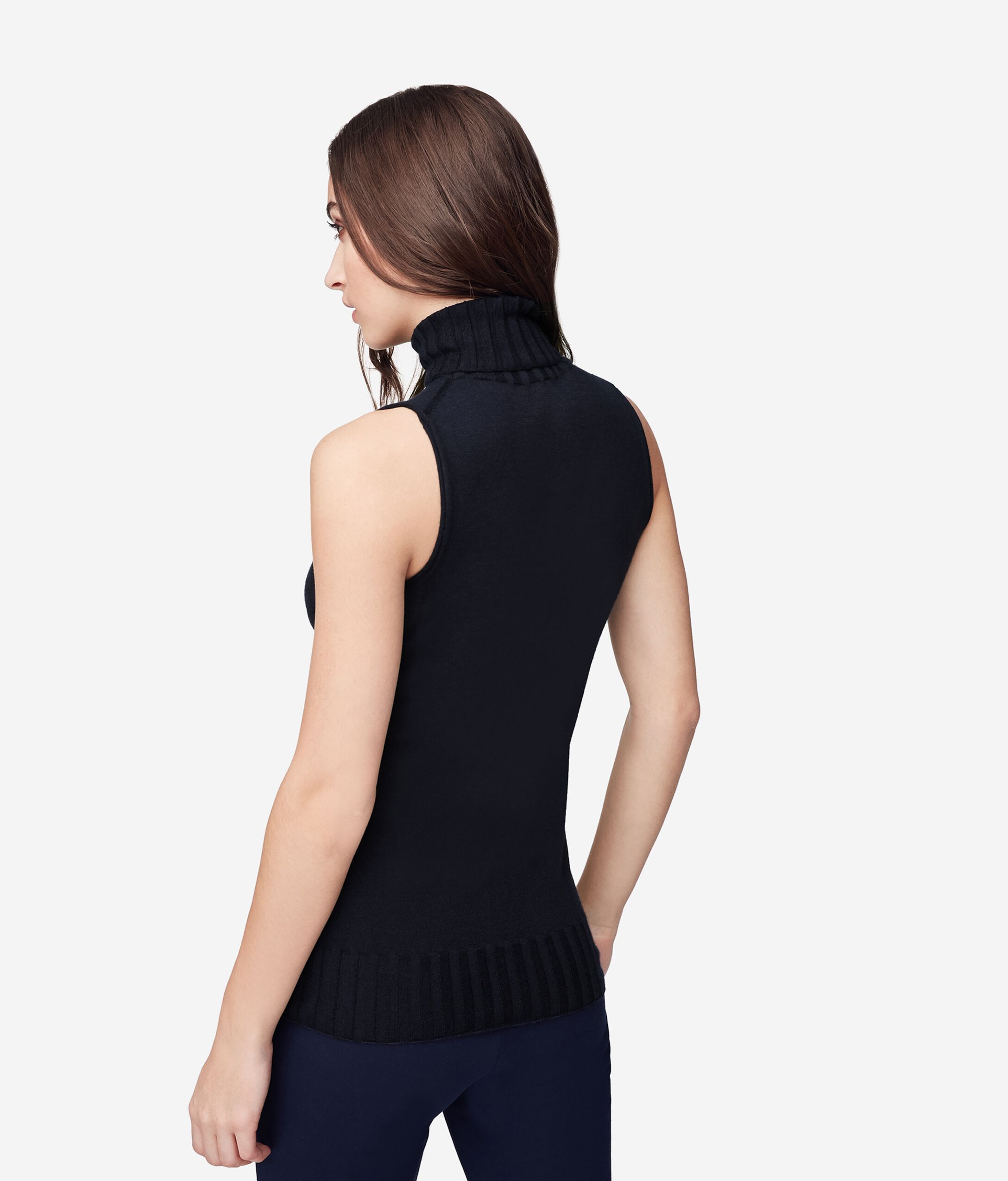 Sleeveless high neck in ultralight cashmere featuring wide-ribbed neck, hem and sides. Slim fit. Please note that this item is fitted and we recommend purchasing a larger size. Model is 178 cm/70 in tall and wears size M.