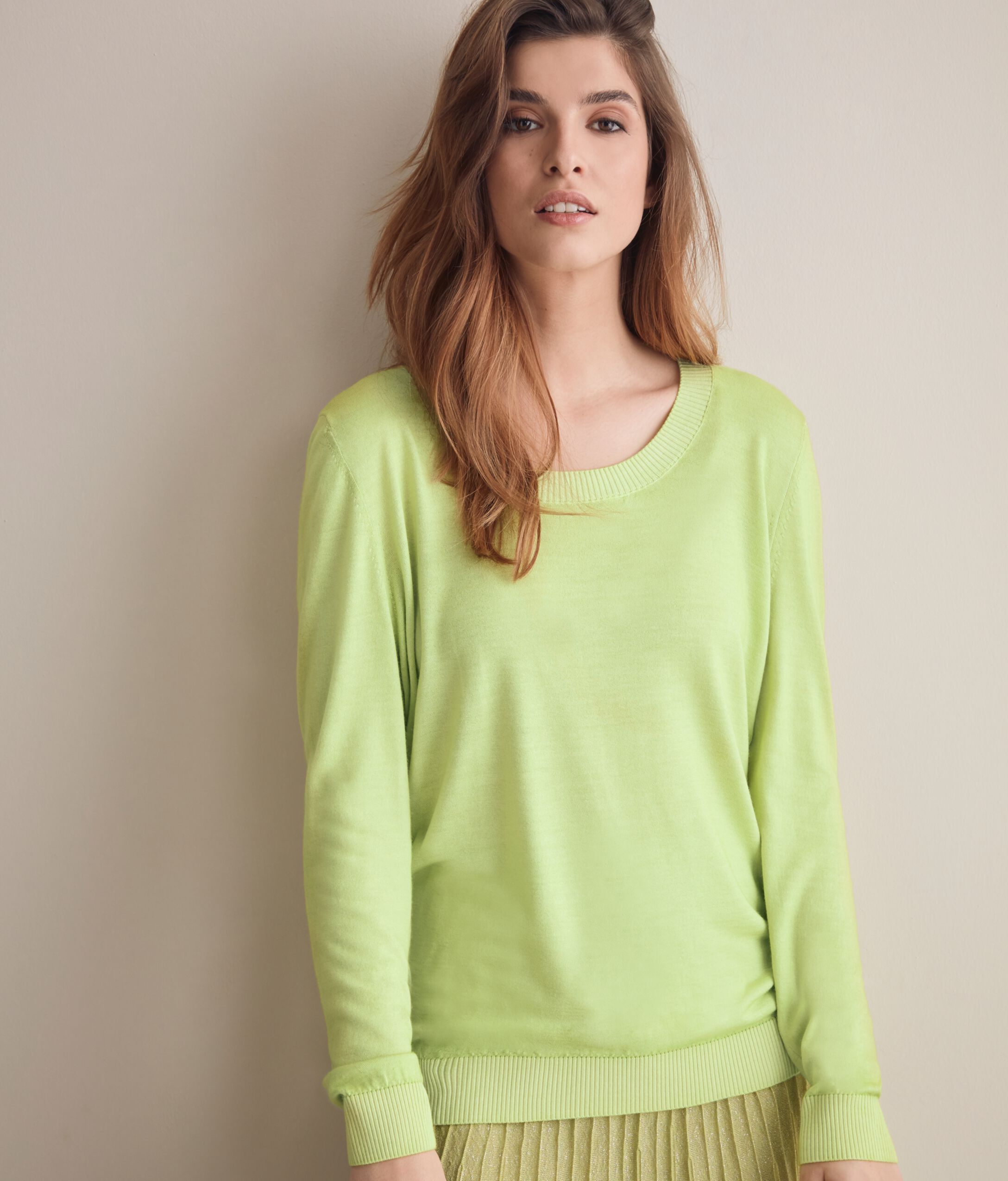 Sweater with wide crewneck in Ultrafine Cashmere. Hem, cuffs, and neckline feature ribbed trim. Relaxed fit. Model is 179 cm and wears a size M Chest: 88 cm / Waist: 67 cm / Hips: 94 cm