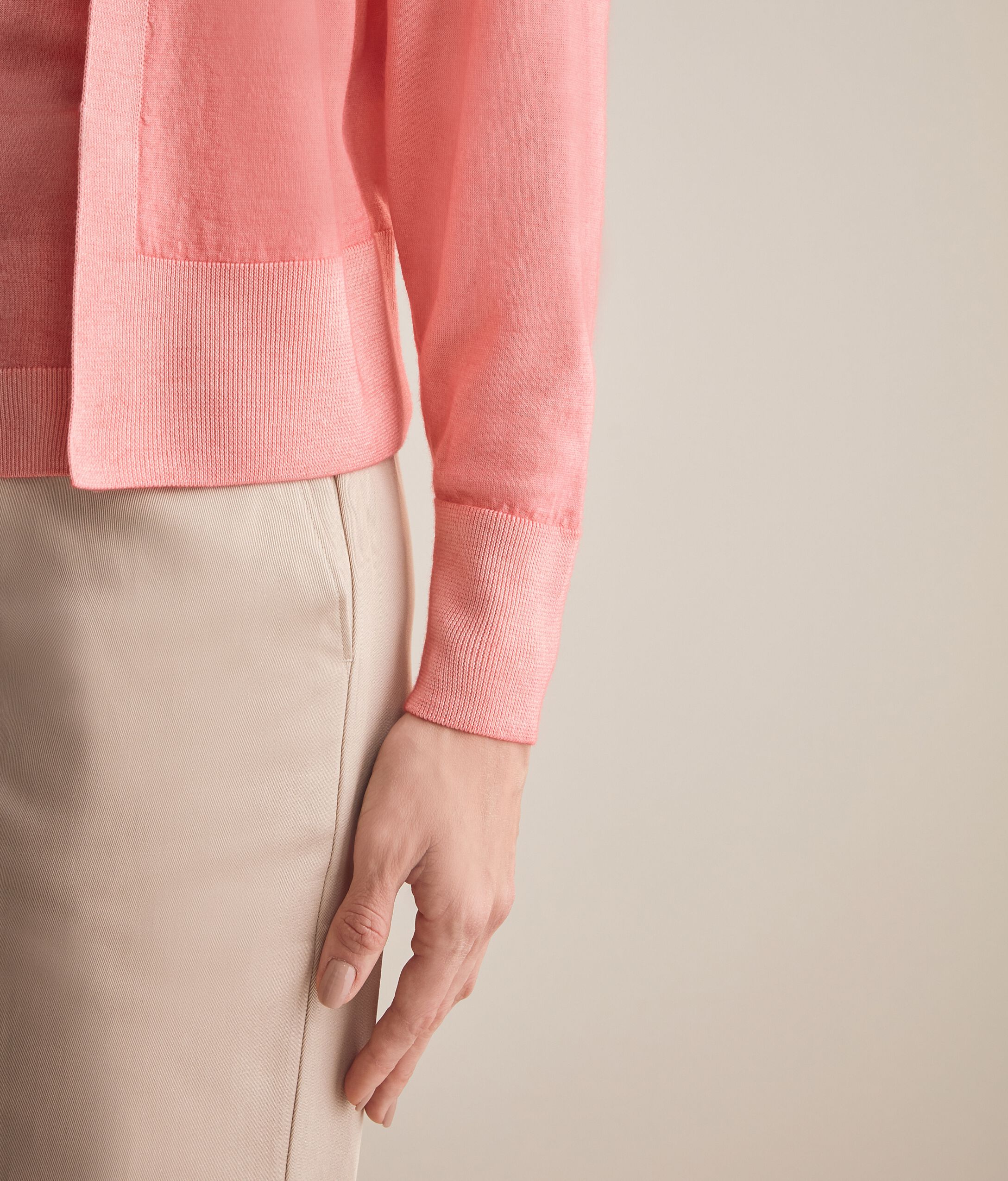 A sophisticated combination of the classic and the contemporary runs through the entire Falconeri collection. The choice of iconic yarns, such as the pure 50/2 cashmere, and balanced shapes and volumes perfectly demonstrates the brand's passion for fine materials and attention to detail. This cropped cardigan, which has no buttons, creates fluid, spontaneous lines and gives off a fresh, dynamic feel. The hem features high ribbing, the sleeves drape softly, and the shoulders are slightly dropped. Perfect with the DMC250B top.Chest: 88cm / Waist: 67cm / Hips: 94cm