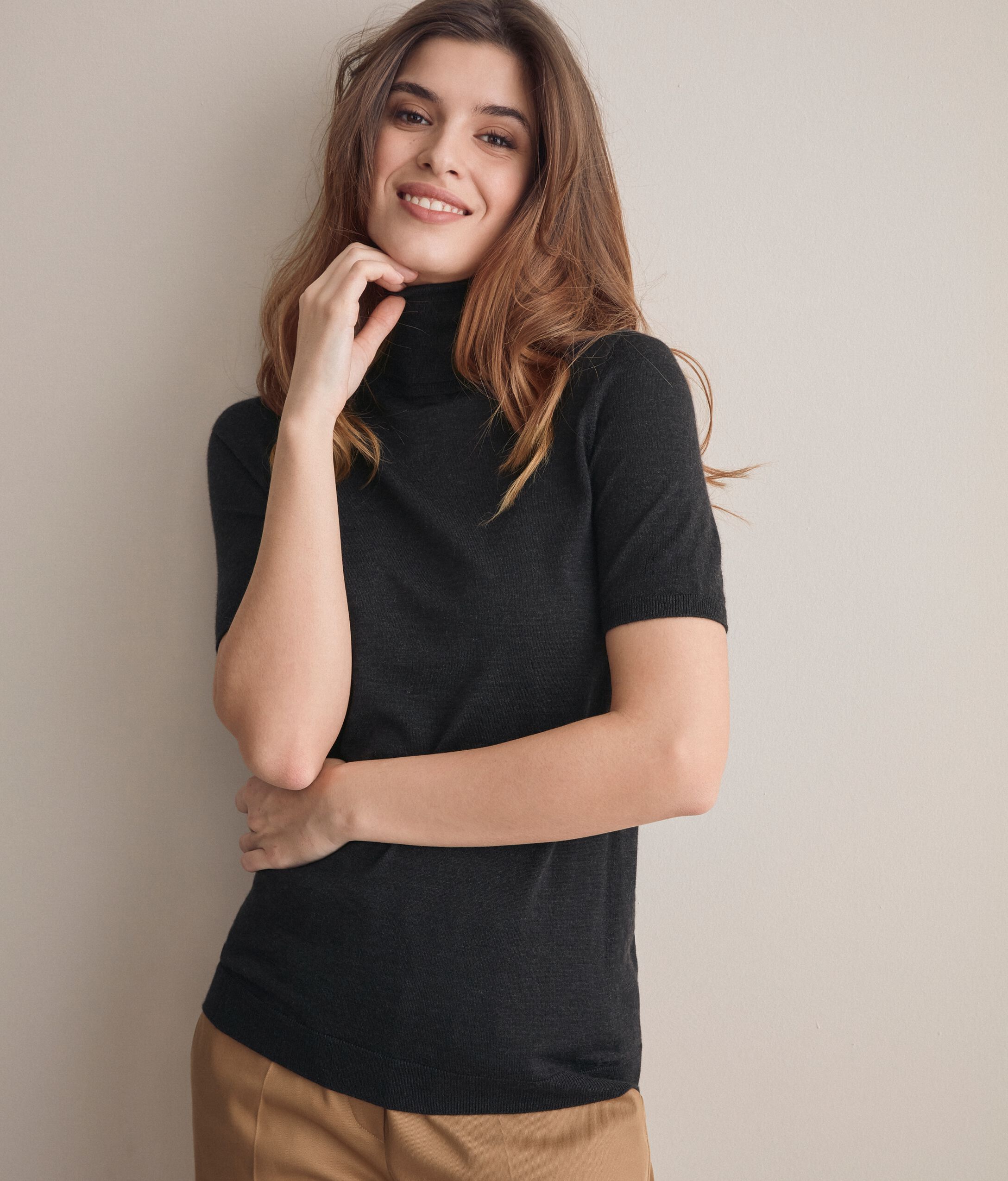 Short-sleeved polo neck in Ultrafine Cashmere.Versatile, ideal for wearing alone or under a jacket.Regular fit. Please note that this item is fitted, we advise purchasing a larger size. Model is 179 cm tall and wears a size MChest: 88cm / Waist: 67cm / Hips: 94cm