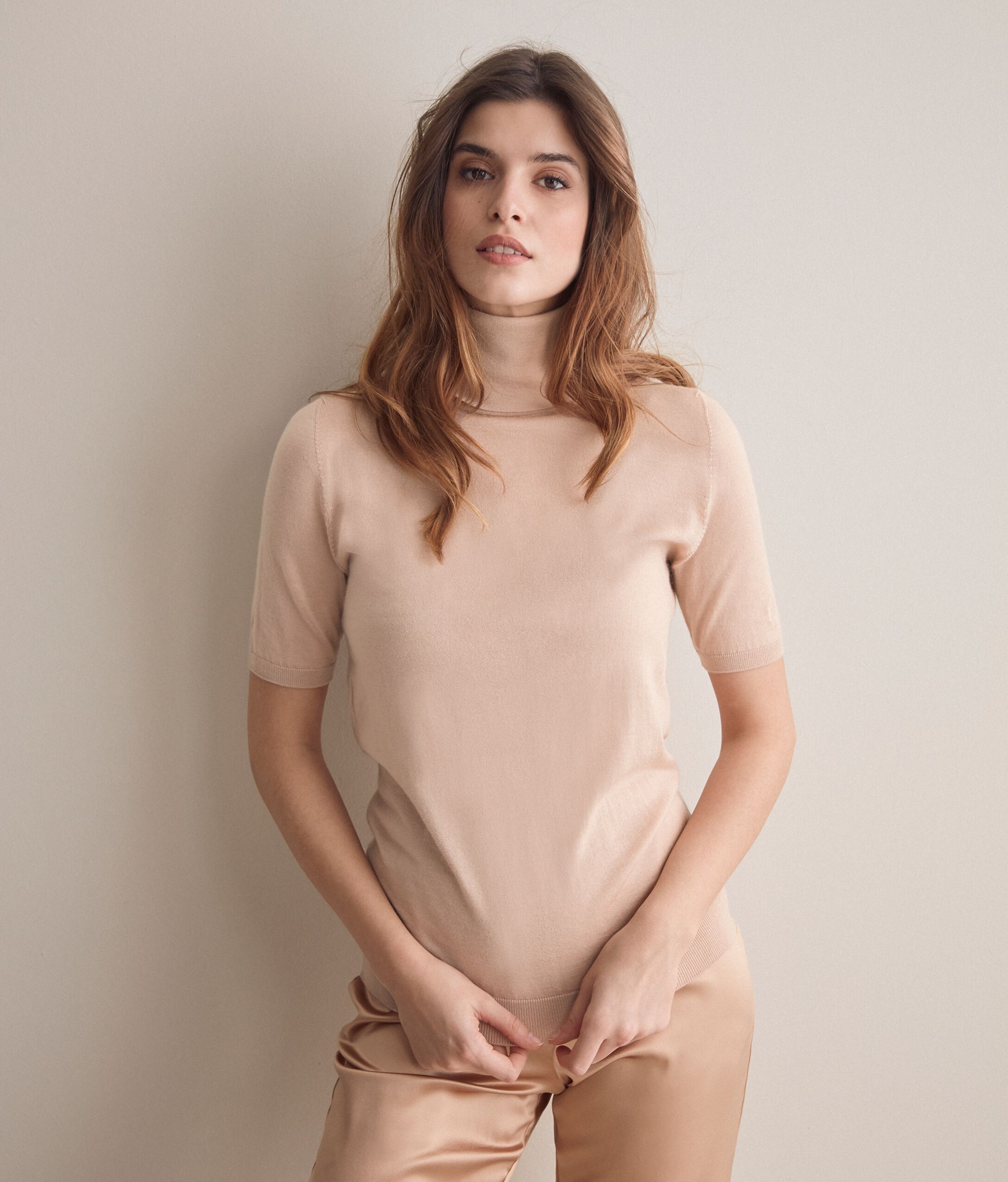 Short-sleeved polo neck in Ultrafine Cashmere.Versatile, ideal for wearing alone or under a jacket.Regular fit. Please note that this item is fitted, we advise purchasing a larger size. Model is 179 cm tall and wears a size MChest: 88cm / Waist: 67cm / Hips: 94cm