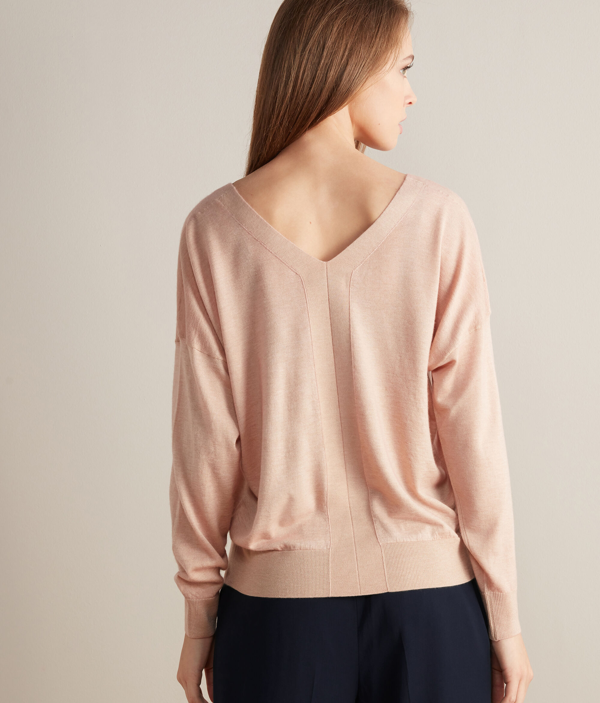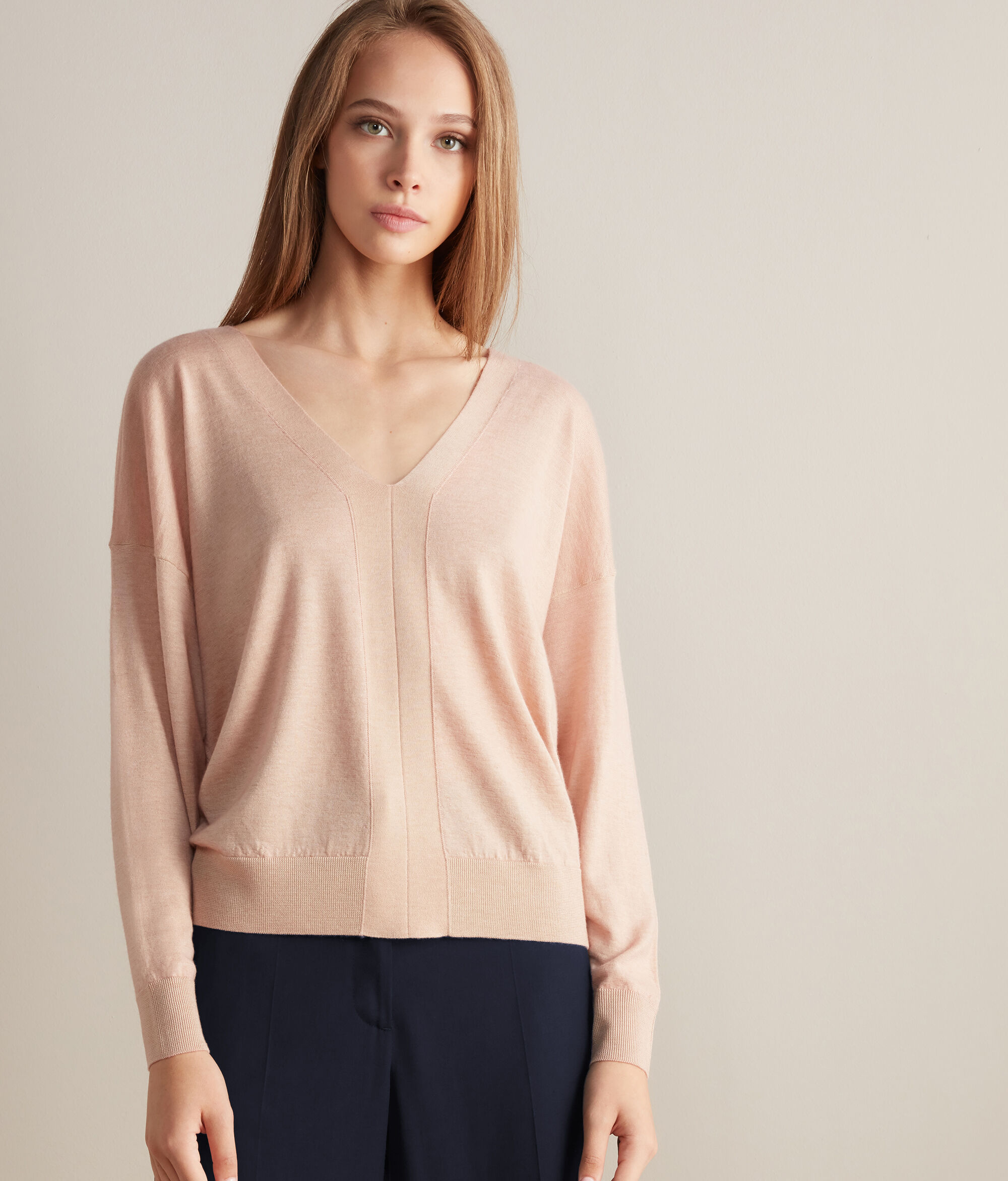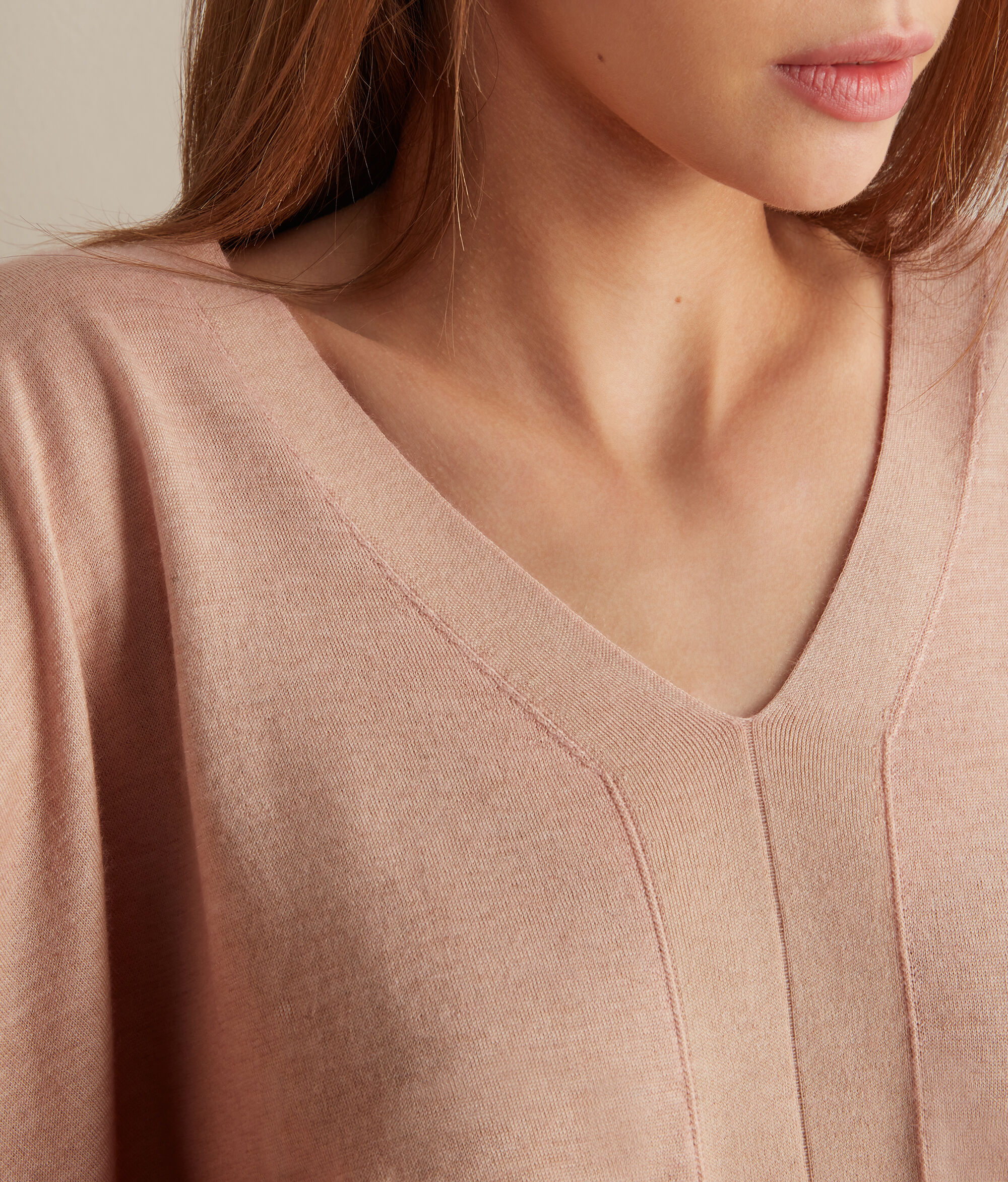 The brand's identity can be recognised in the discerning choice of fabrics such as Ultrafine Cashmere and the pursuit of authentic, refined shapes. Touches such as the deep V-neck highlight the sophisticated femininity of this pure cashmere jumper, while the exquisite central detailing on the front and back creates a sense of exclusivity.