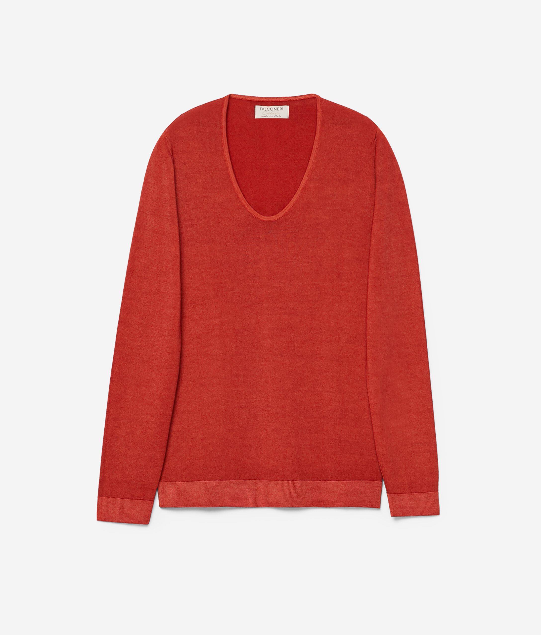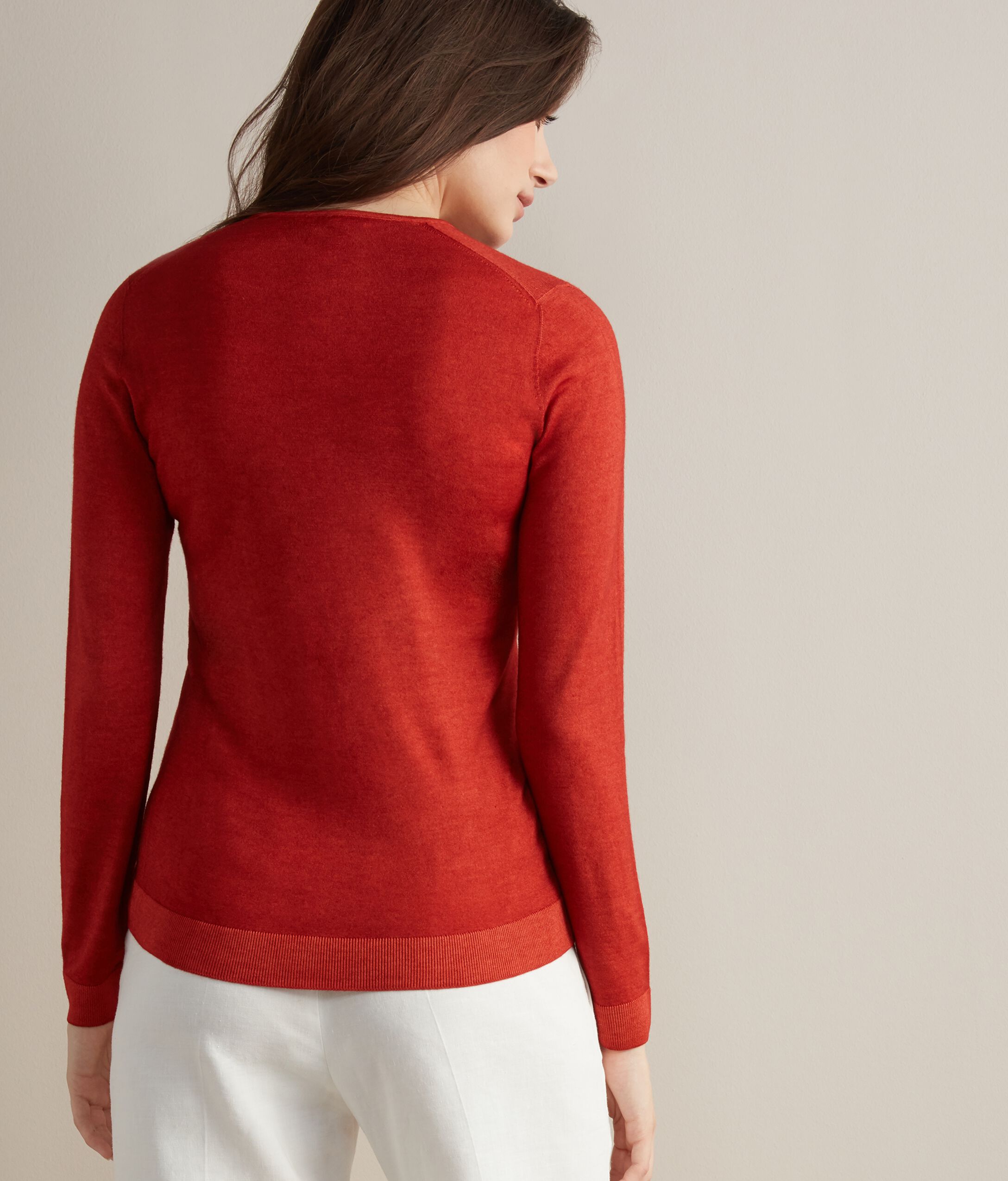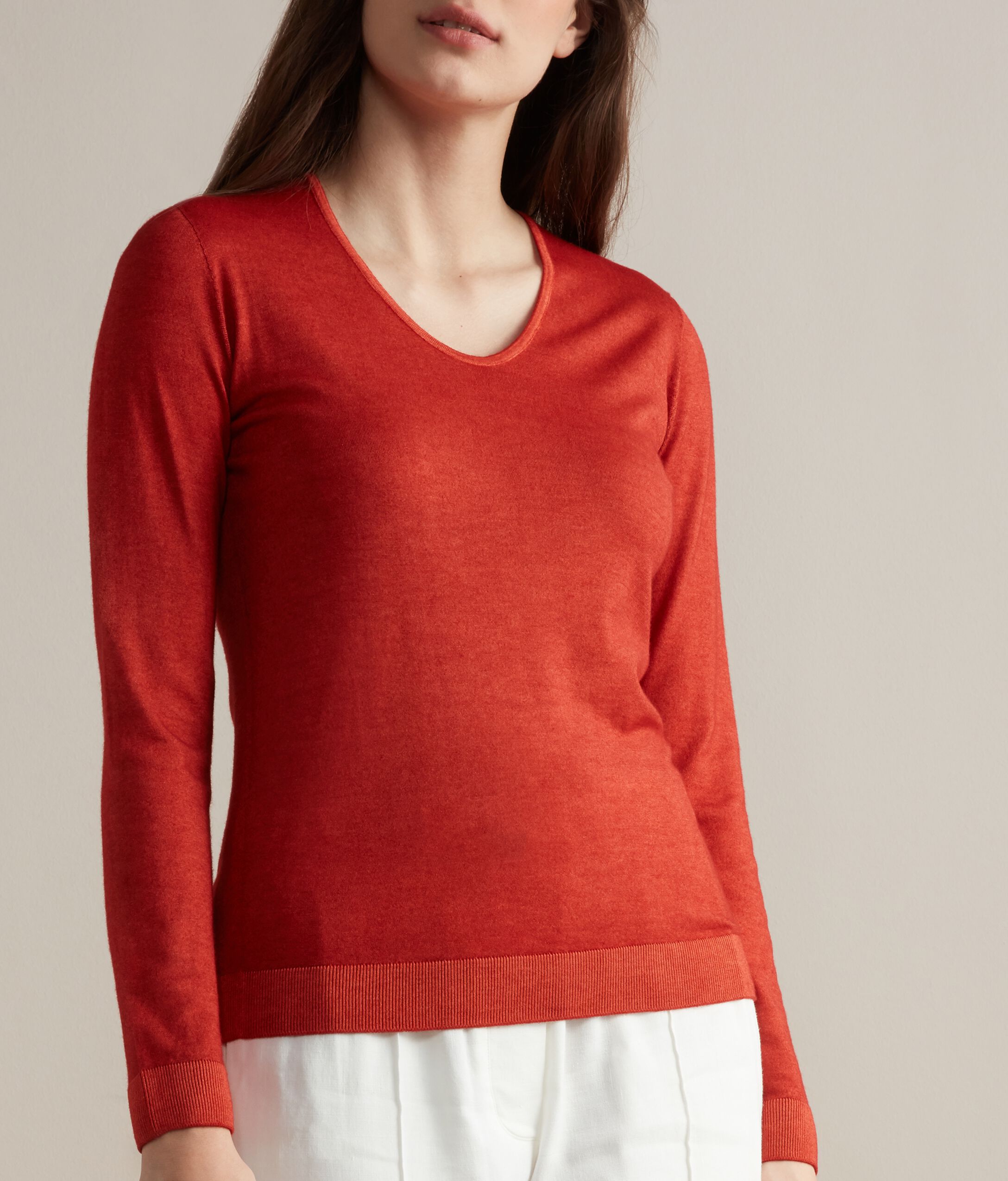 Long-sleeve sweater in 100% Ultrafine Cashmere with a V-neck and seamless construction. Regular fit. Model is 179 cm and wears a size M Chest: 88 cm / Waist: 67 cm / Hips: 94 cm