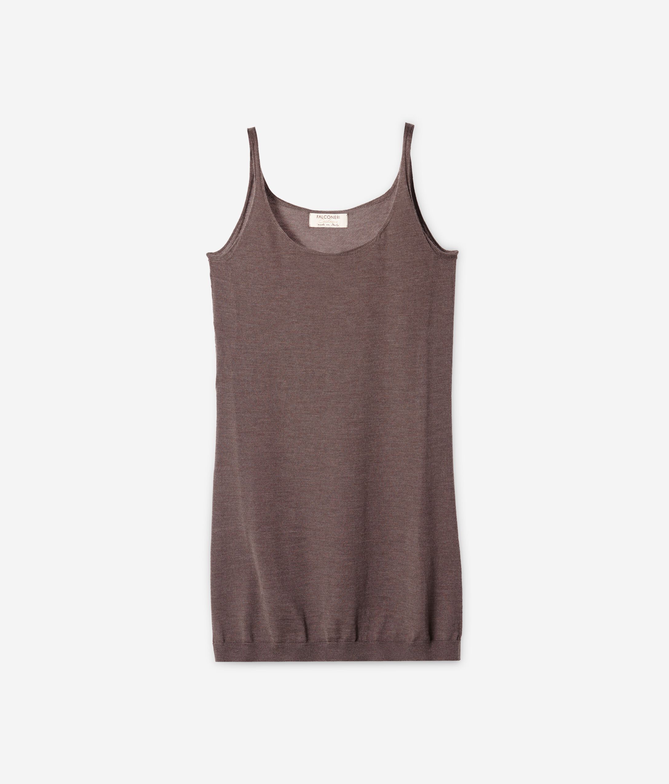 Maxi tank in 100% Ultralight Cashmere with narrow straps. Regular fit. Ideal for wearing under a jacket. Please note that this item is fitted, we advise purchasing a larger size.